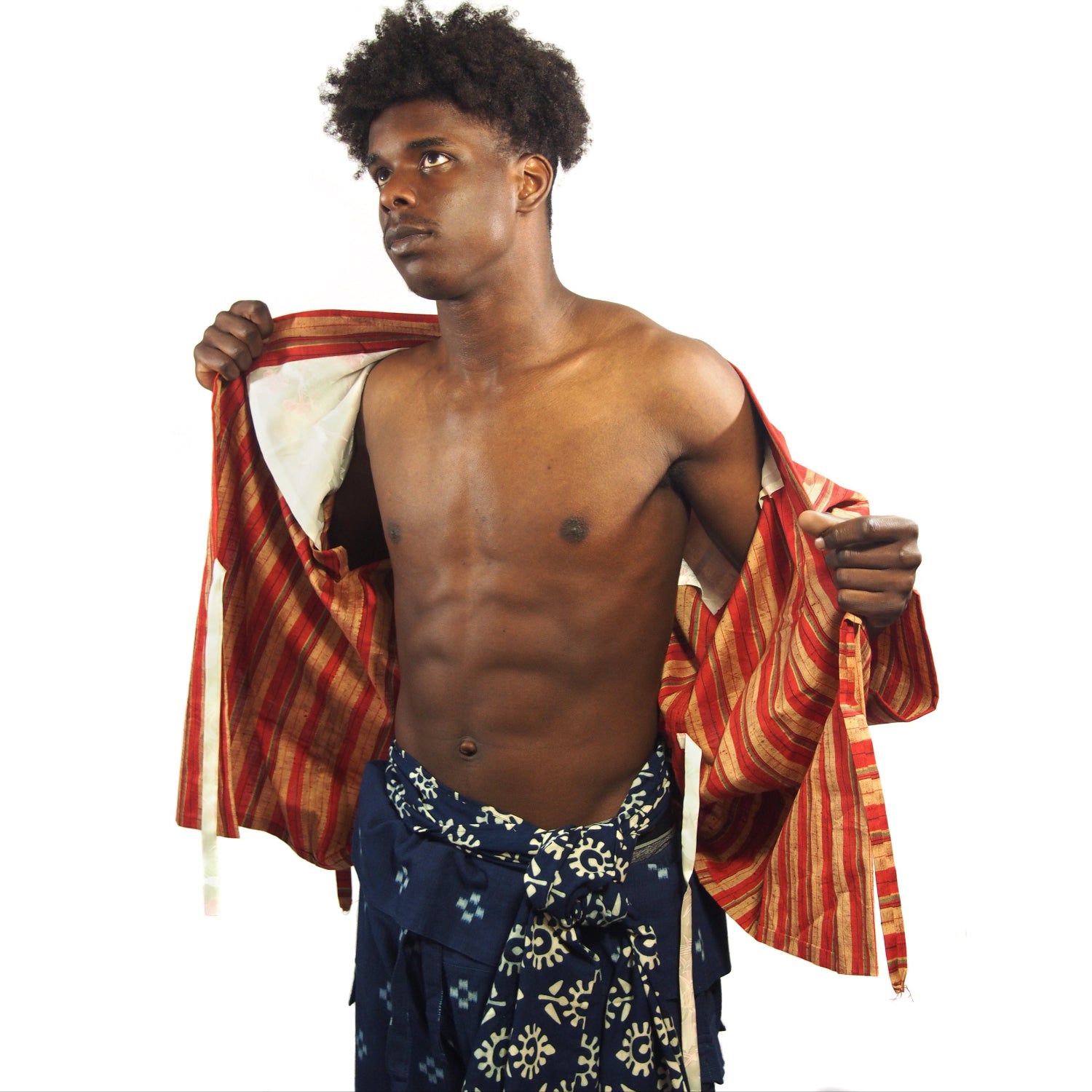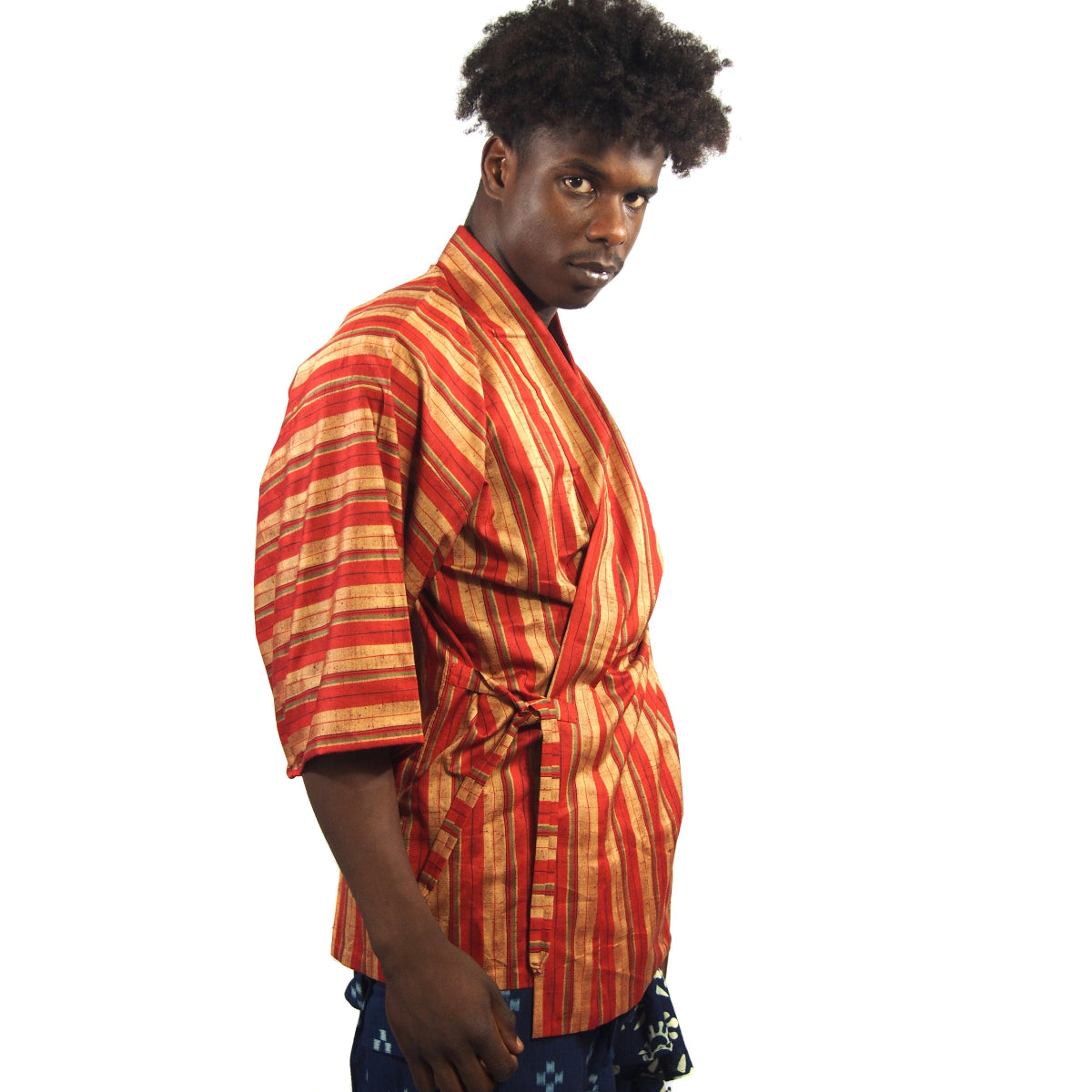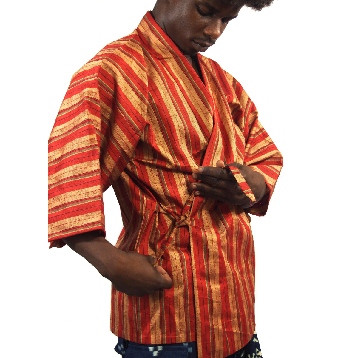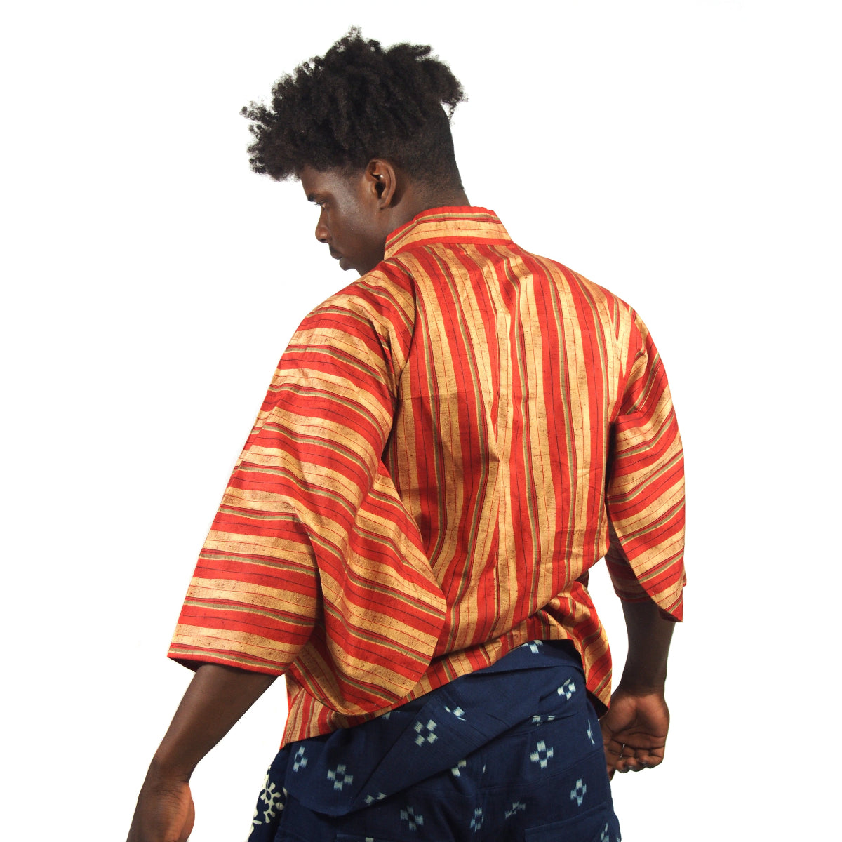 Vintage Brilliant Red/ Orange Stripe Silk 1/2 Length Kimono 6