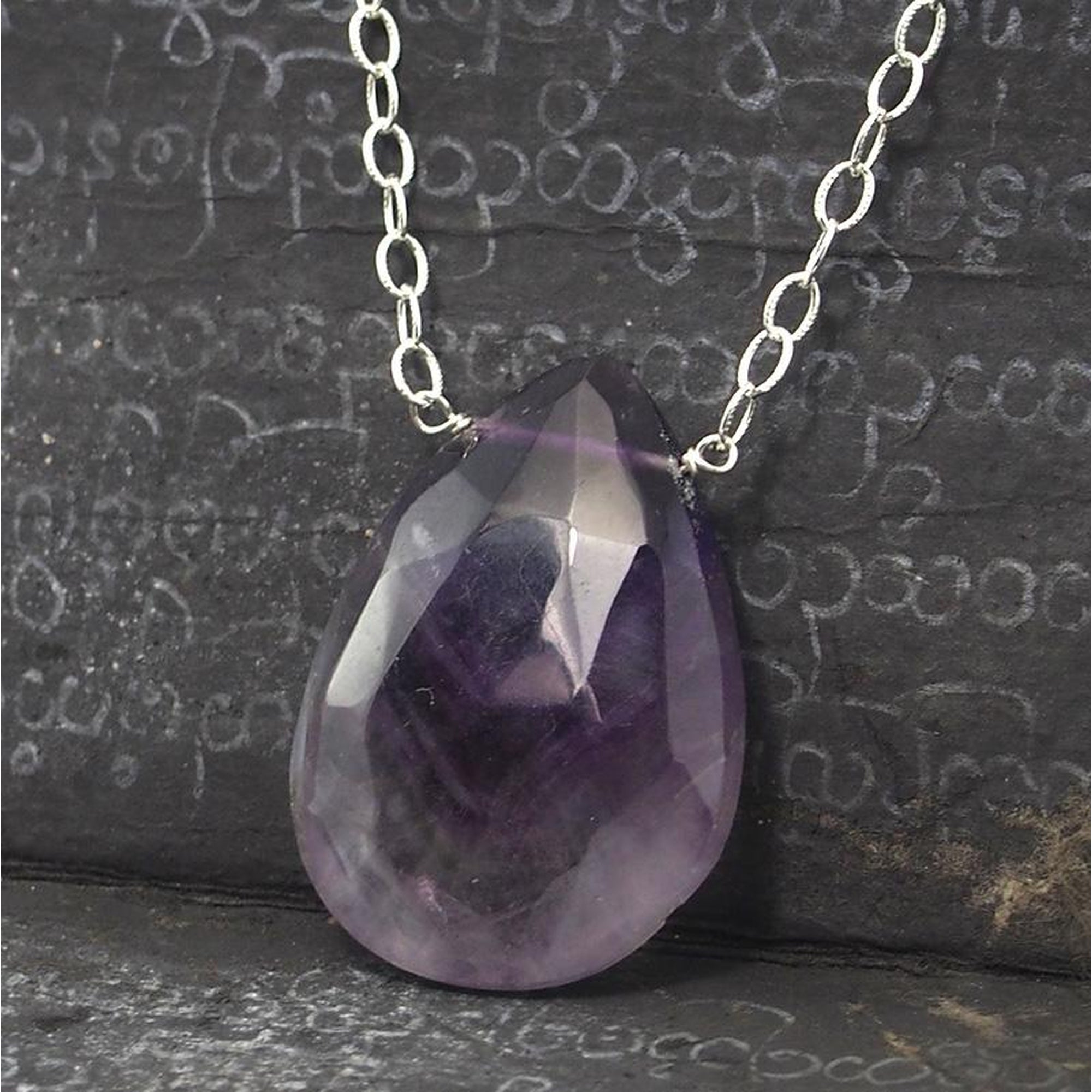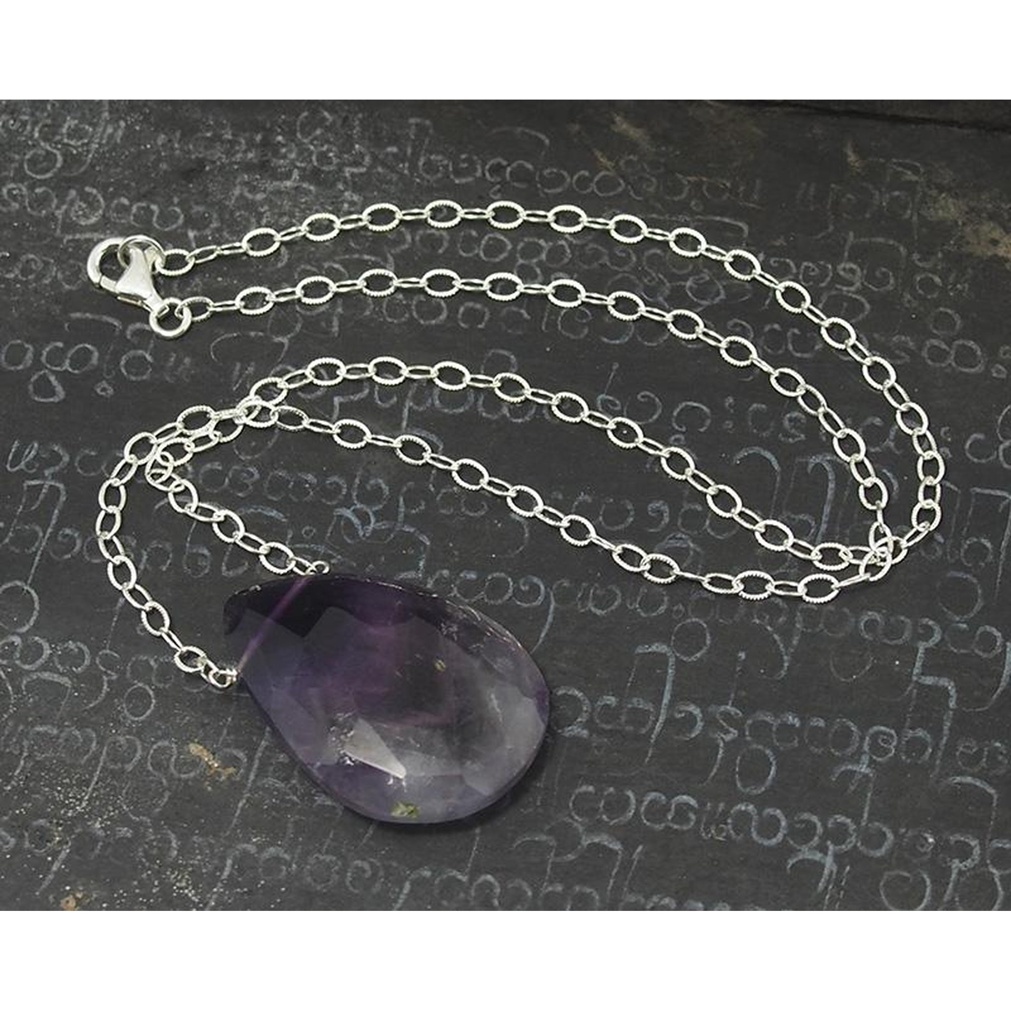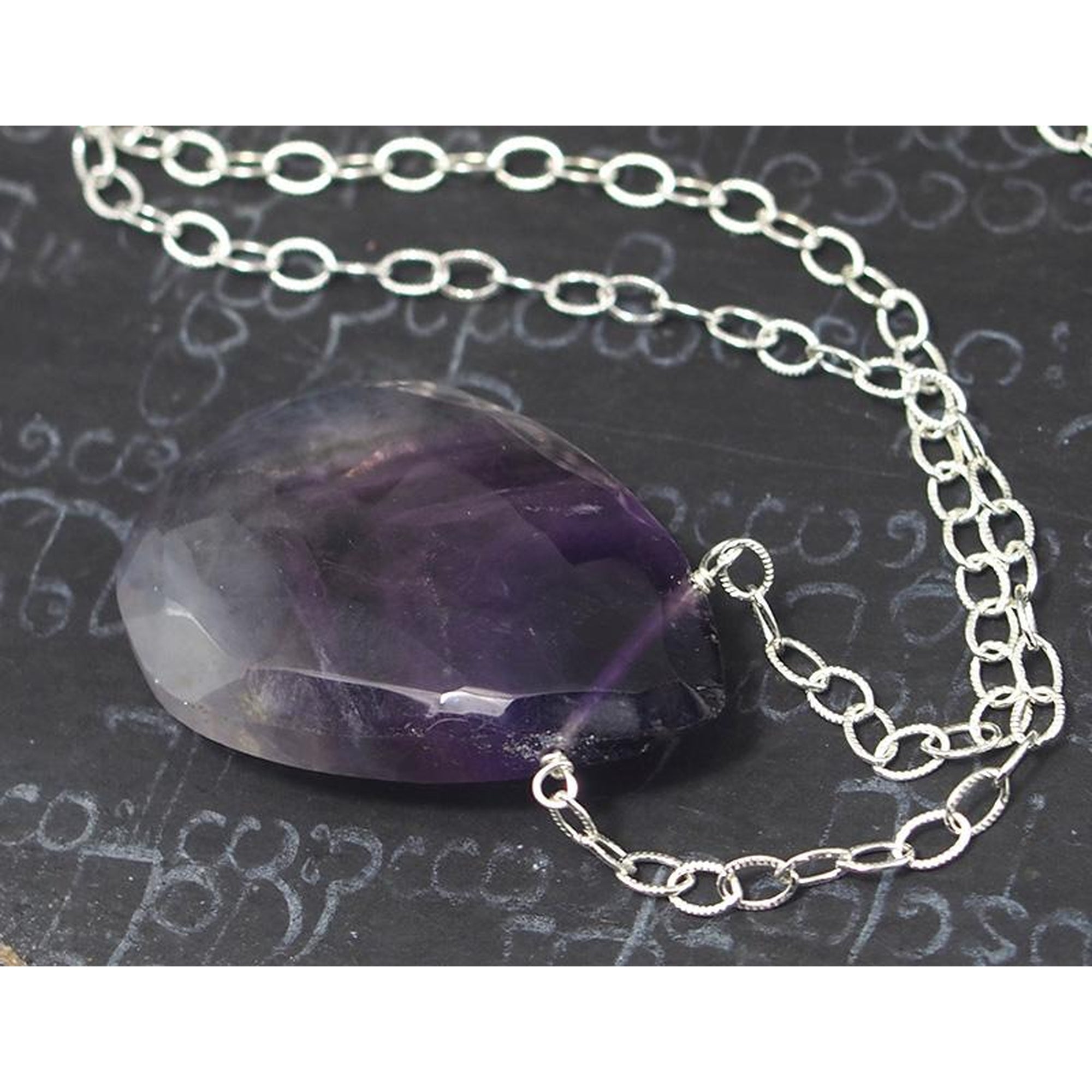 Natural Chevron Amethyst Necklace On Sterling Silver Chain with Sterling Silver Trigger Clasp