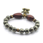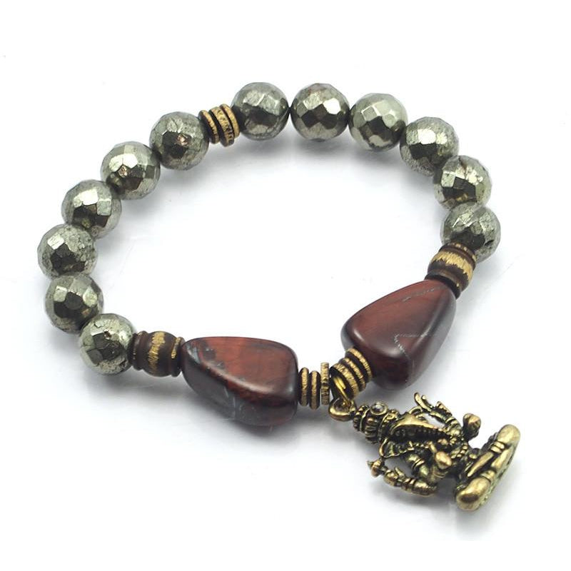 Pyrite and Tiger's Eye Stretch Bracelet with Brass Ganesha Amulet