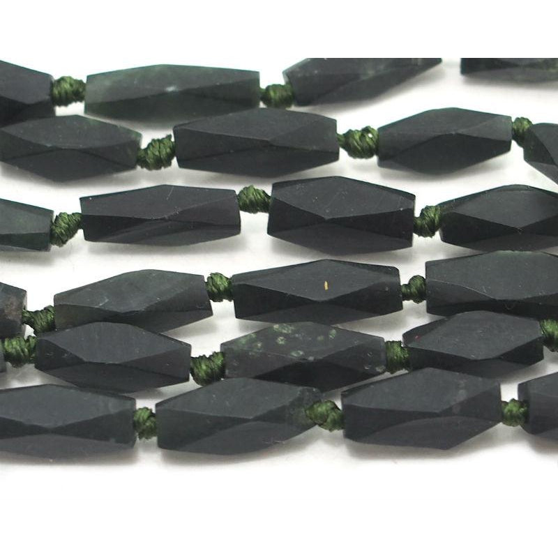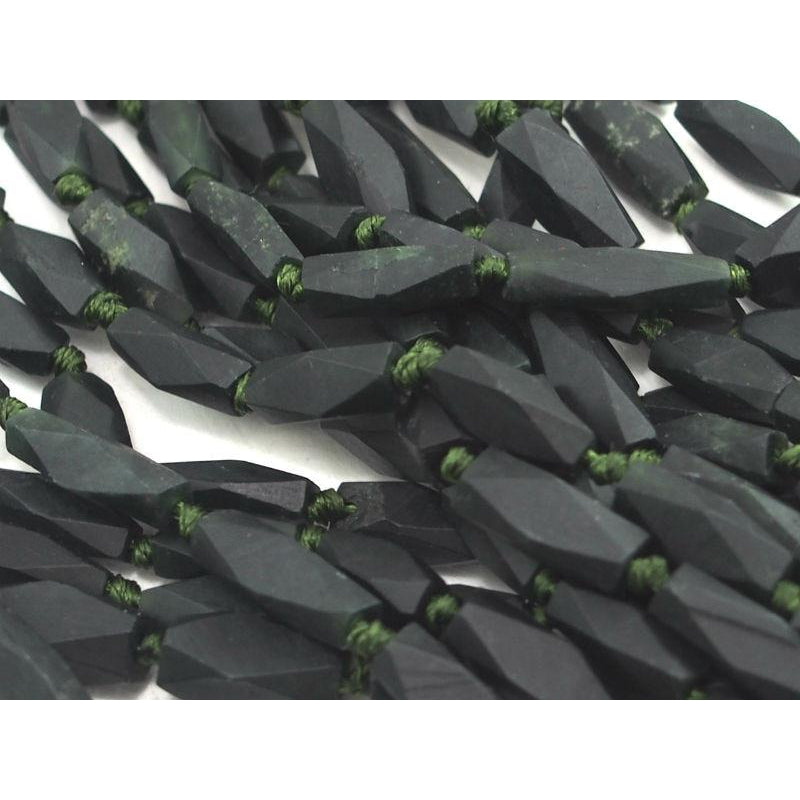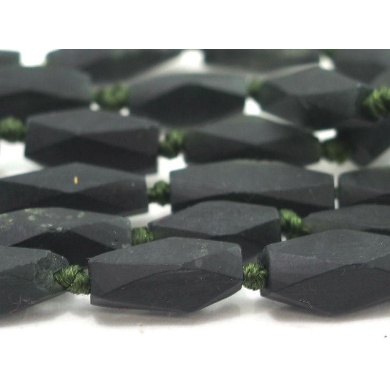 Serpentine (Afghan Jade) Matte Faceted Small Lozenge Bead Strand