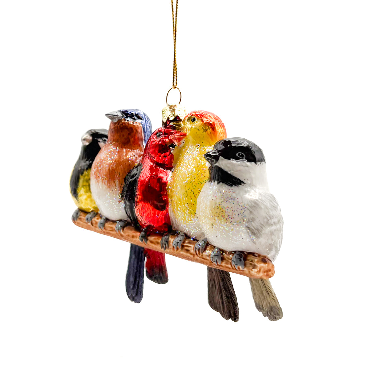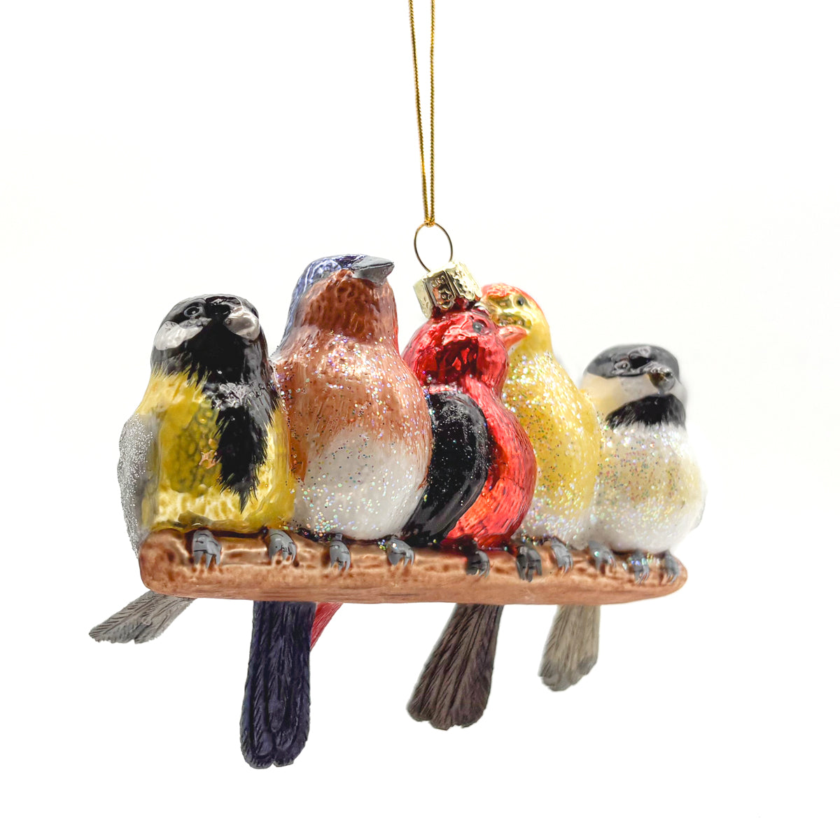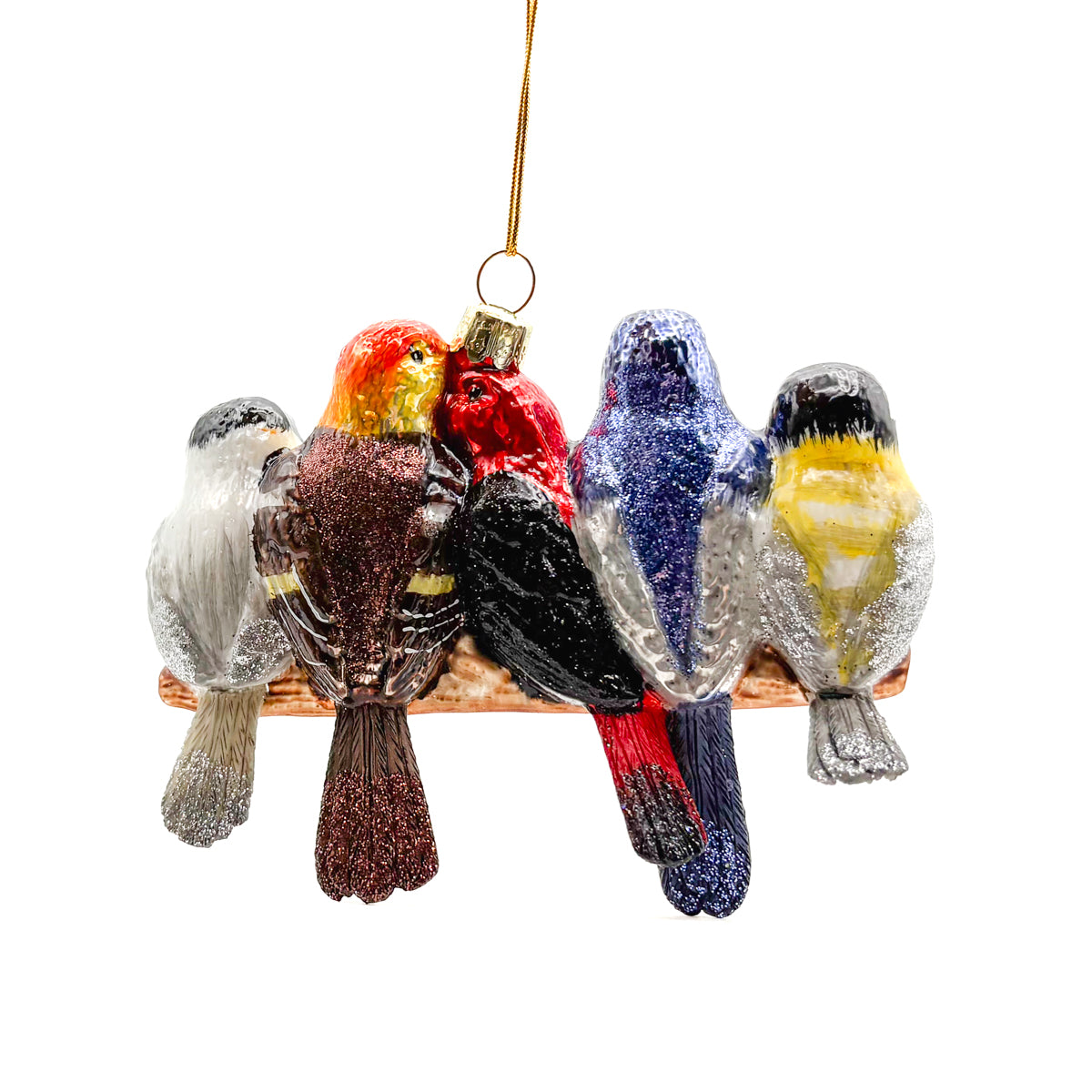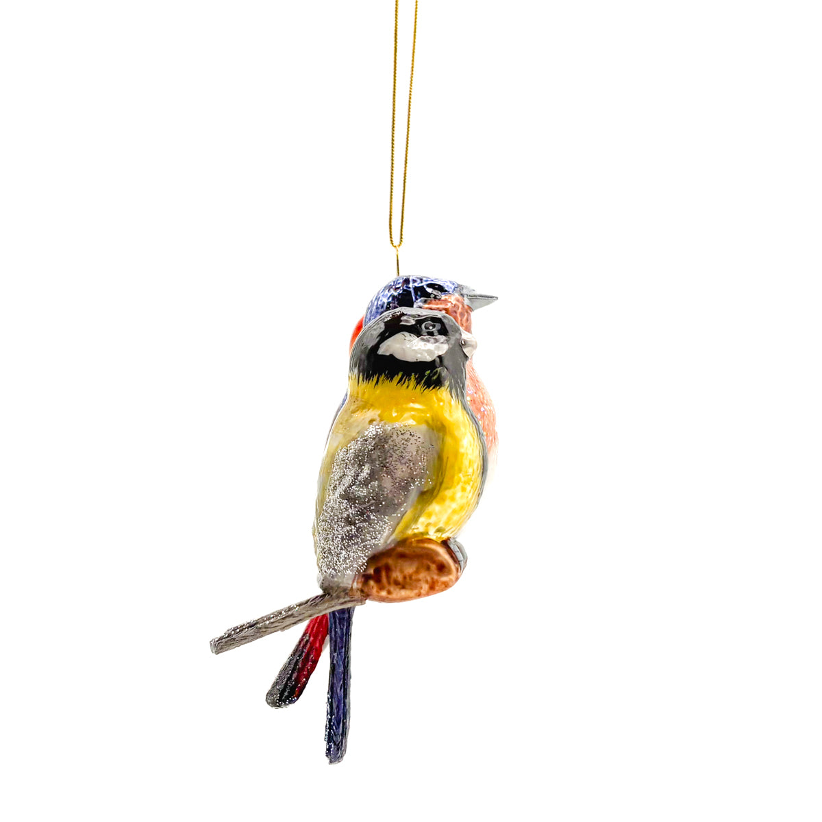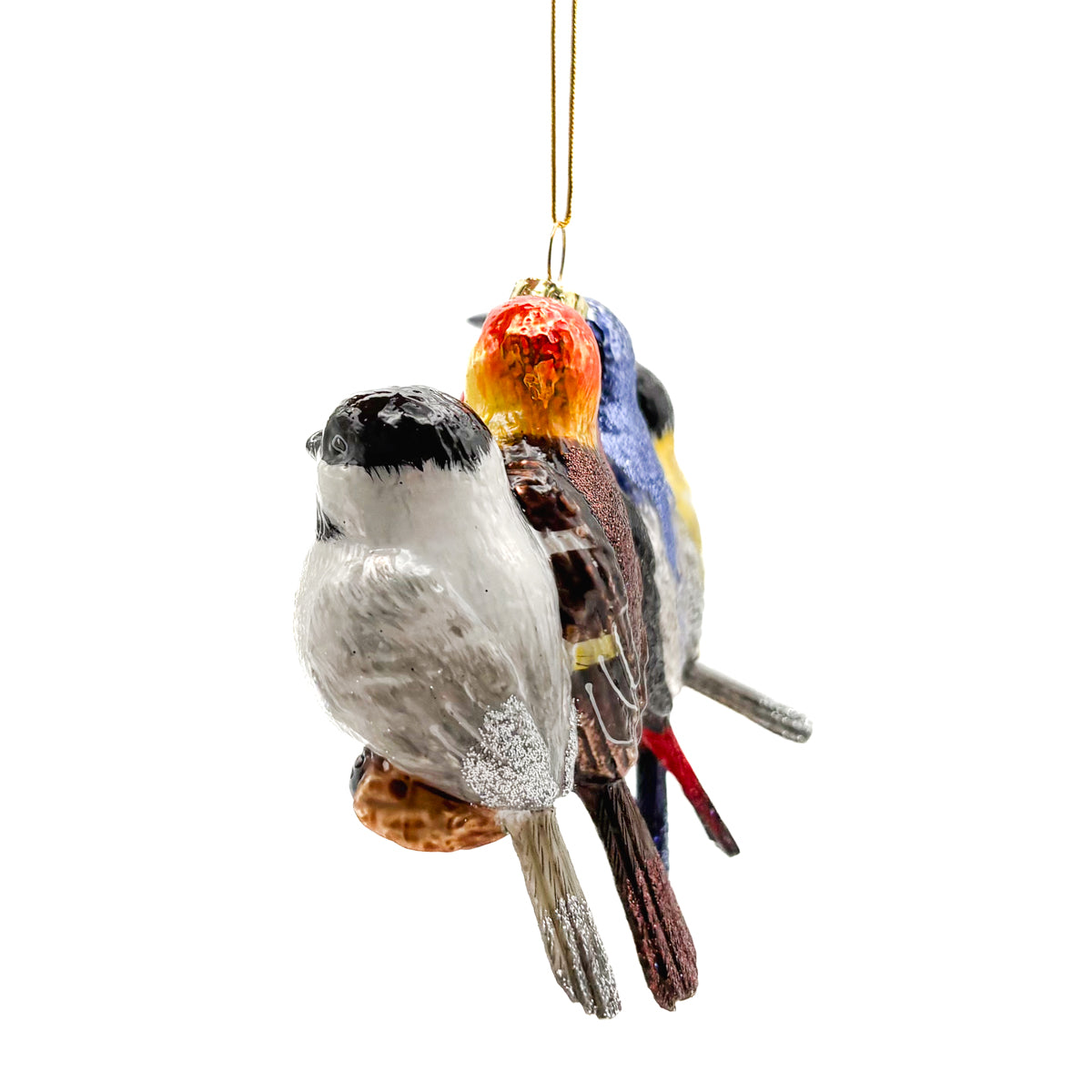 Songbirds On Branch Glass Ornament