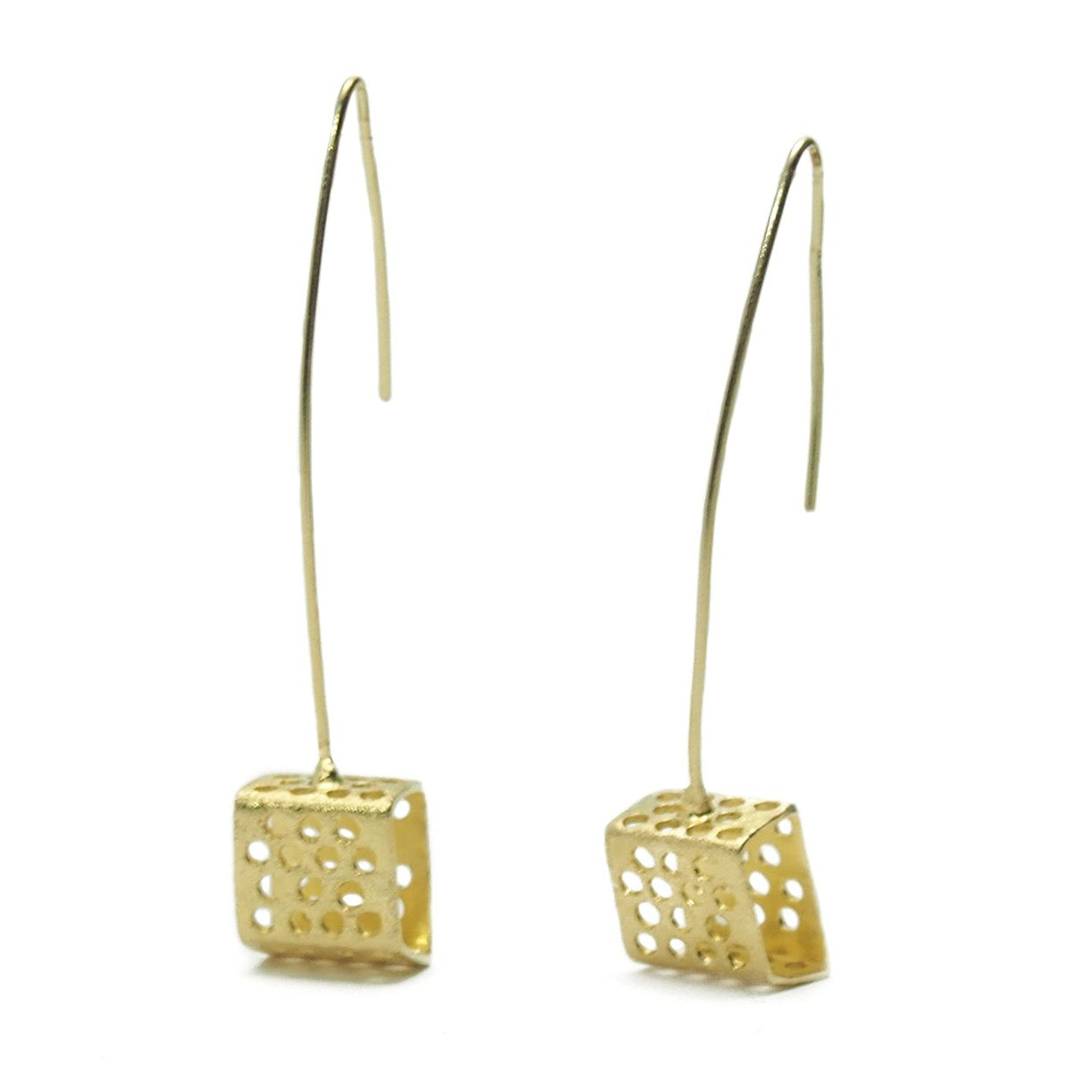 Gold Vermeil over Sterling Silver Cutout Cube Pole Earrings