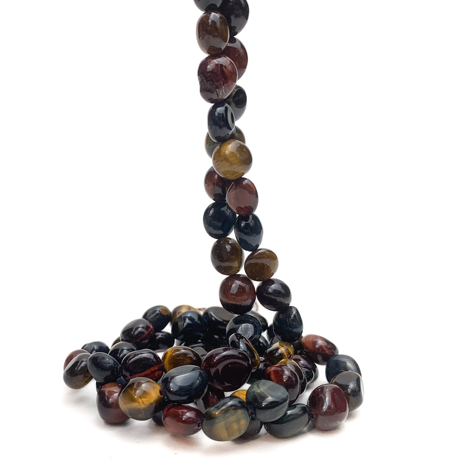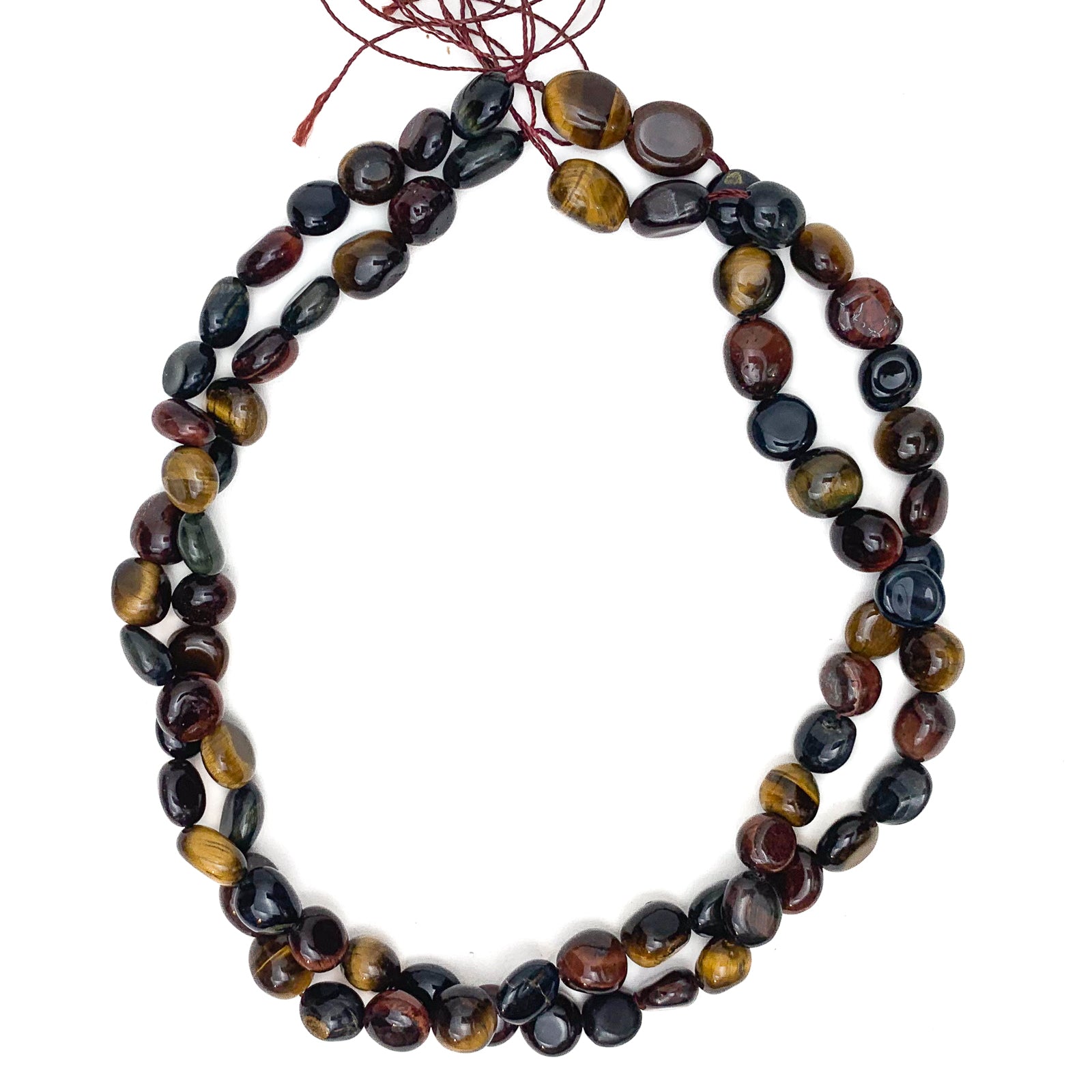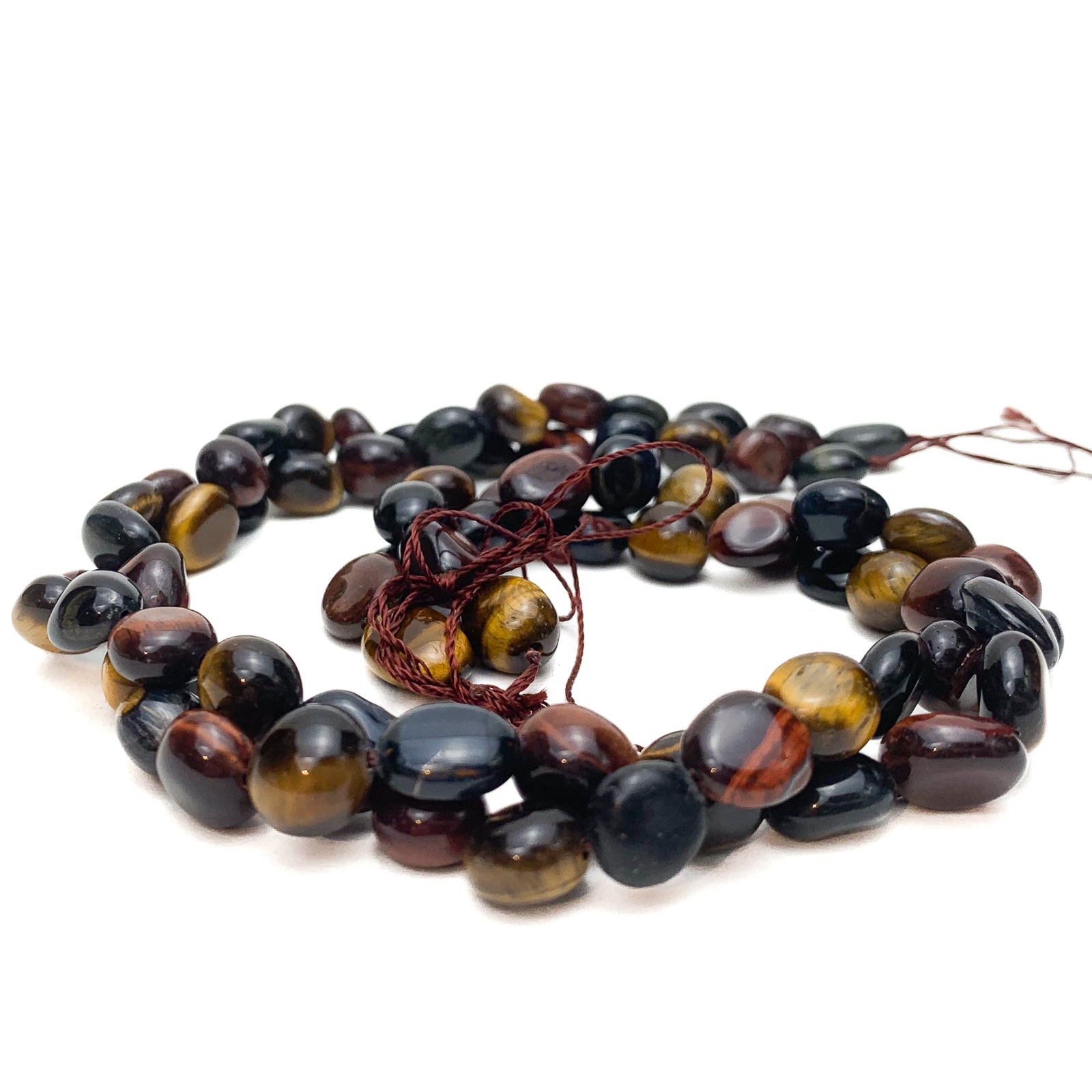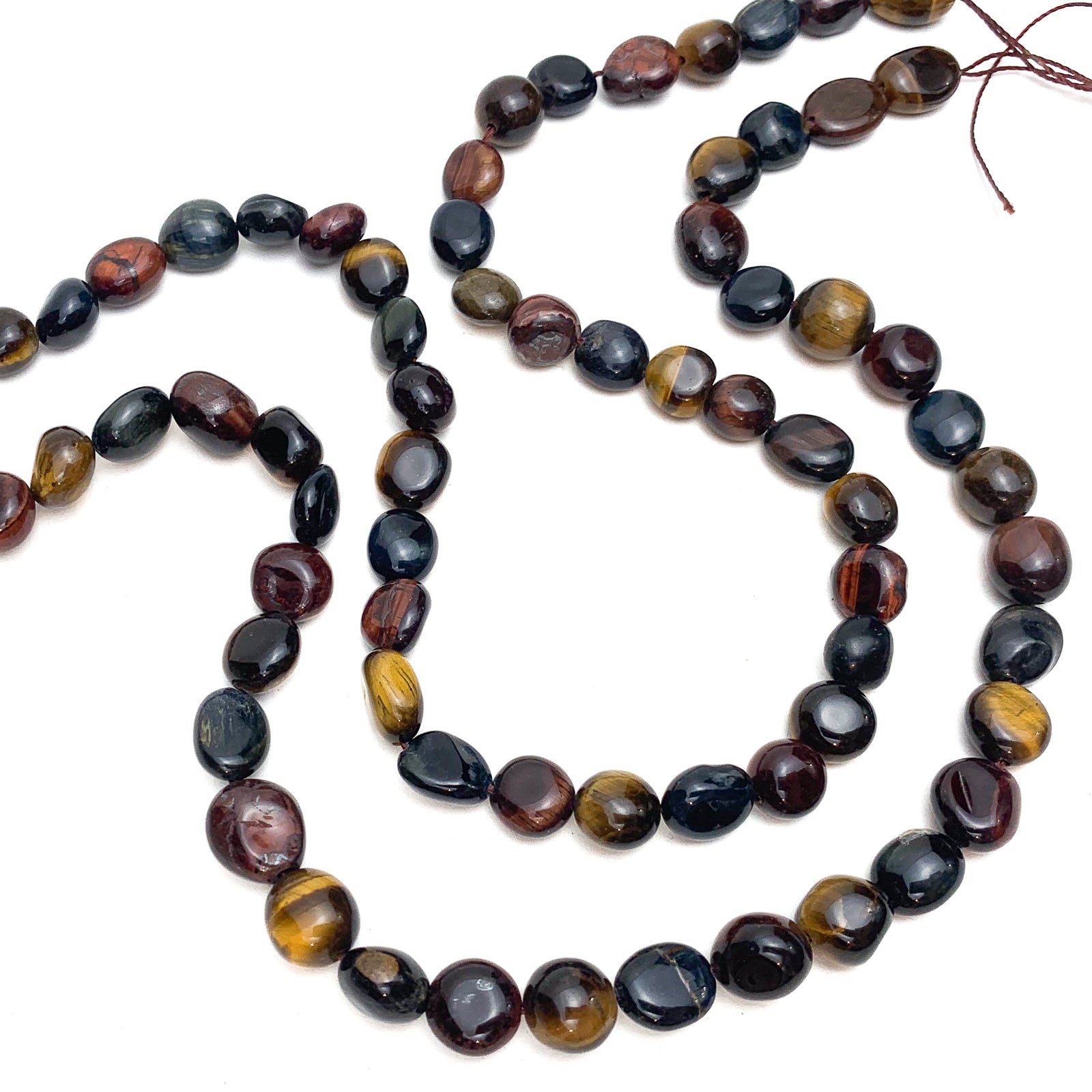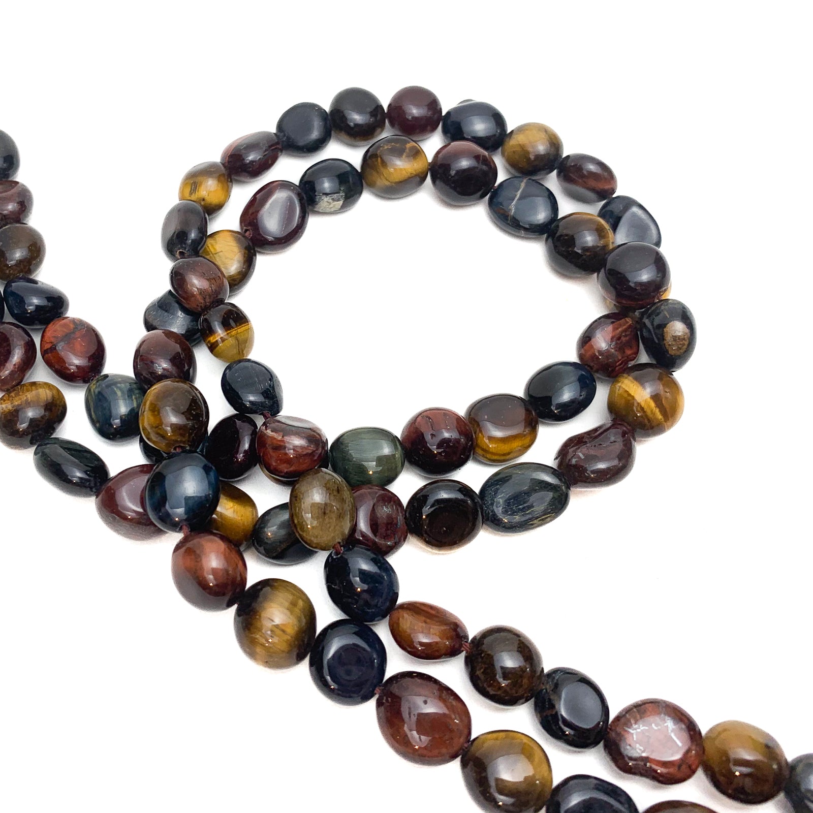 Tiger's Eye Multi Medium Smooth Pebbles Bead Strand