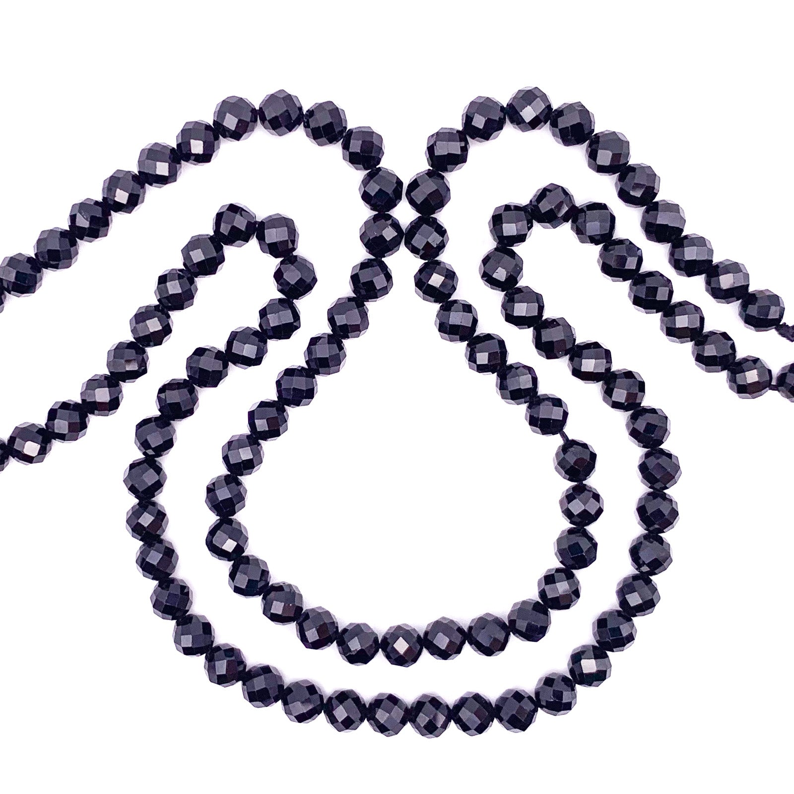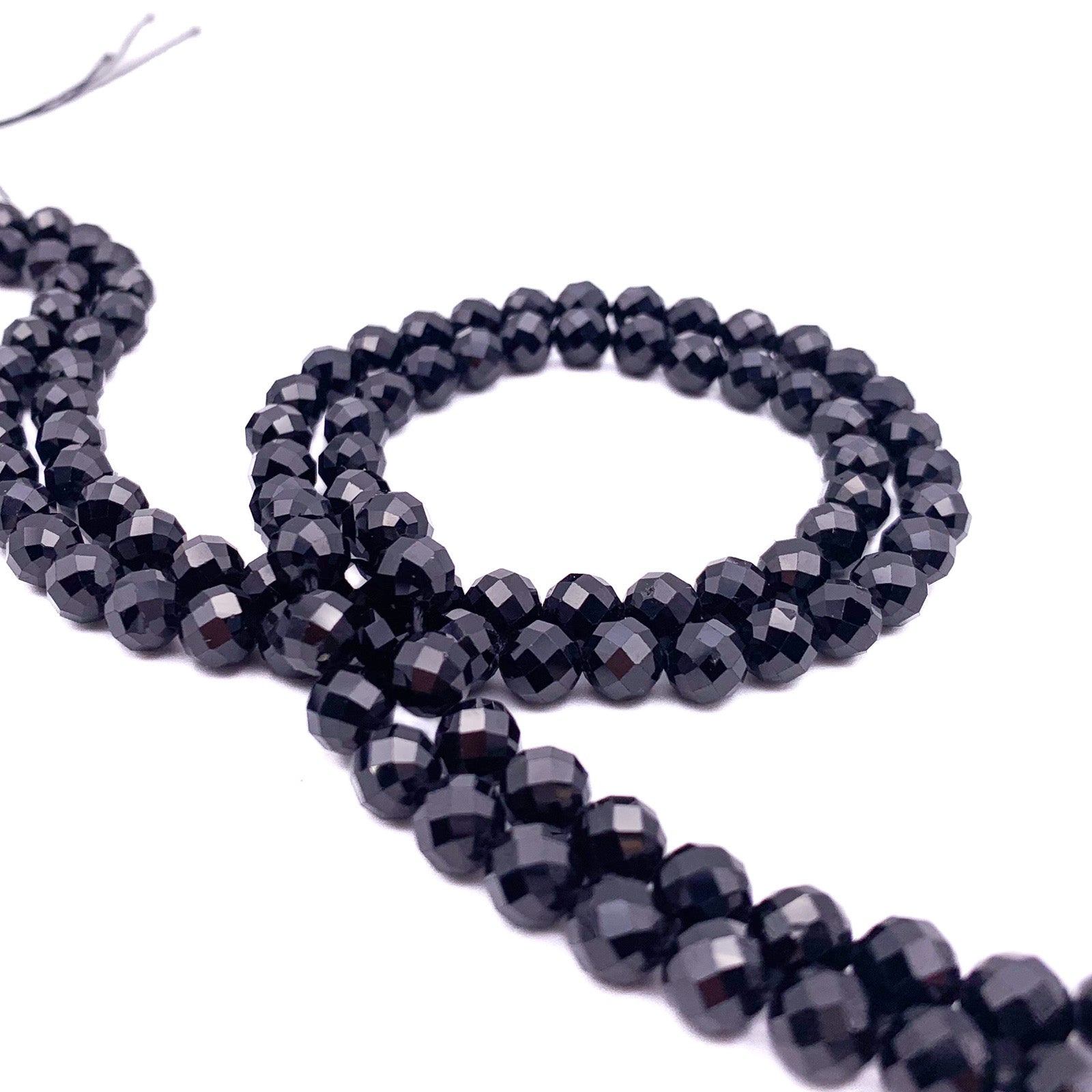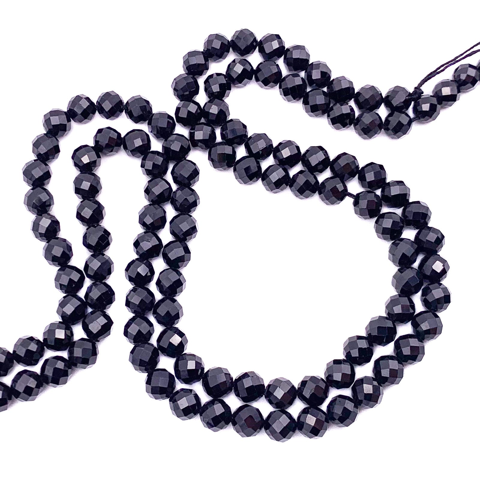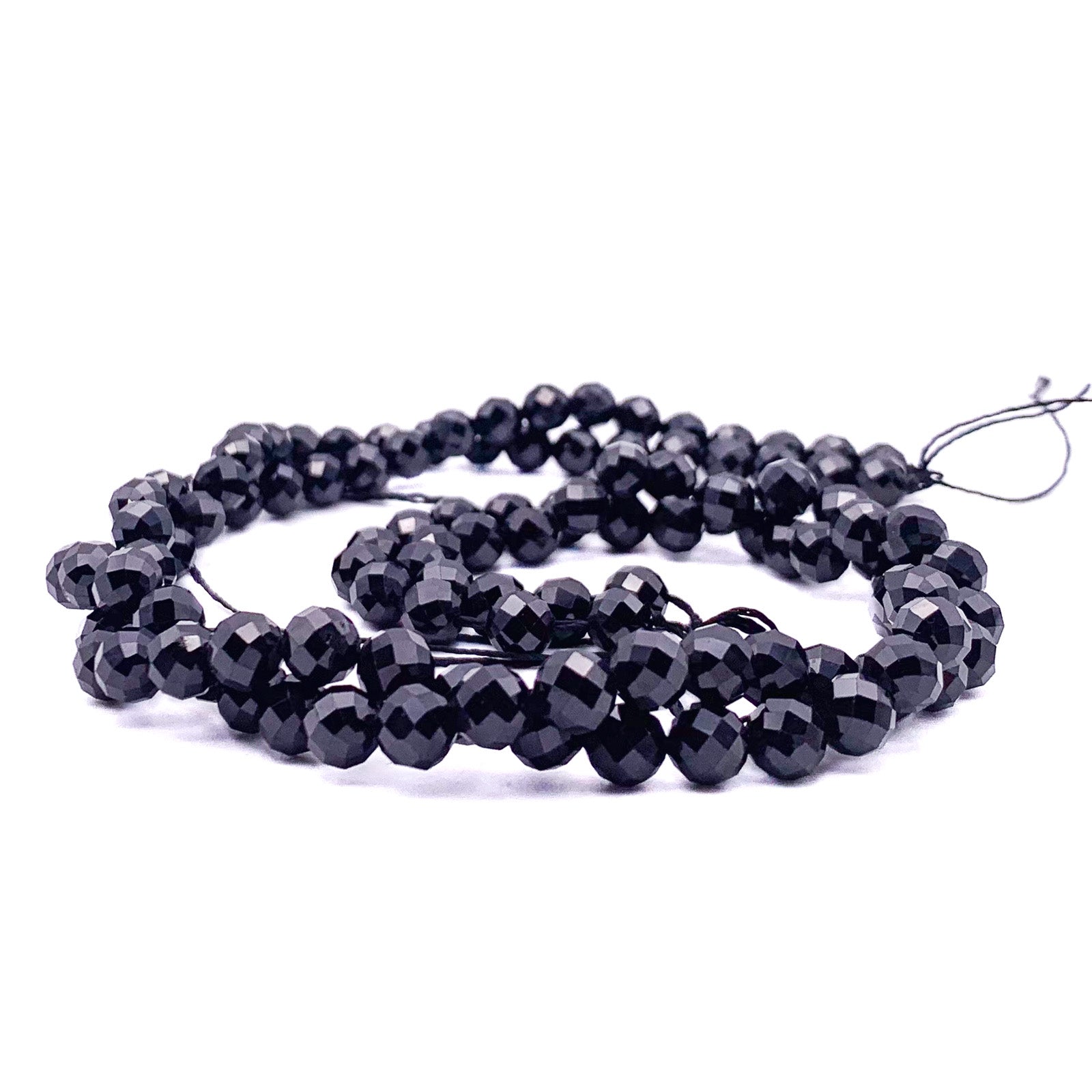Tourmaline Black 7mm Faceted Round Bead Strand