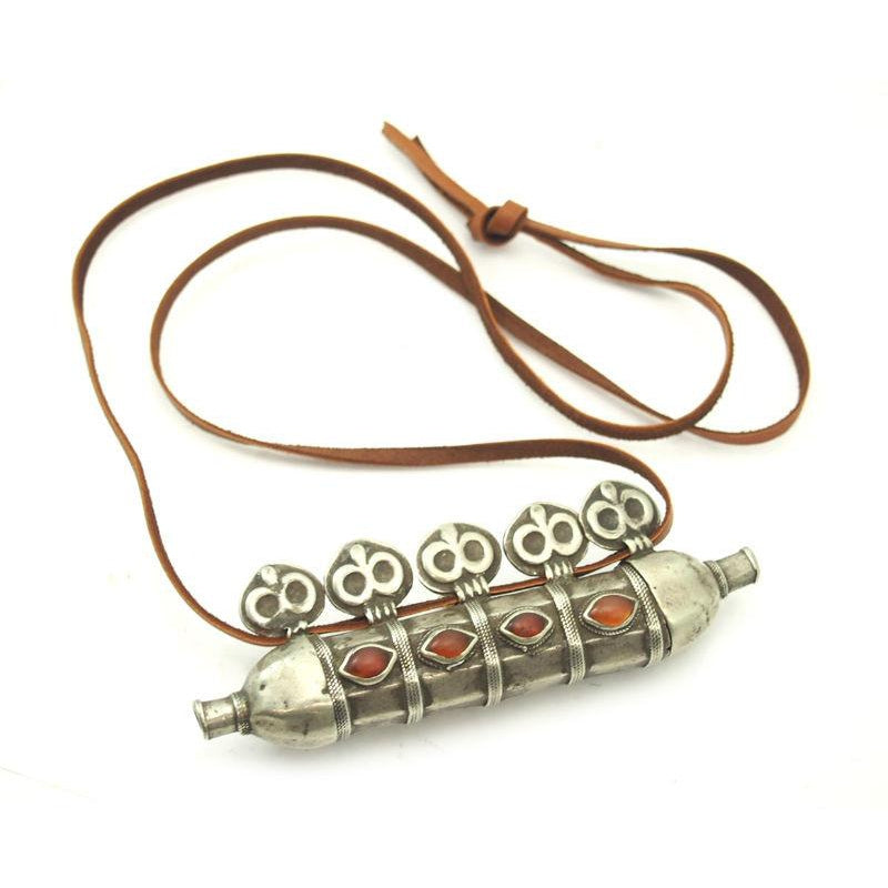 Turkmen Amulet Case Ram's Horn Shape Antique-23