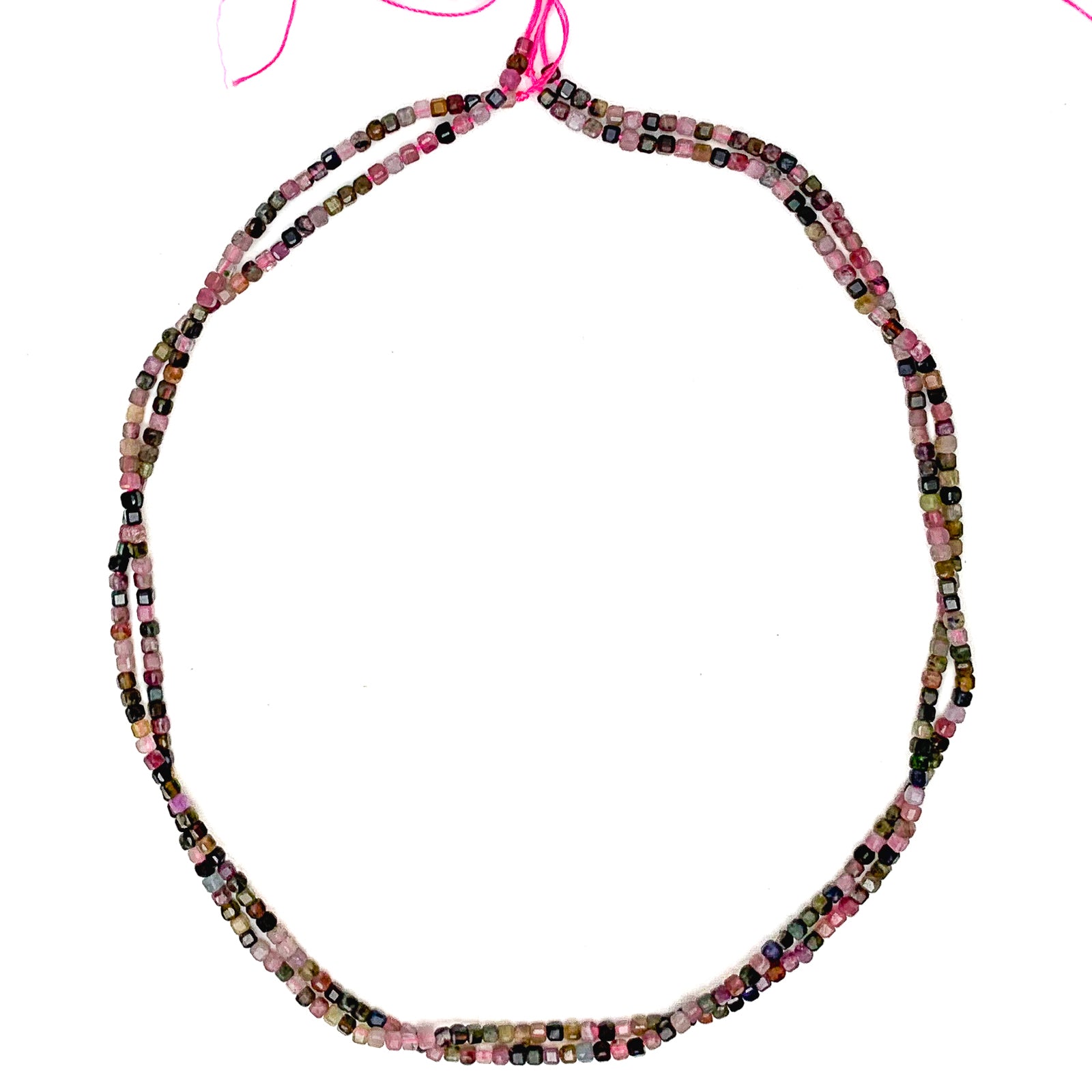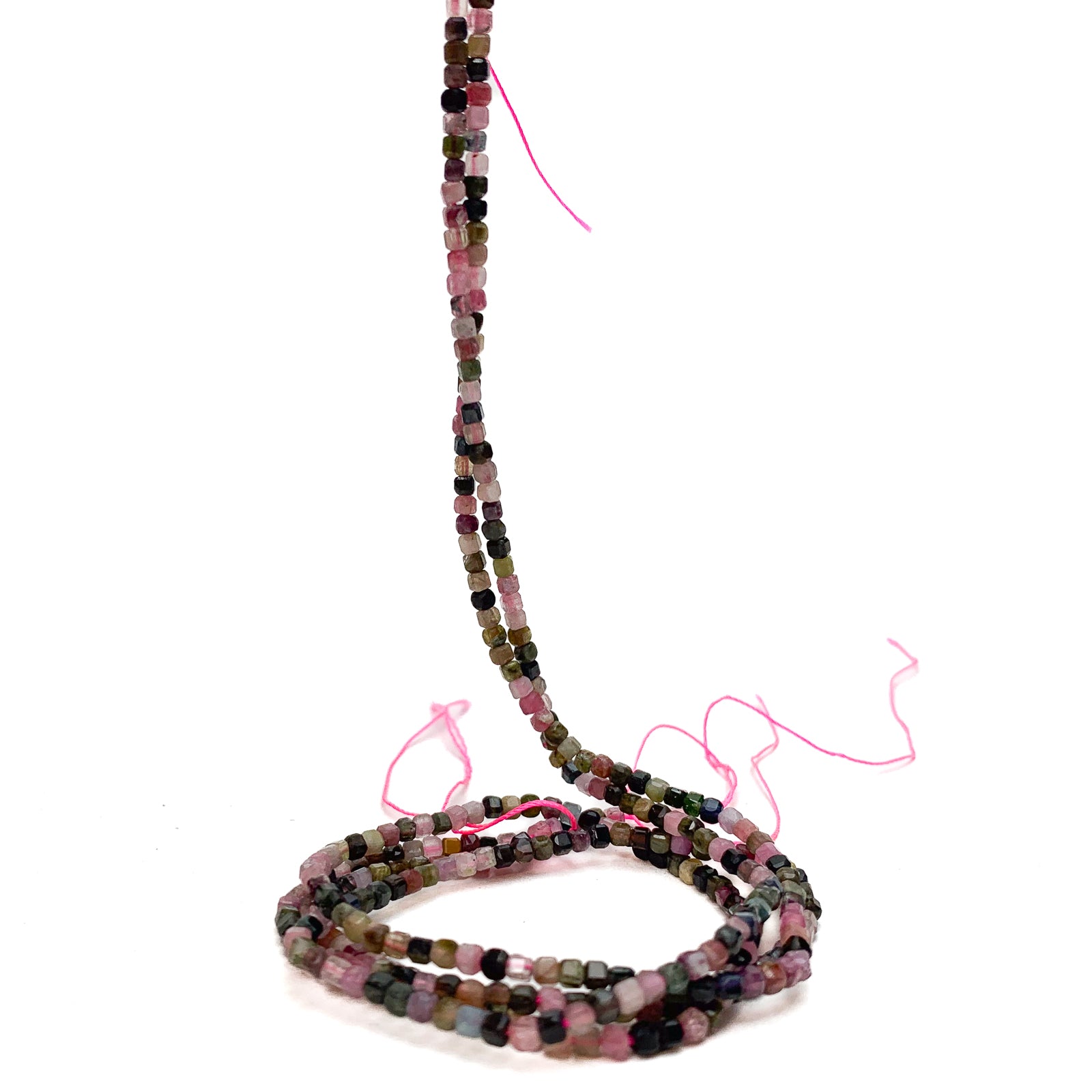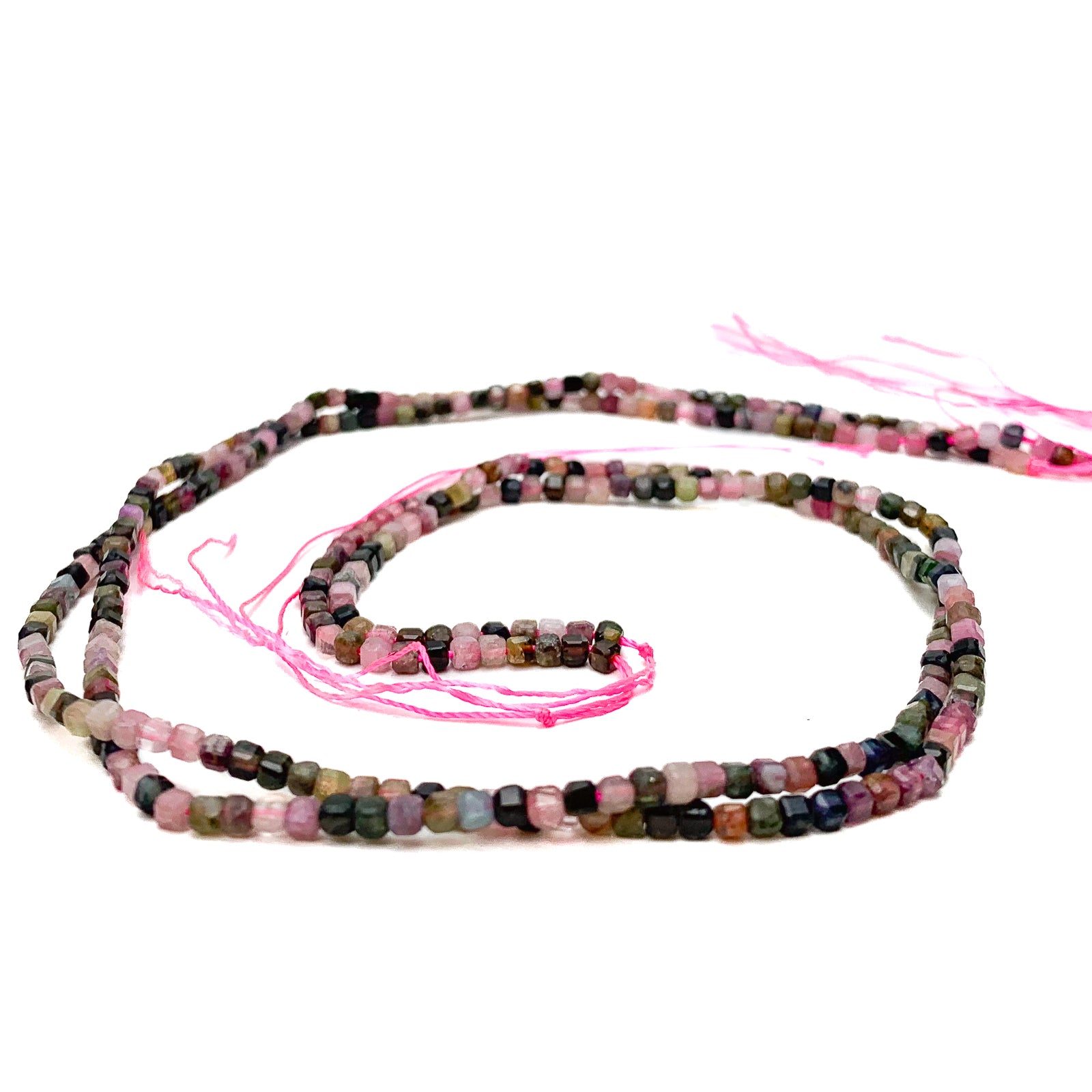 Watermelon Tourmaline 2.5mm Faceted Cubes Bead Strand