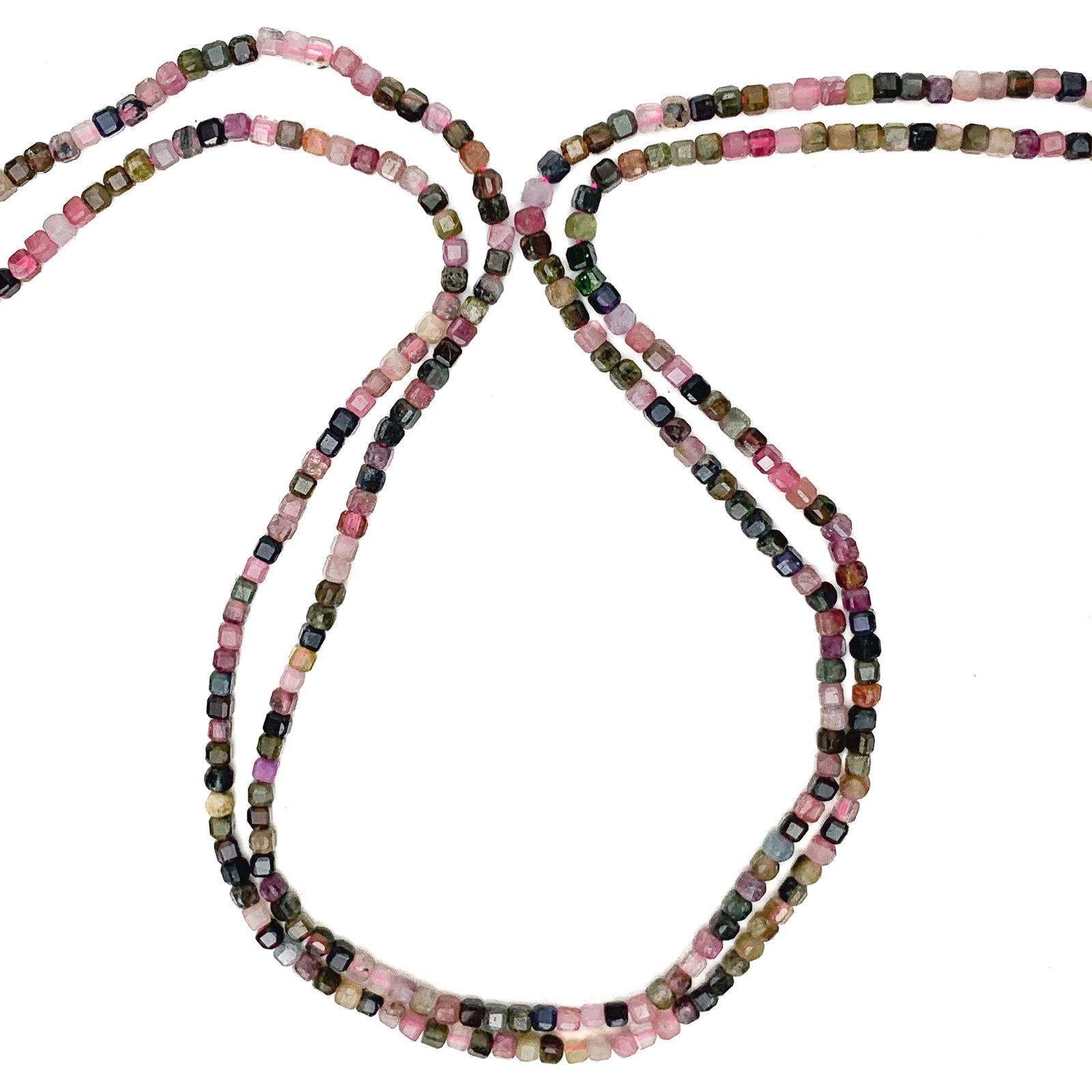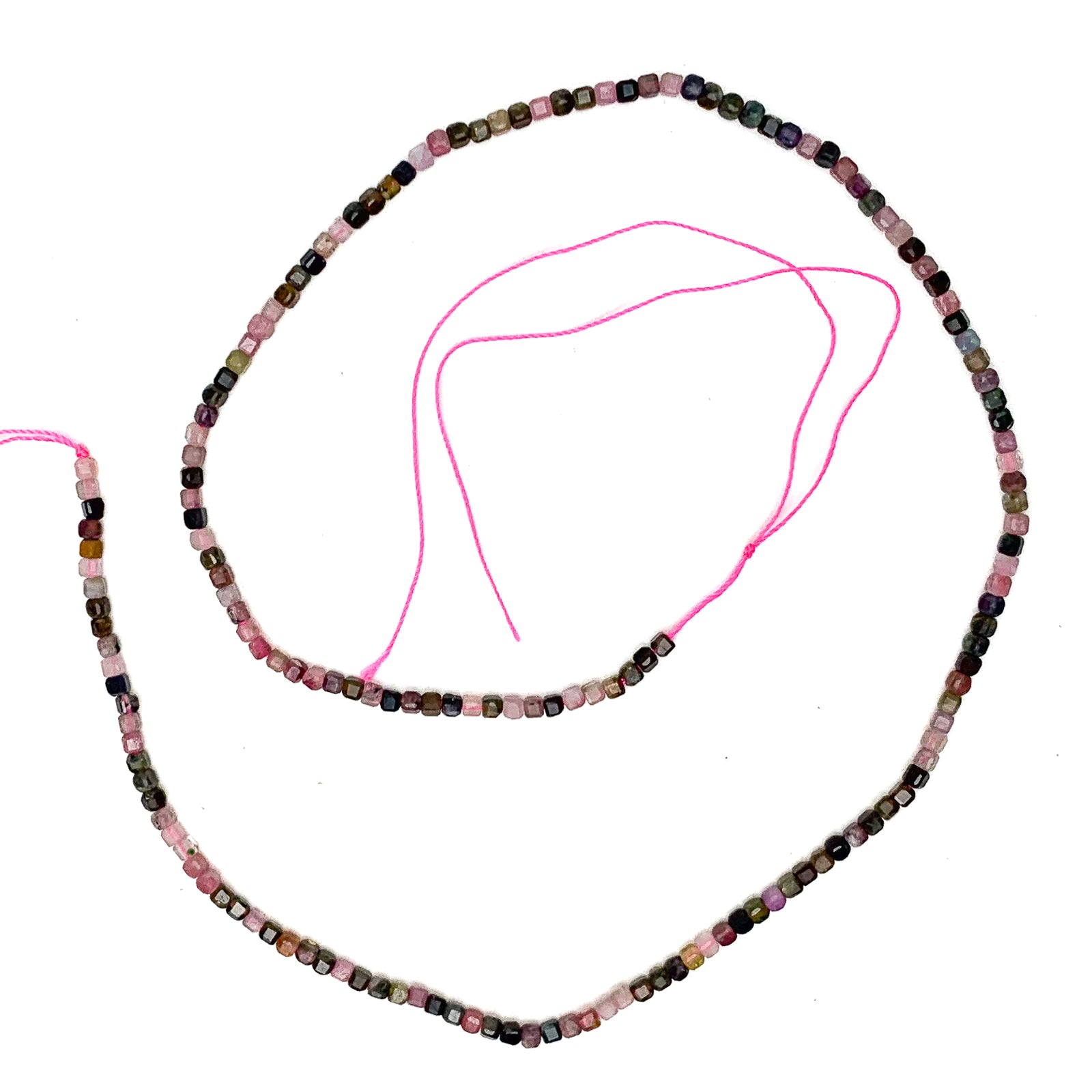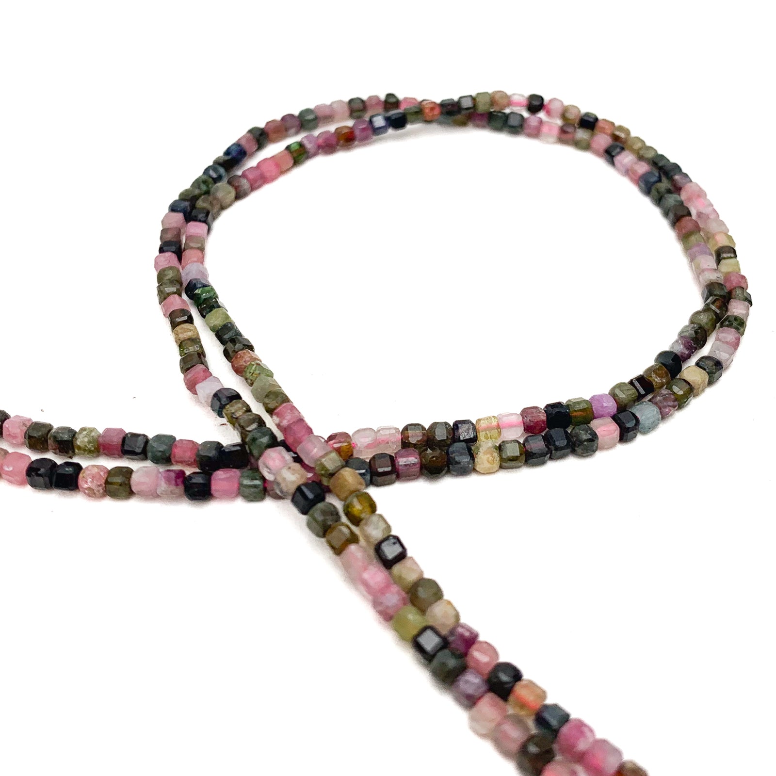 Watermelon Tourmaline 2.5mm Faceted Cubes Bead Strand