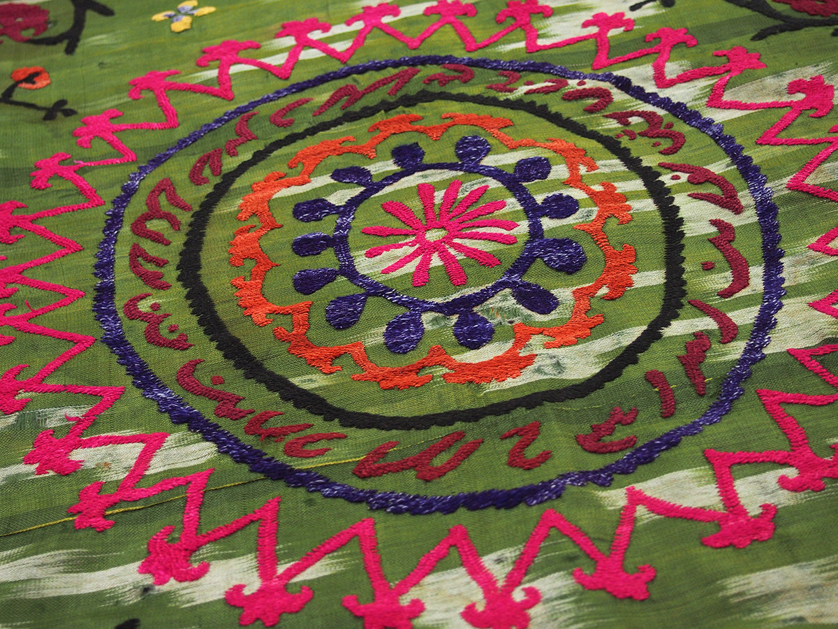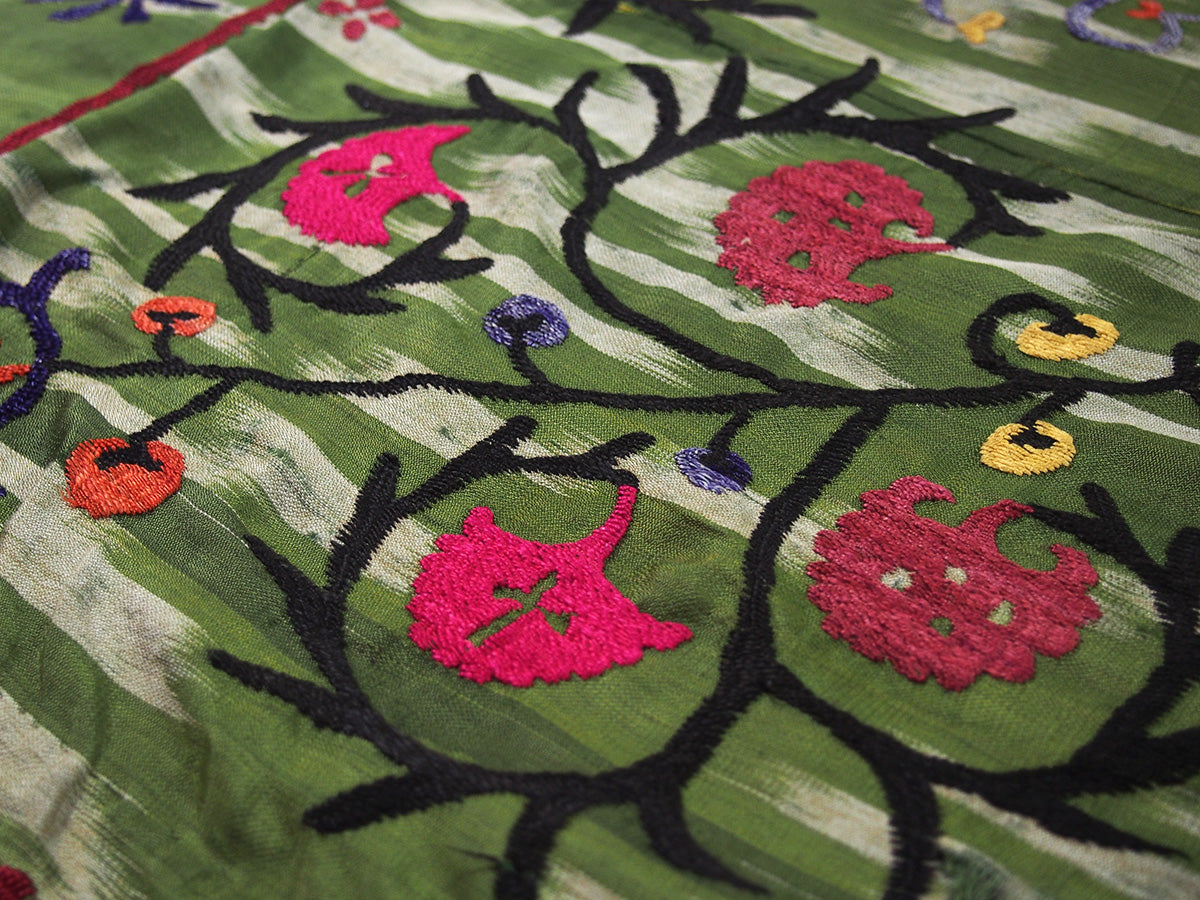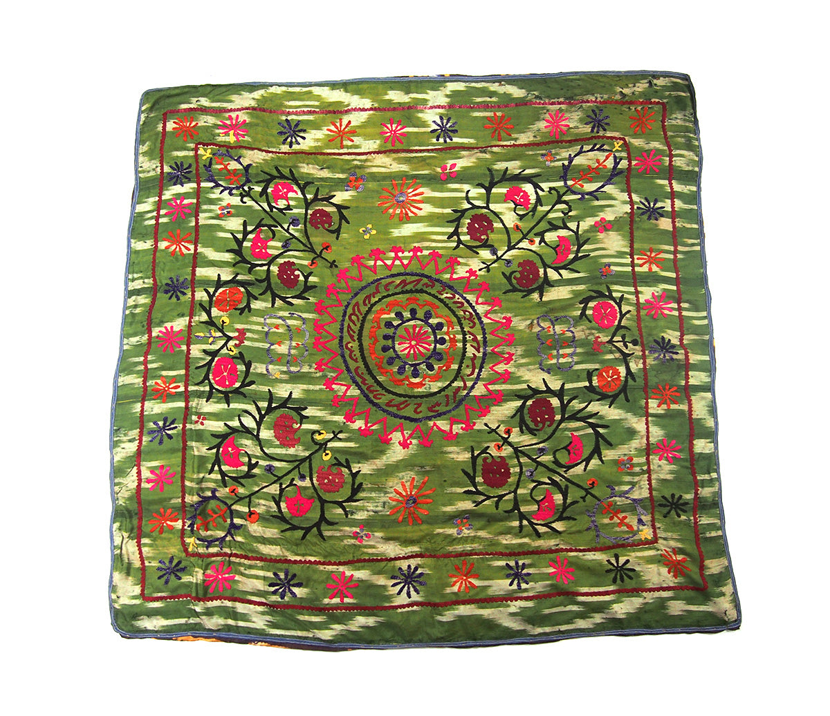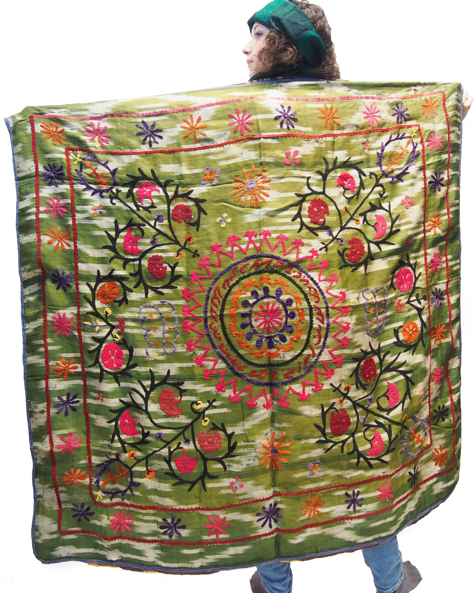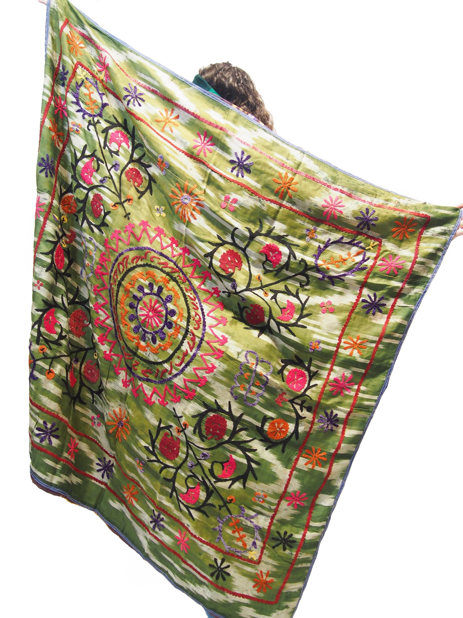 Ensemble 23: Vintage Suzani Tapestry with 100% Raw Silk Hand Dyed Scarf - Each Item Sold Separately