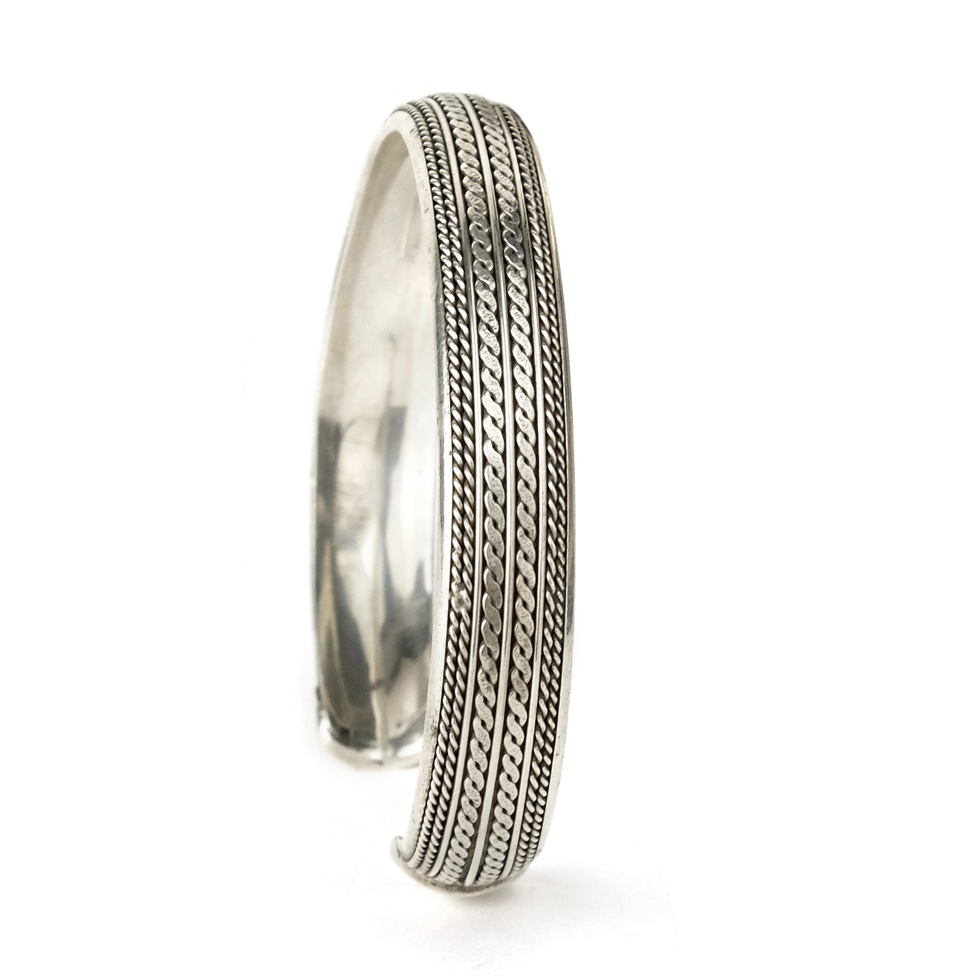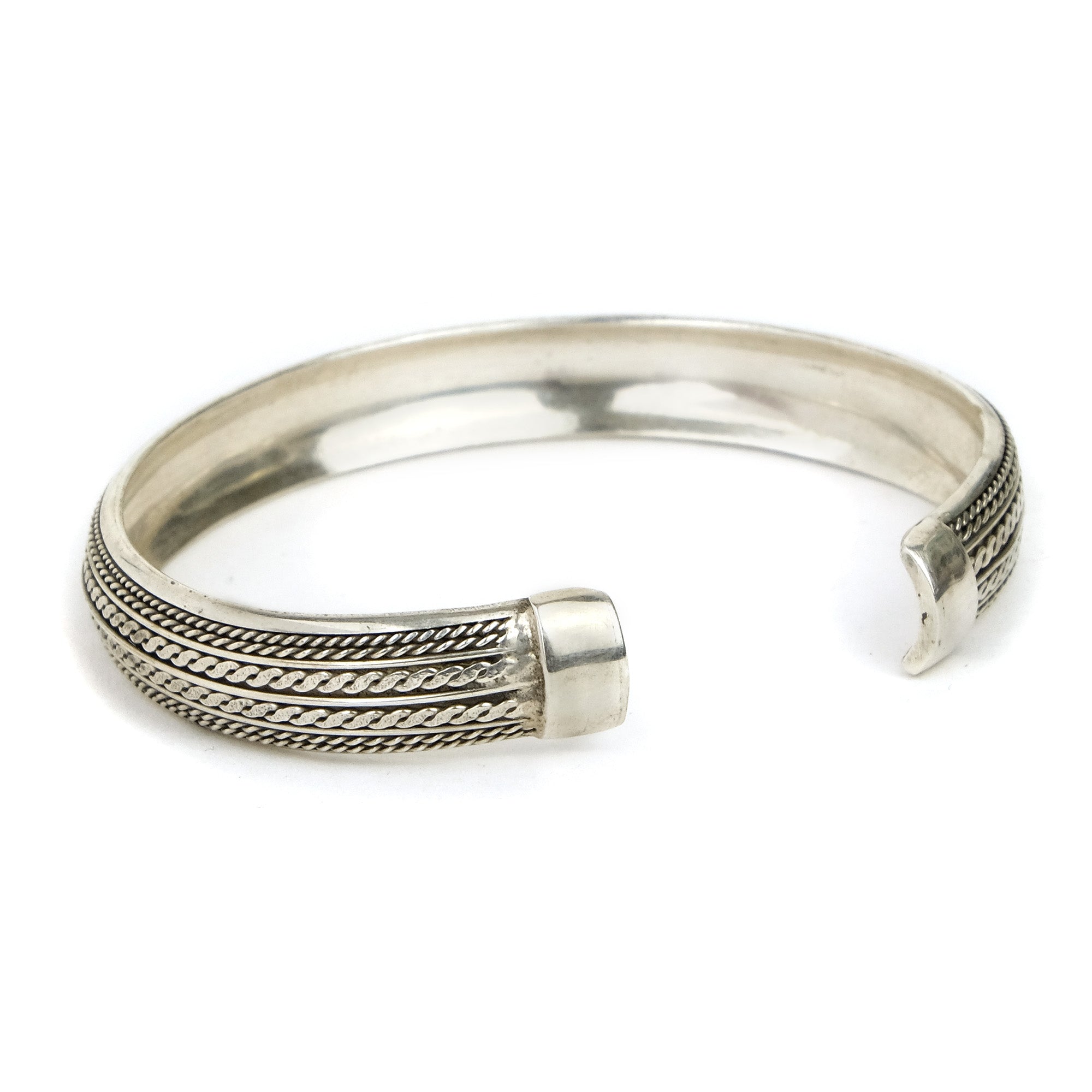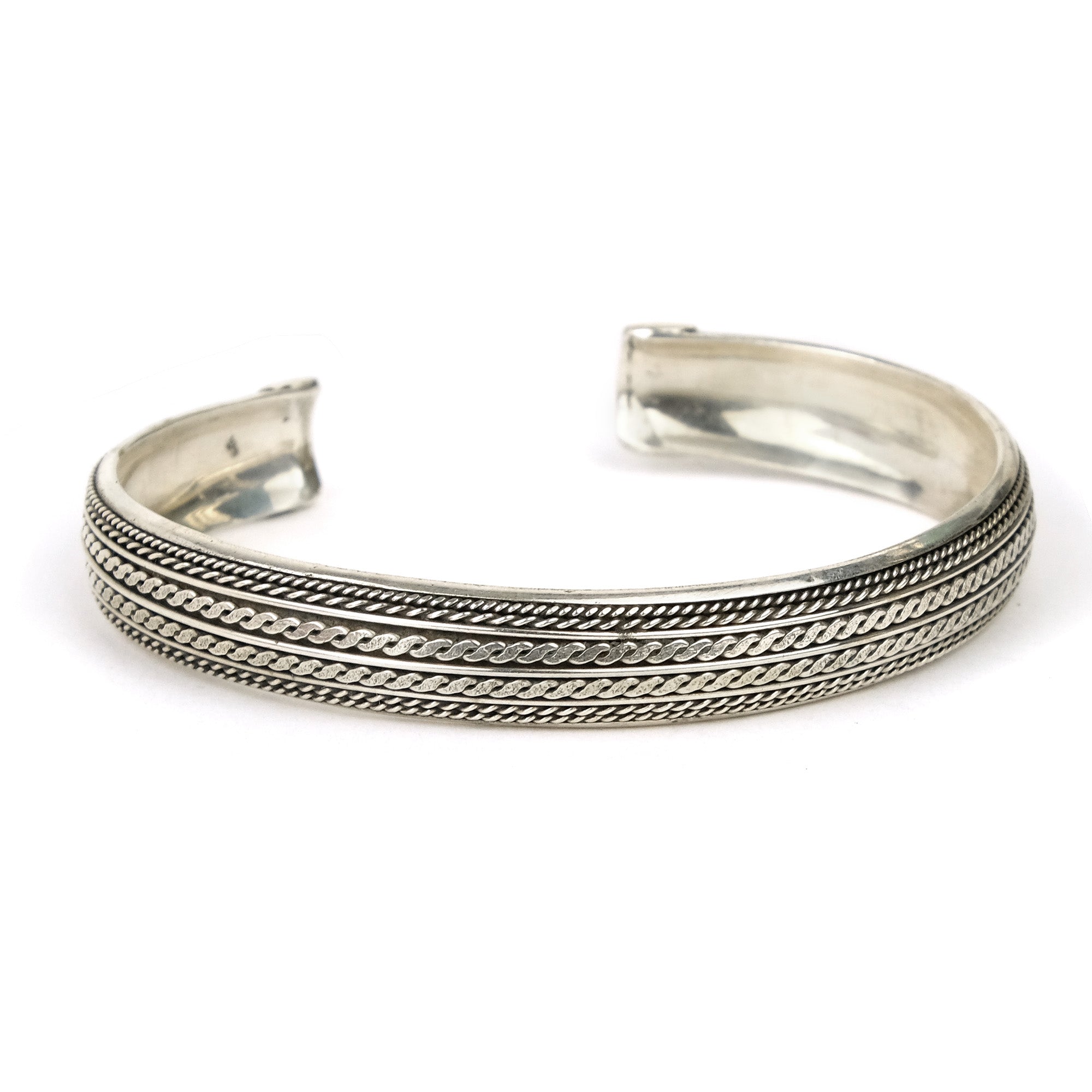 Layered Rope & Lines Sterling Silver Cuff Bracelet