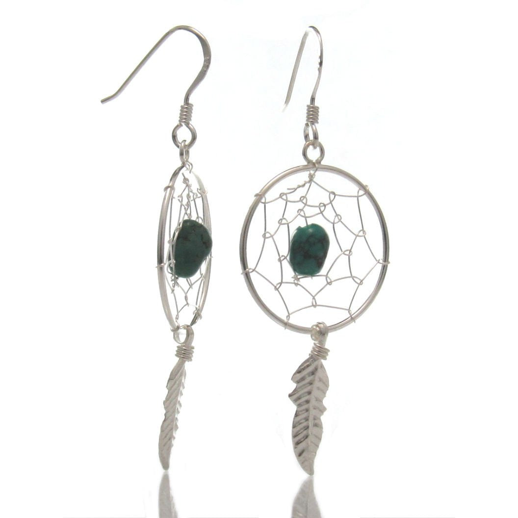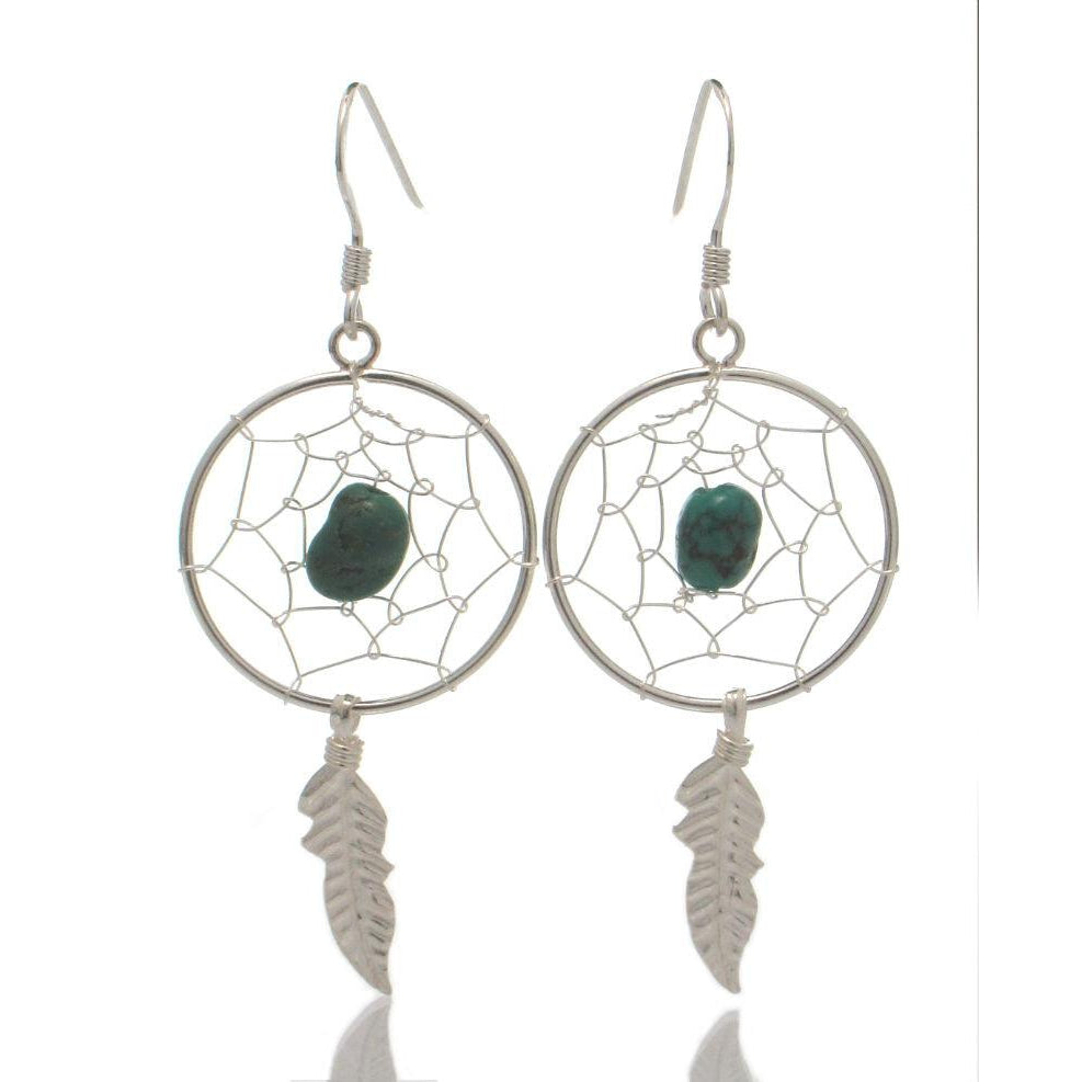 Sterling Silver 20mm Dreamcatcher Earrings with Turquoise Center Stone
