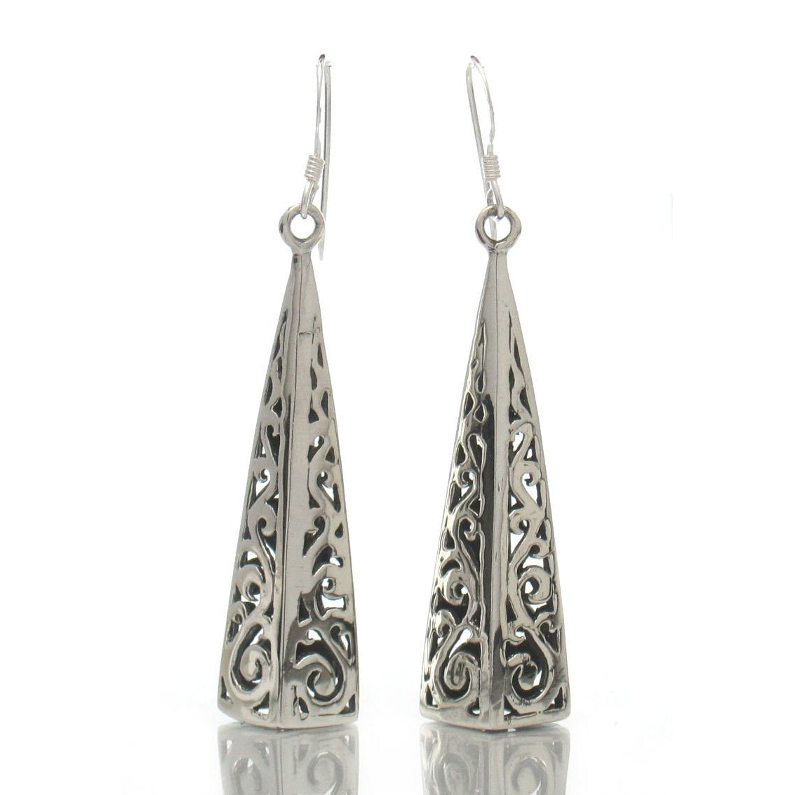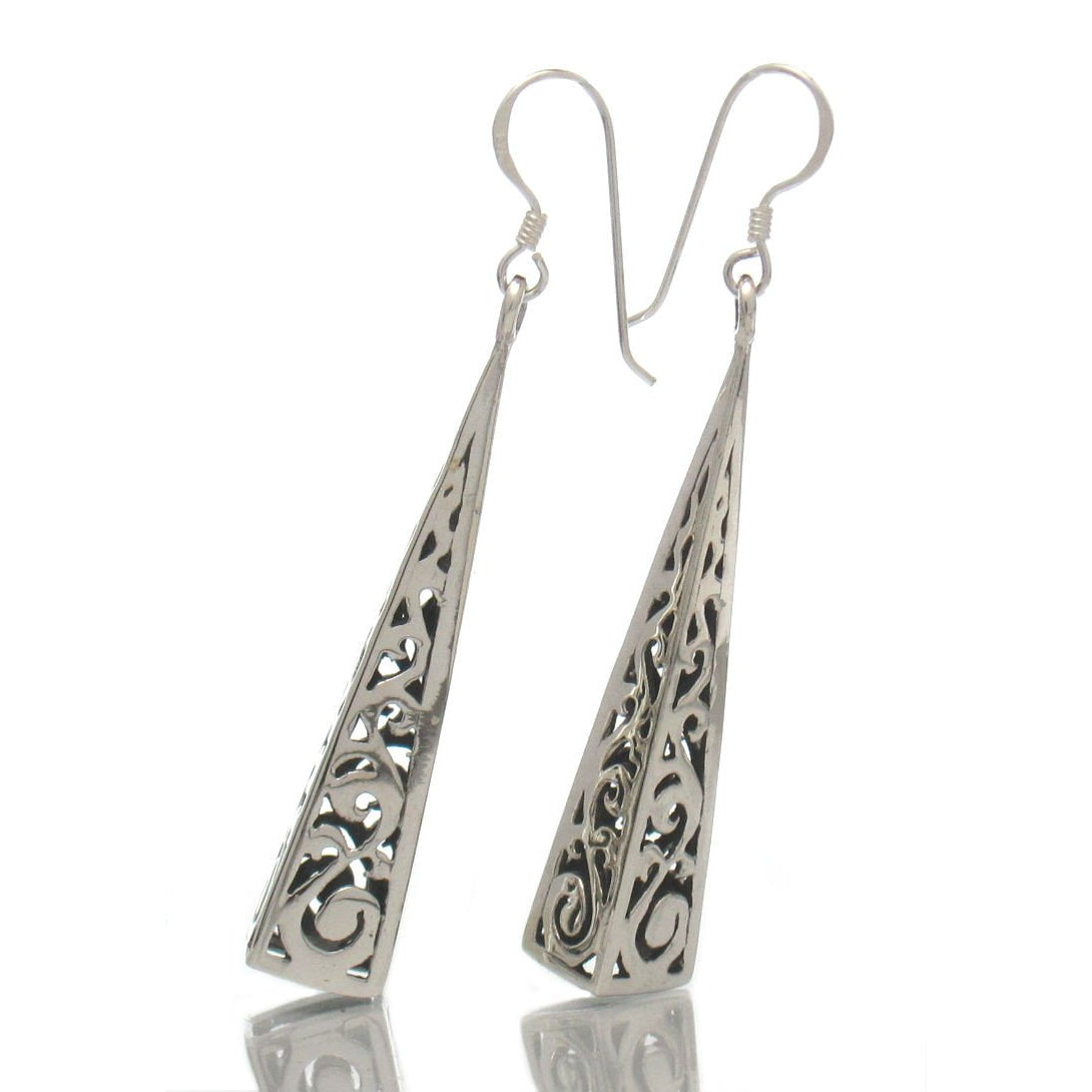Sterling Silver Filigree Long Bell Shaped Earrings