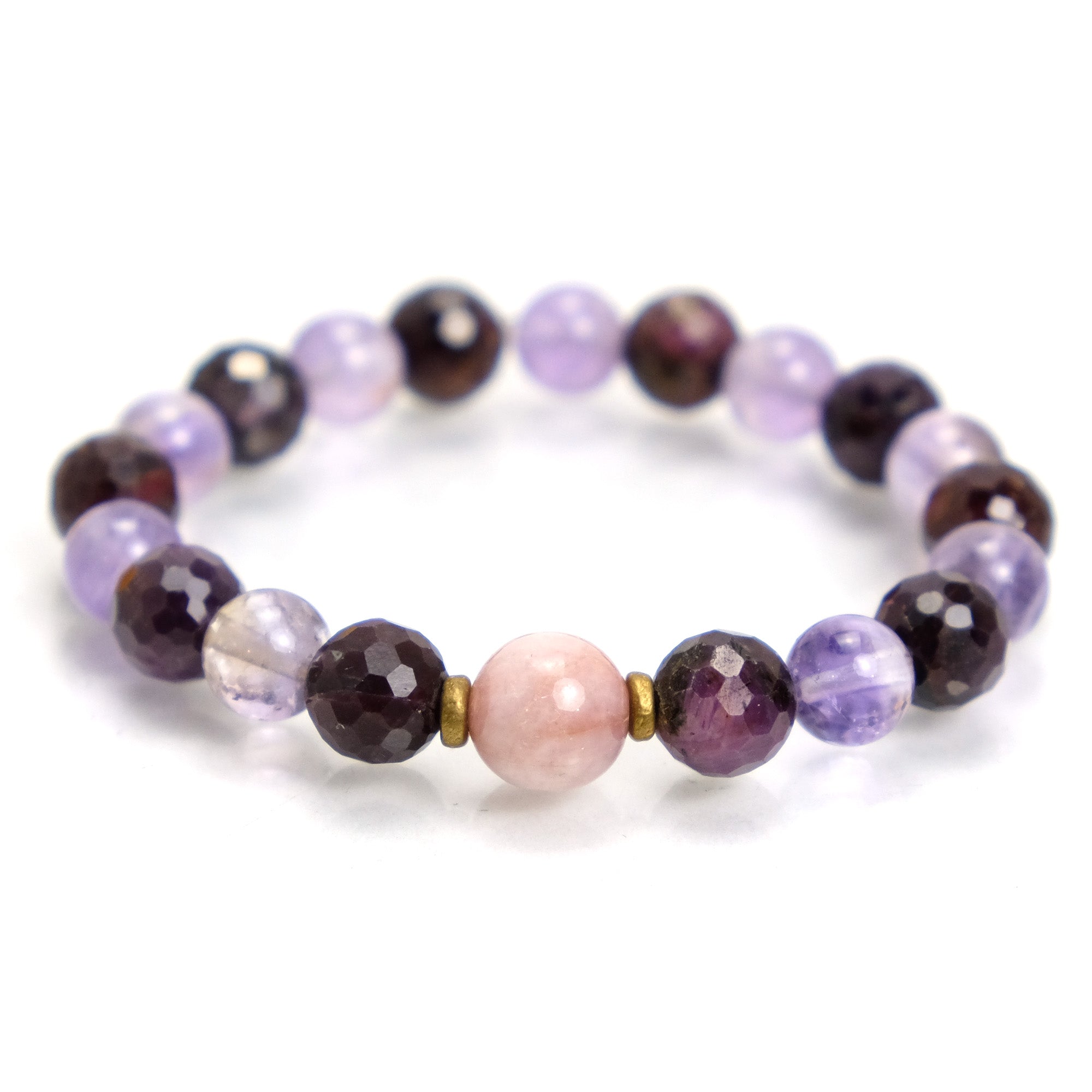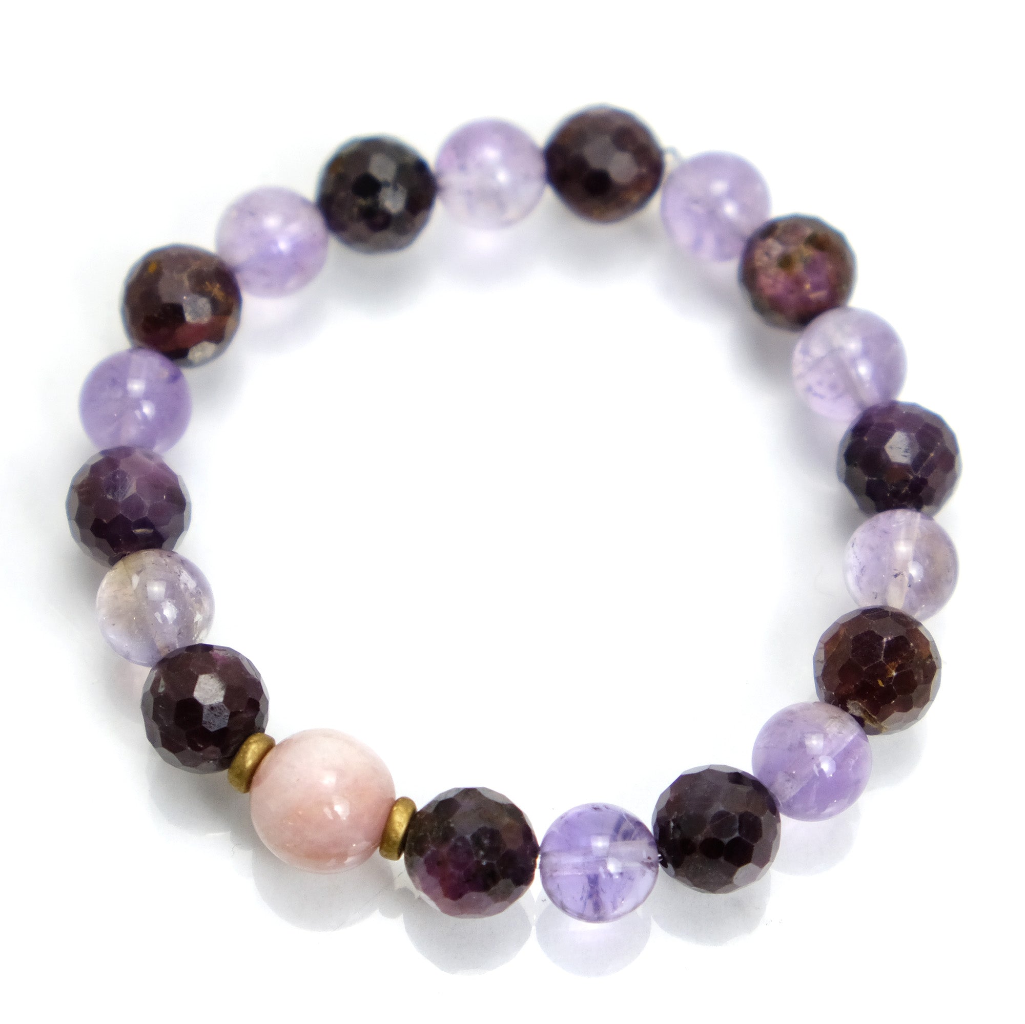 Amethyst + Kunzite + Ruby Stretch Bracelet on Elastic Cord