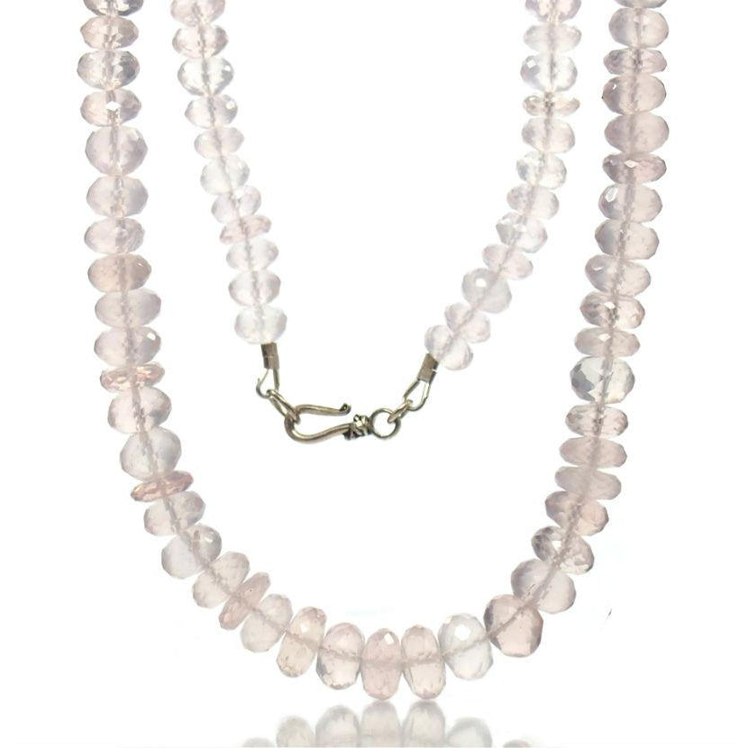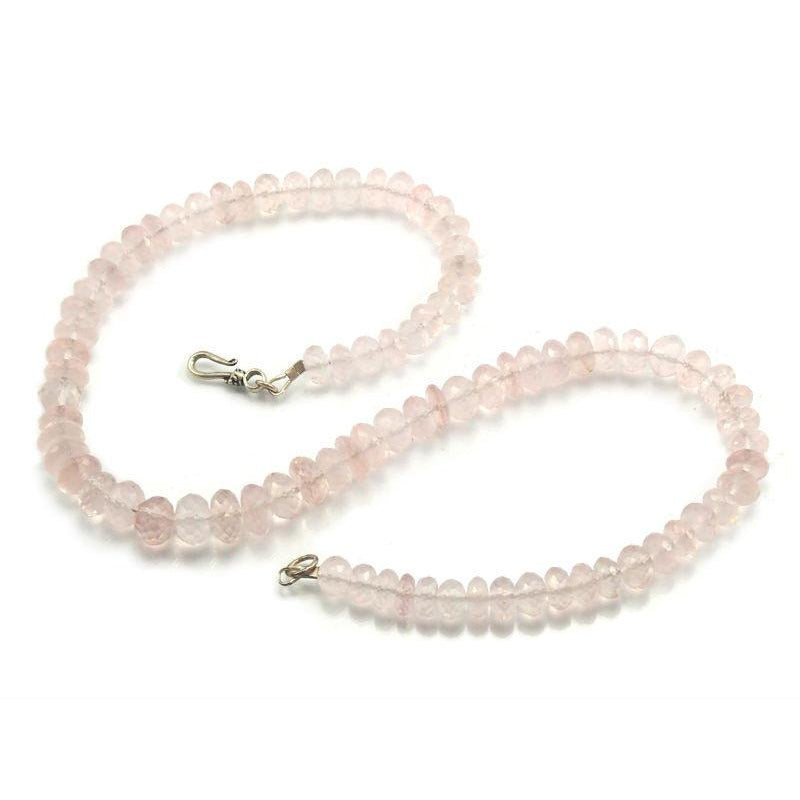 Faceted Rose Quartz Rondelle Necklace with Sterling Silver Hook Clasp