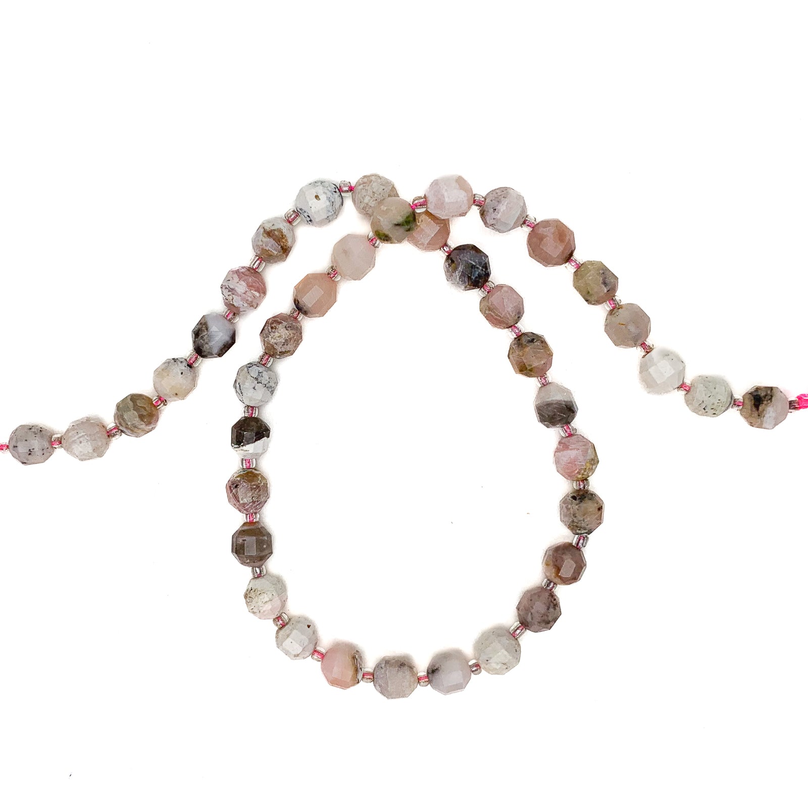 Pink Opal 7mm Faceted Drums Bead Strand