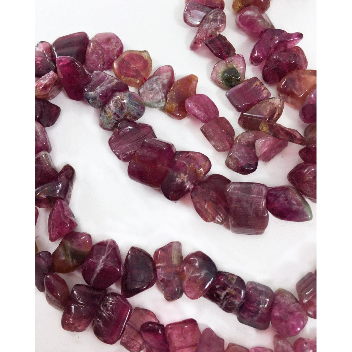 Pink Tourmaline Tumbled Flat Nugget Strand
