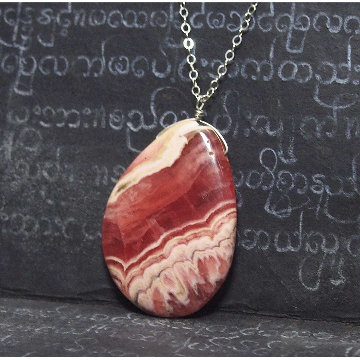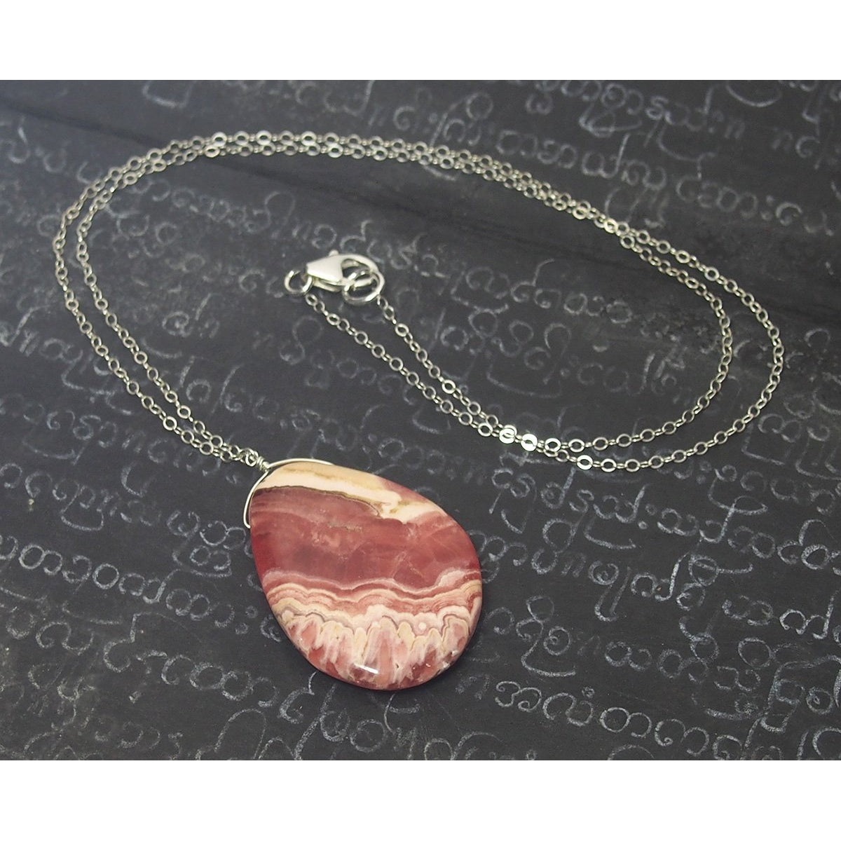 Rhodochrosite Necklace On Sterling Silver Chain With Sterling Silver Trigger Clasp