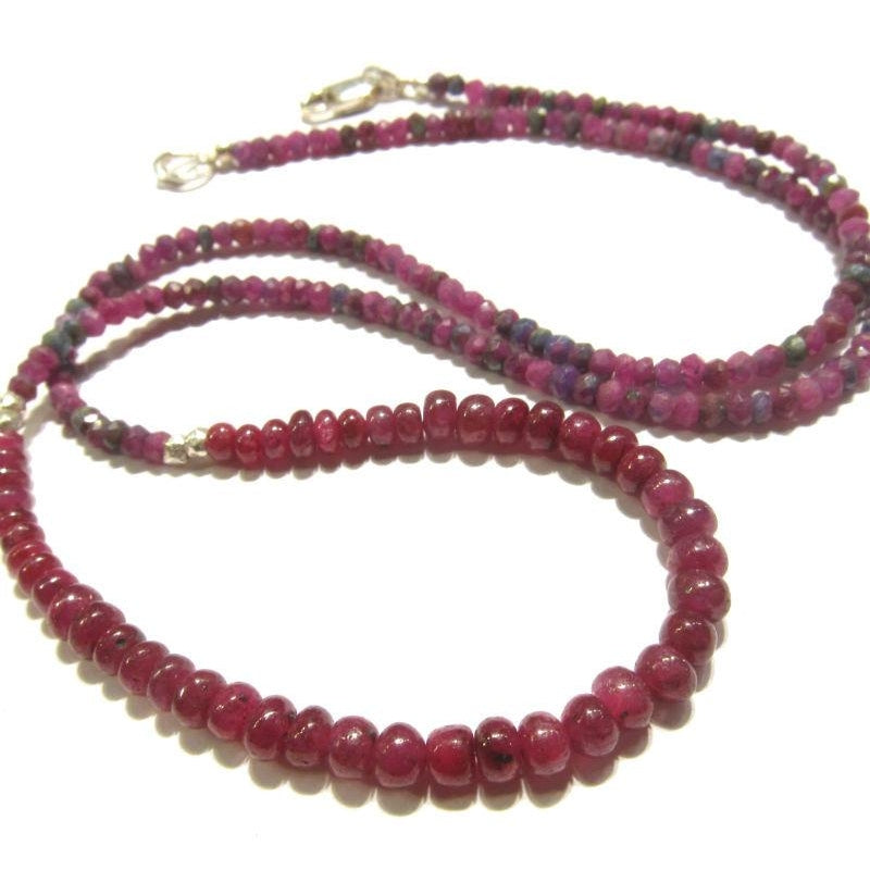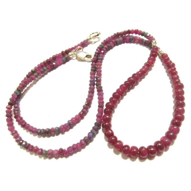 Ruby and Ruby-Zoisite Necklace with Sterling Lobster Claw Clasp