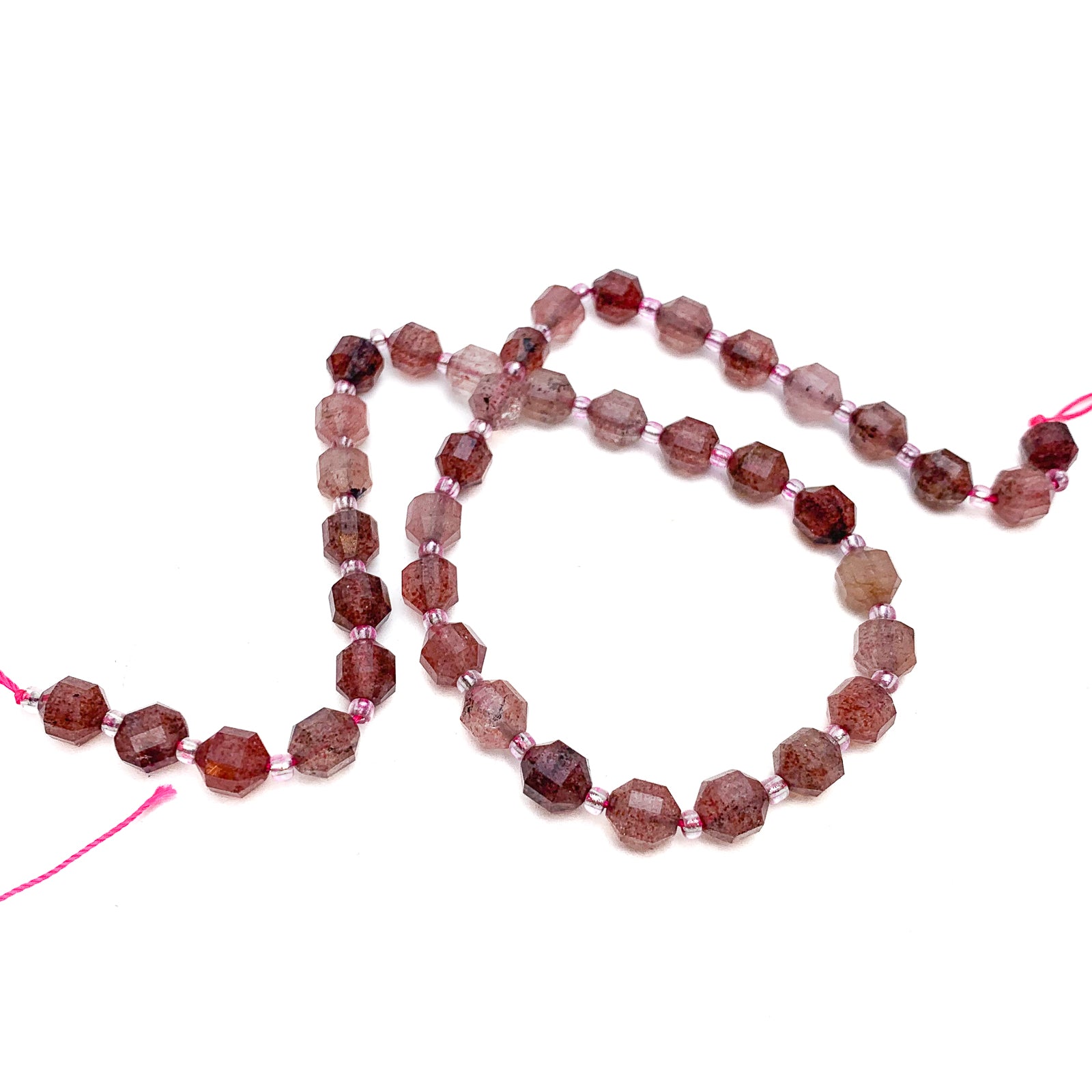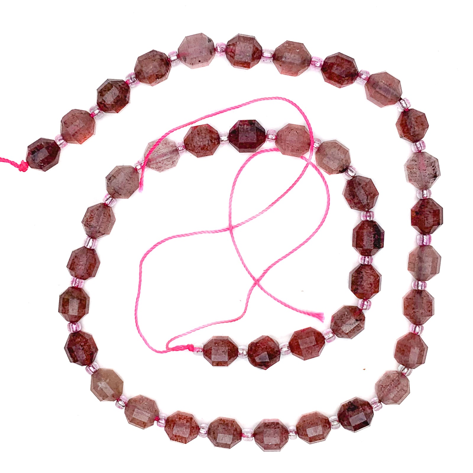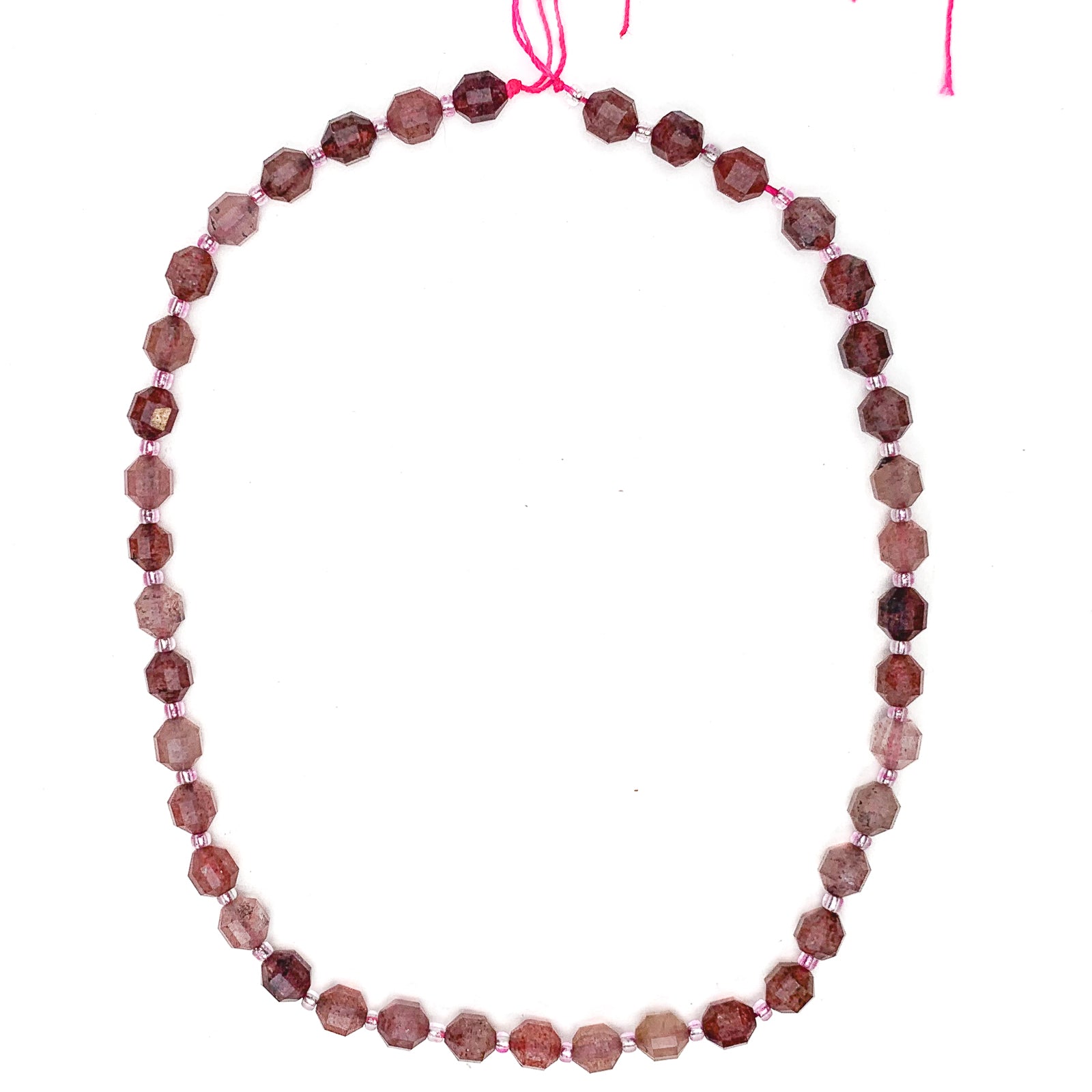 Strawberry Quartz 7mm Faceted Drums Bead Strand