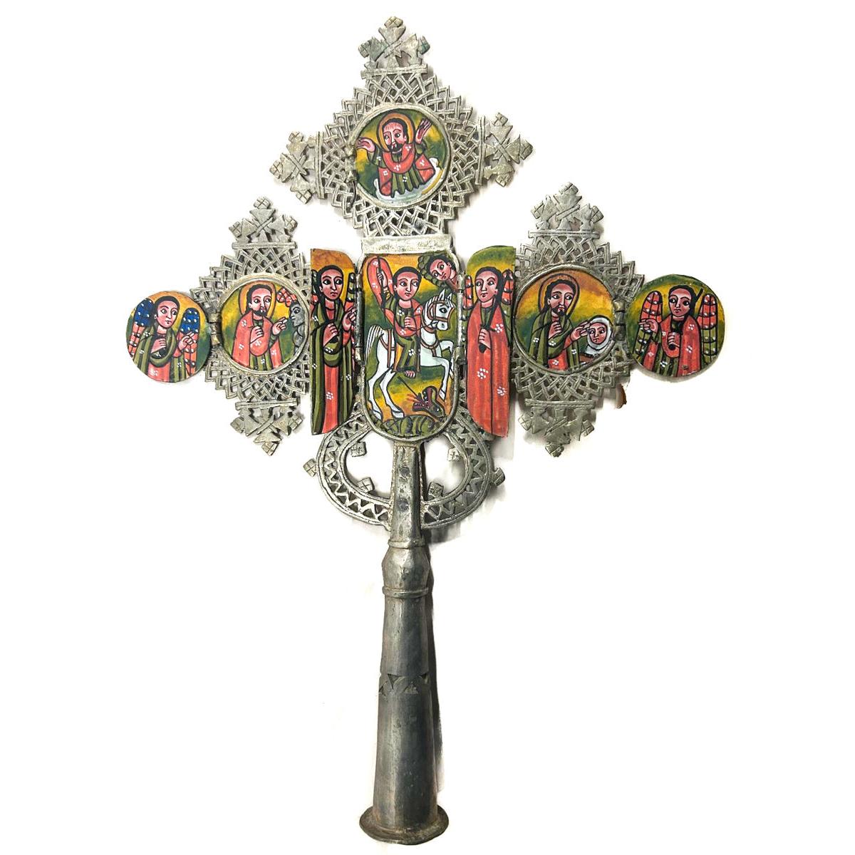 Ethiopian Processional Hand-Painted Multiple Window Cross #2