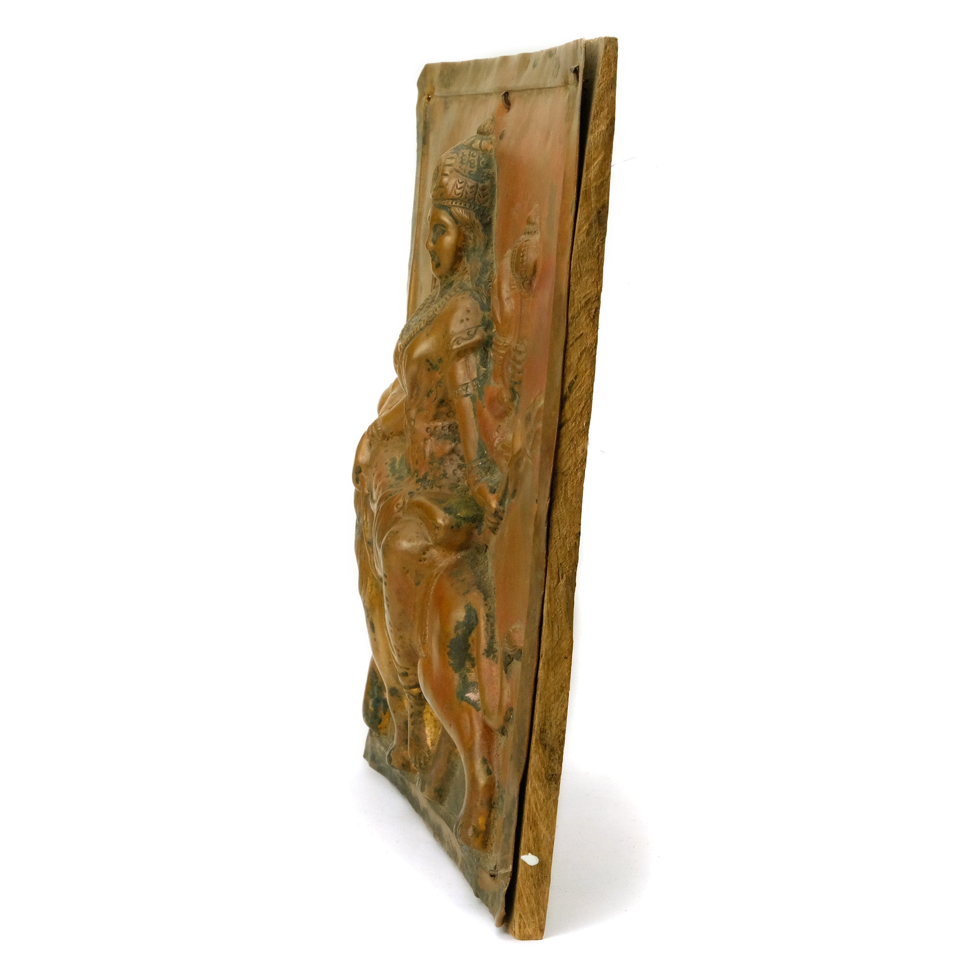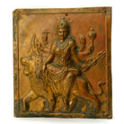 Goddess Durga Ambe Sherawali Mata on Lion Antique Old Copper Hindu Plaque #5