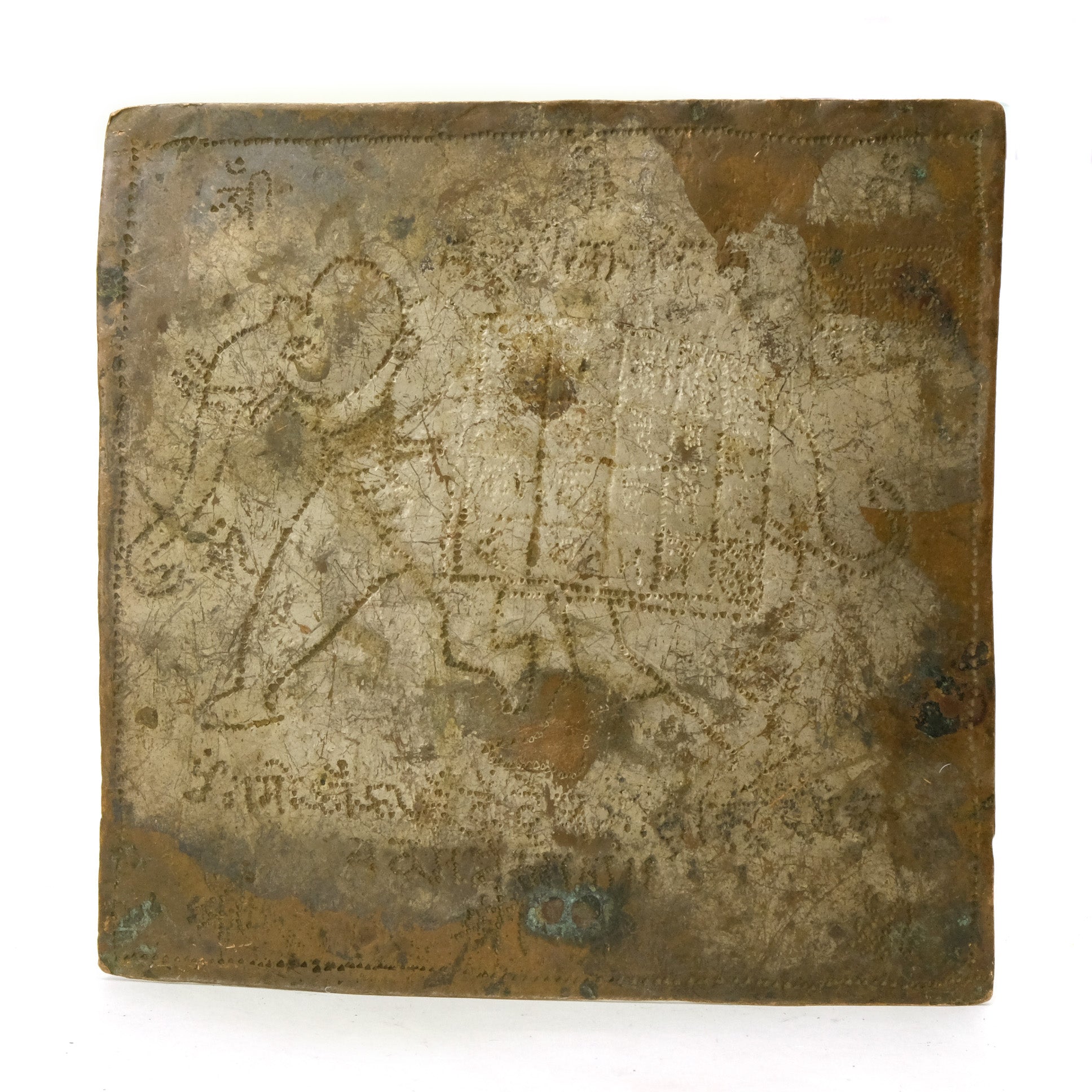 Elephant Antique Copper Sanskrit Mantra Etched Hindu Goddess Lakshmi Yantra Plaque # 7