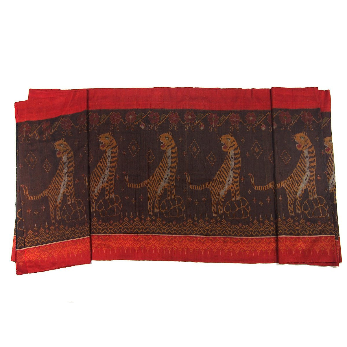 Tiger Ikat Heirloom 100% Silk Hand Woven Textile 26 Foot Length from Thailand