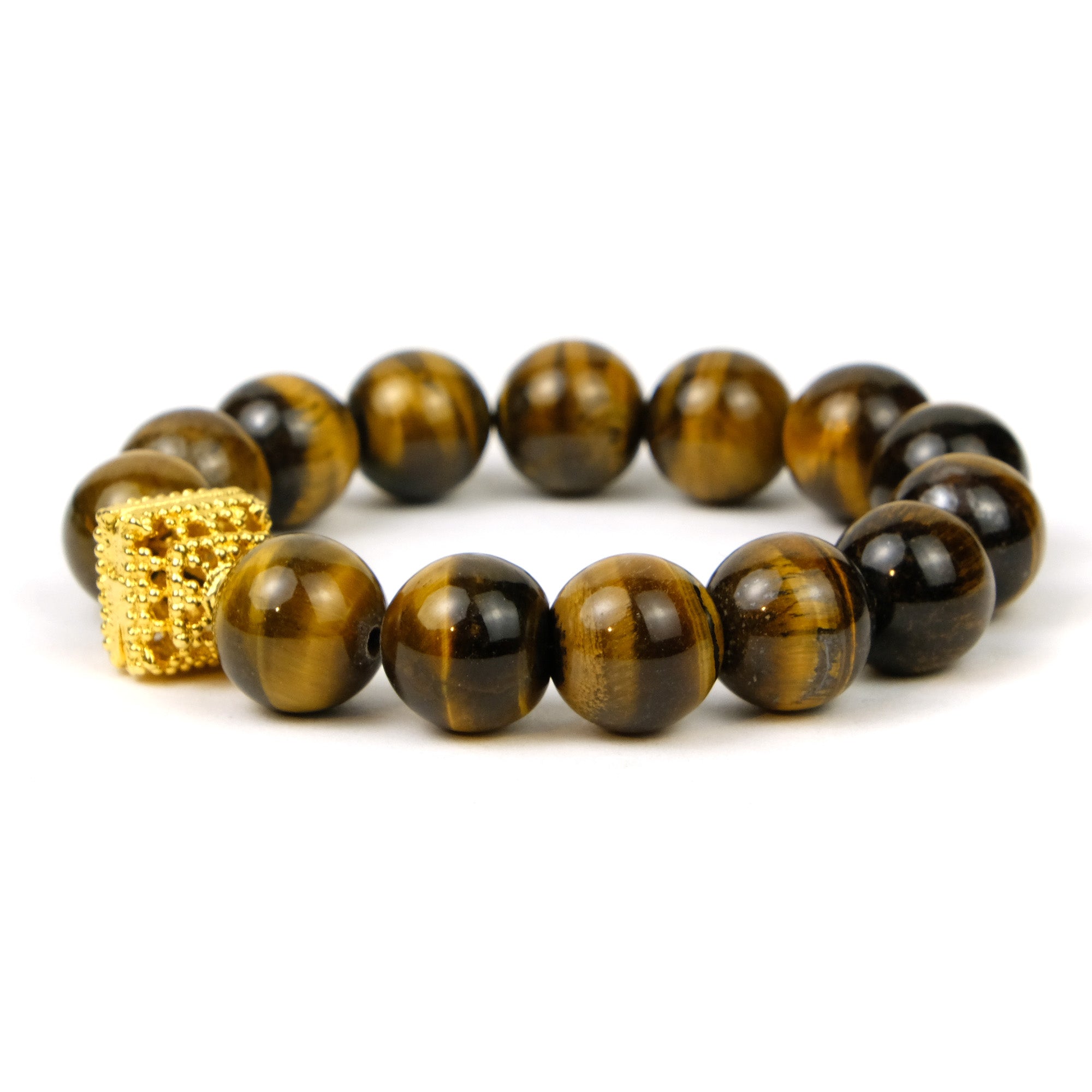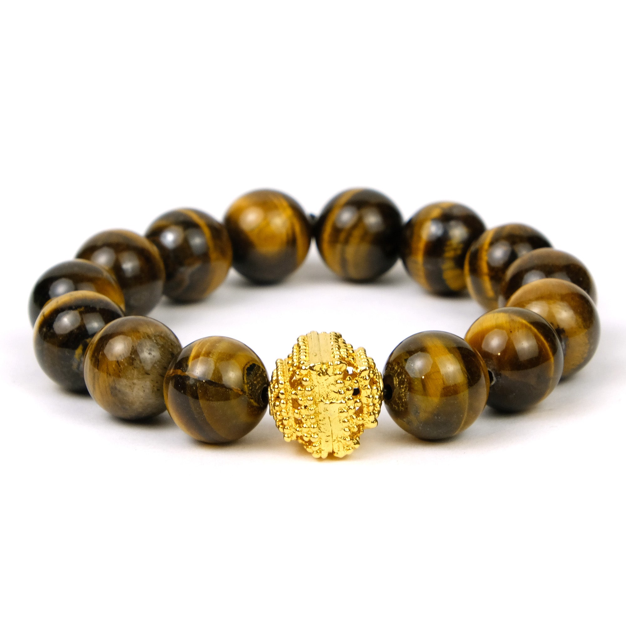 Tigers Eye Stretch Bracelet w/ 14k Gold Plated over Sterling Silver Bead