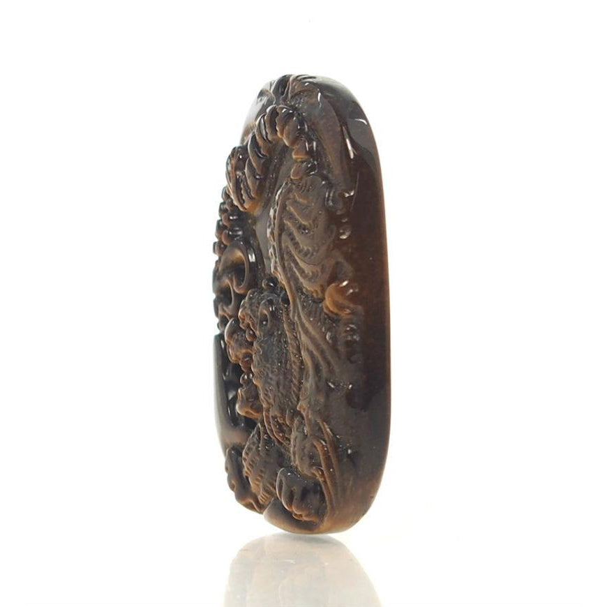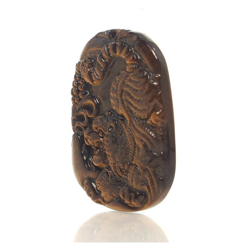 • Tiger’s Eye is a form of Chalcedony quartz, but is what is a known in mineralogy as a pseudomorph. The term comes from the Greek for "false form." Pseudomorphs form when one mineral replaces another. It began as the fibrous blue mineral called Crocidolite, which is made up of iron and sodium. The Crocidolite was gradually transformed into when quartz becomes embedded between the fibers of Crocidolite. This process can result in two different gemstones: a blue stone called Hawk's Eye or the golden brown stone called Tiger's Eye. Gentle heating can turn Tiger’s Eye a rich red color. In the course of the process, the Crocidolite is completely dissolved. But the quartz takes on the fibrous formations and this creates the parallel lines within the gem which gives it that effect of shifting plays of light; it is one of the "chatoyant" gemstones. Chatoyancy exhibits a changeable silky luster as light is reflected within the thin parallel fibrous bands. Tiger's Eye is mined in South Africa, Australia, the USA, Canada, India, and Namibia Ancient Roman soldiers were said to carry Tiger’s Eye stones for protection in battle.  Common folklore rumors Tiger's Eye may increase focus and mental clarity, and is a good stone for business people.