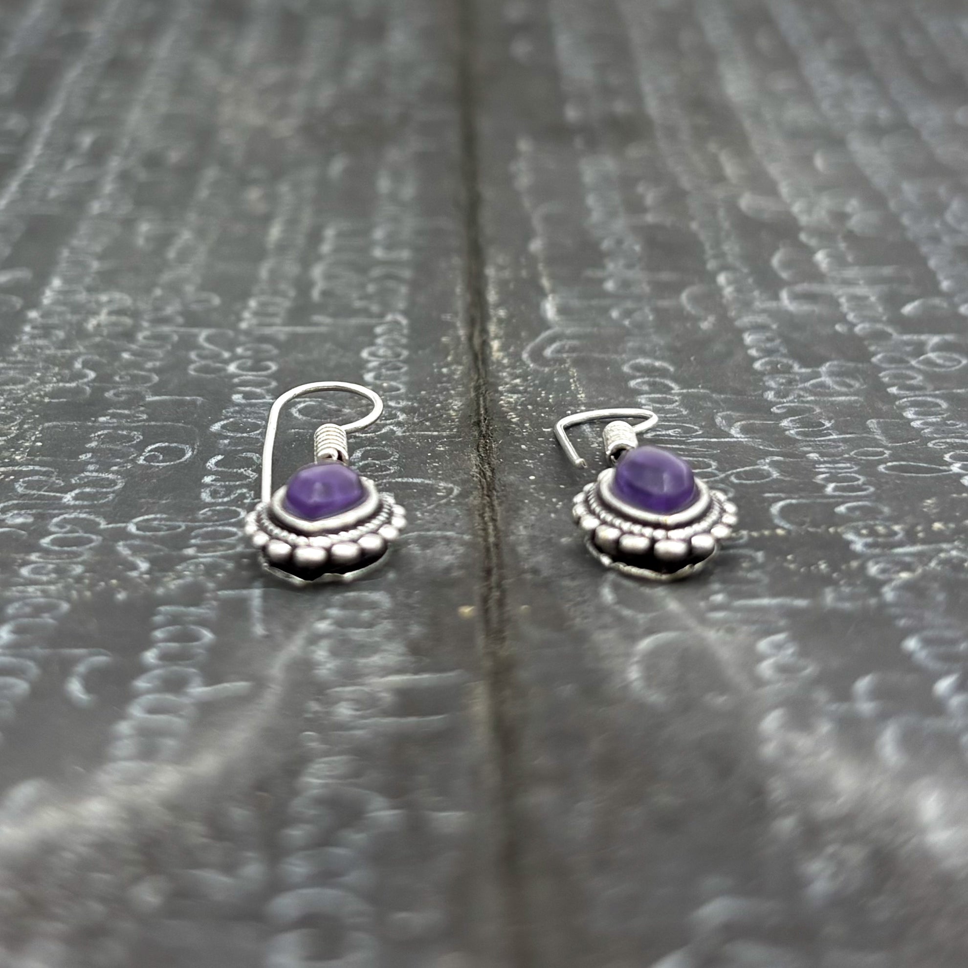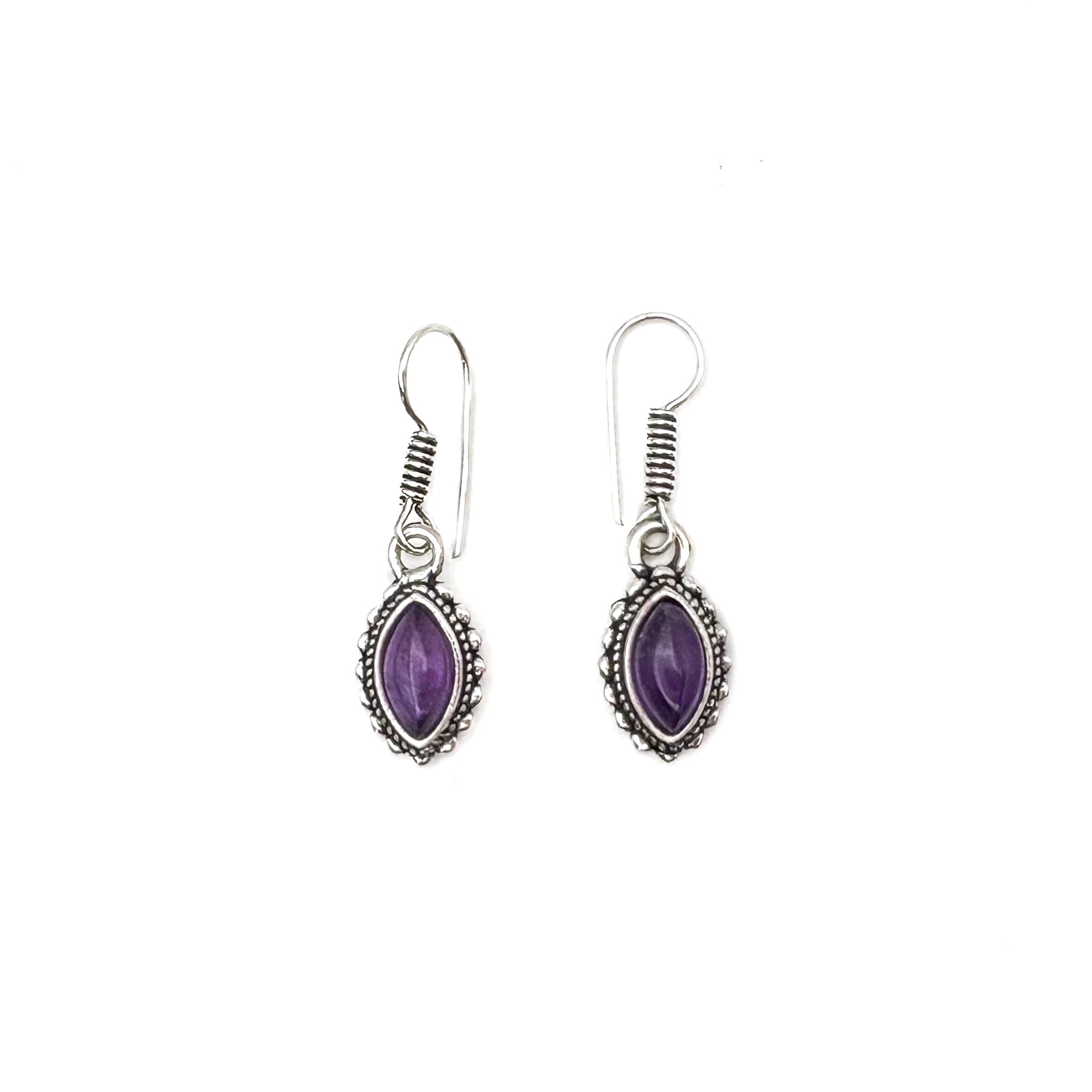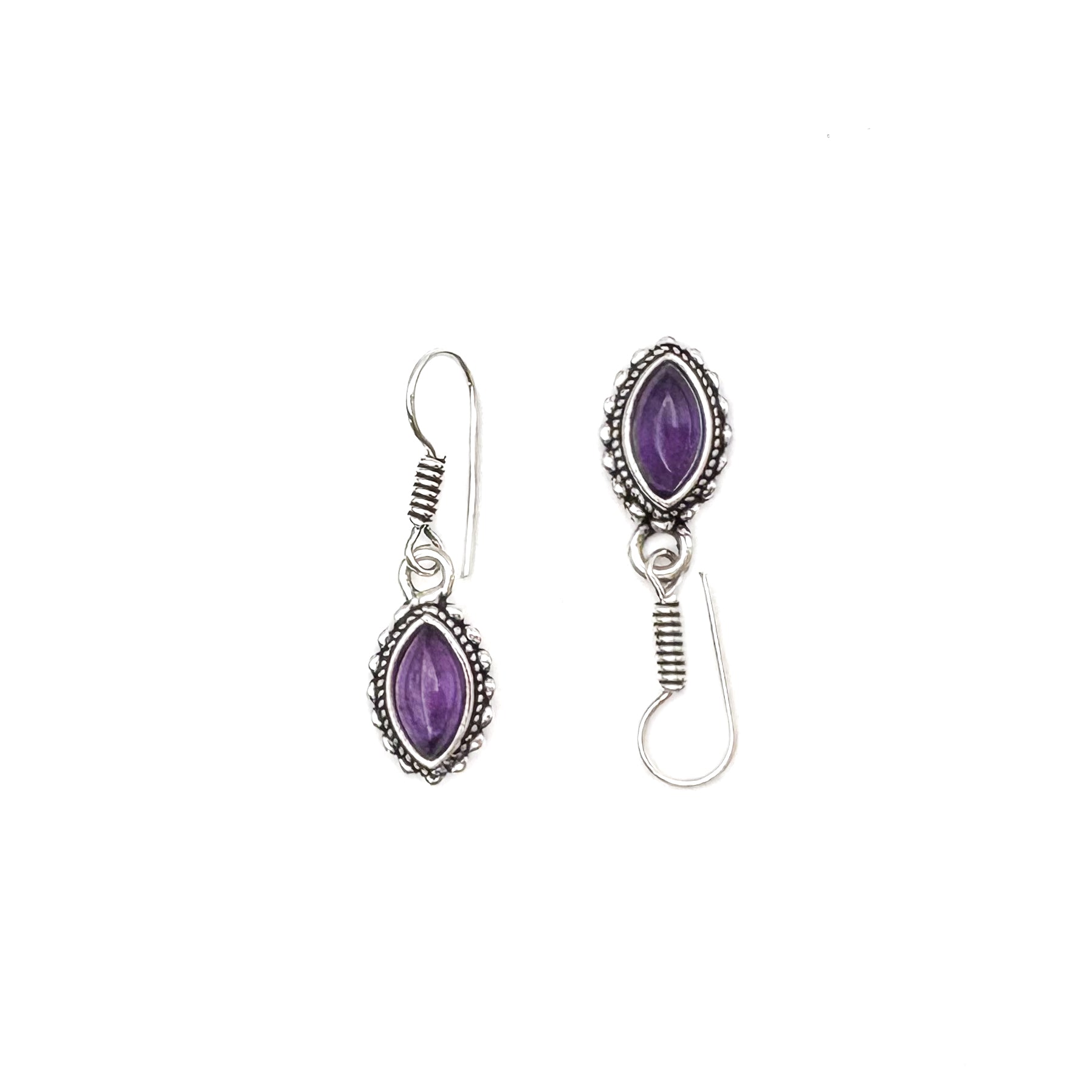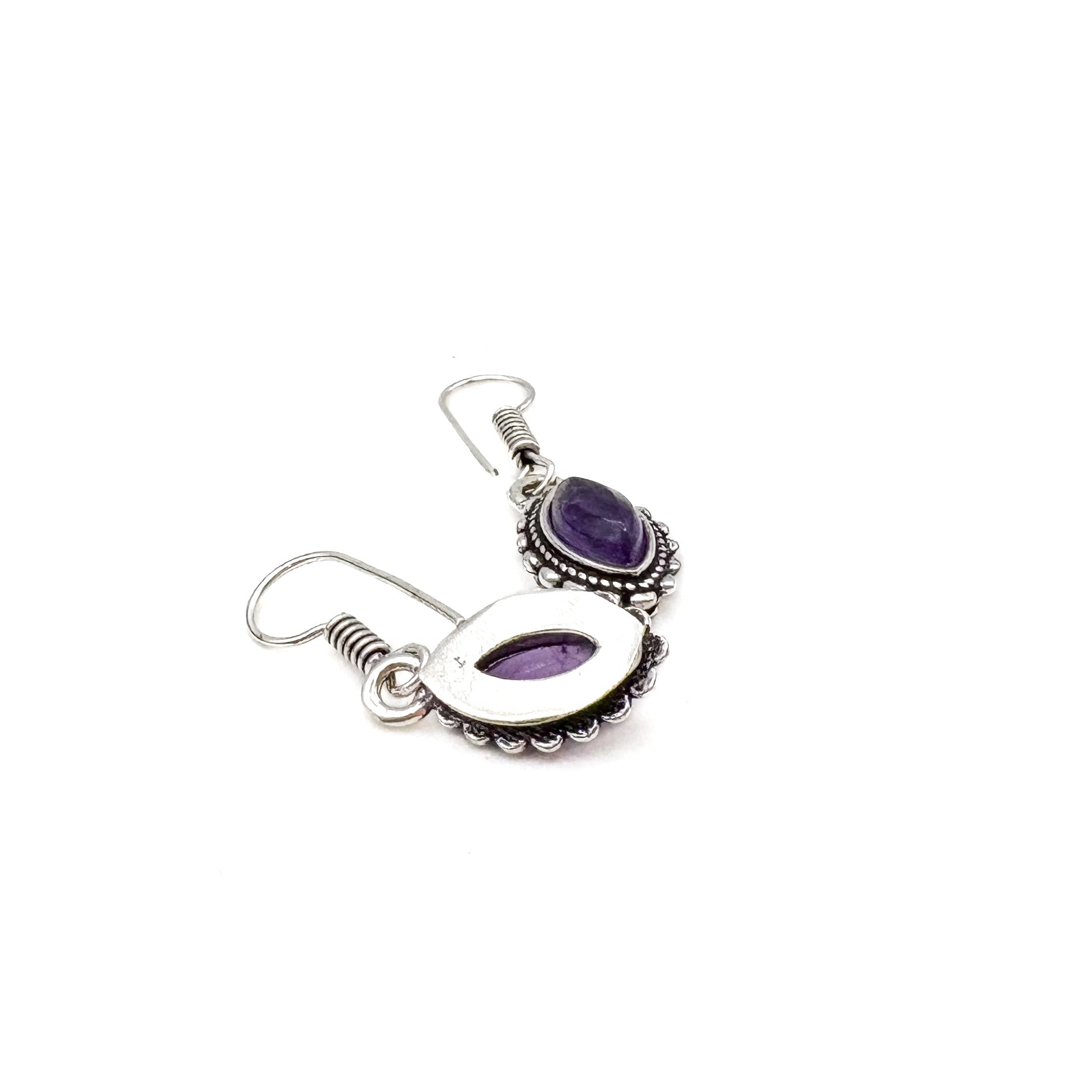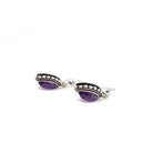 Amethyst Dotted Leaf White Brass Earrings