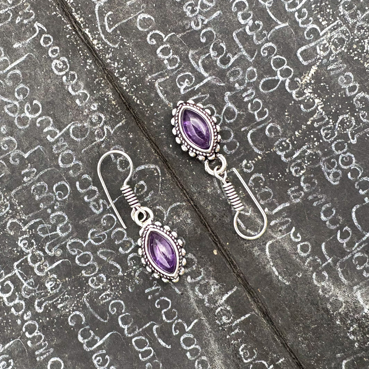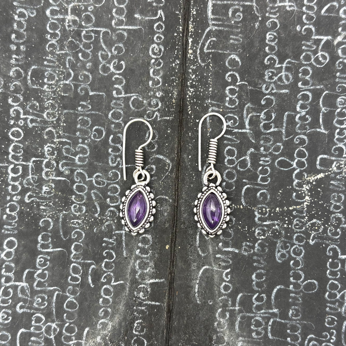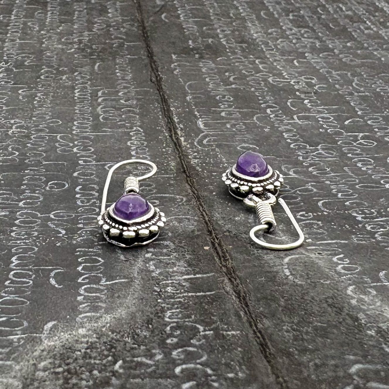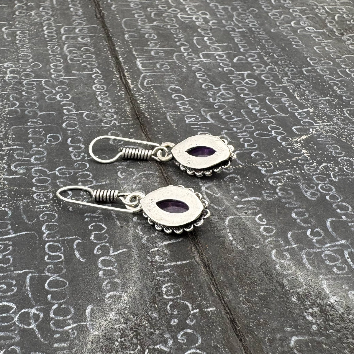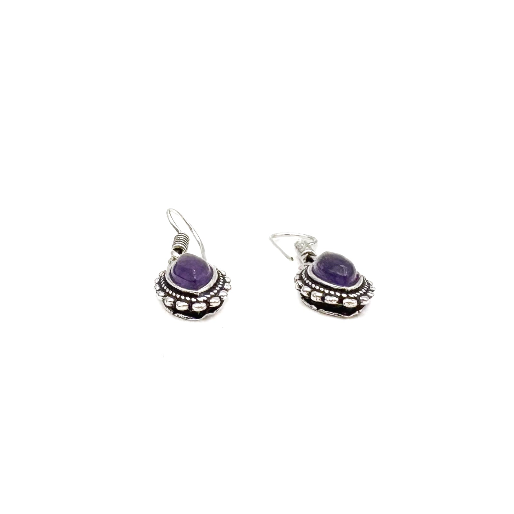 Amethyst Dotted Leaf White Brass Earrings