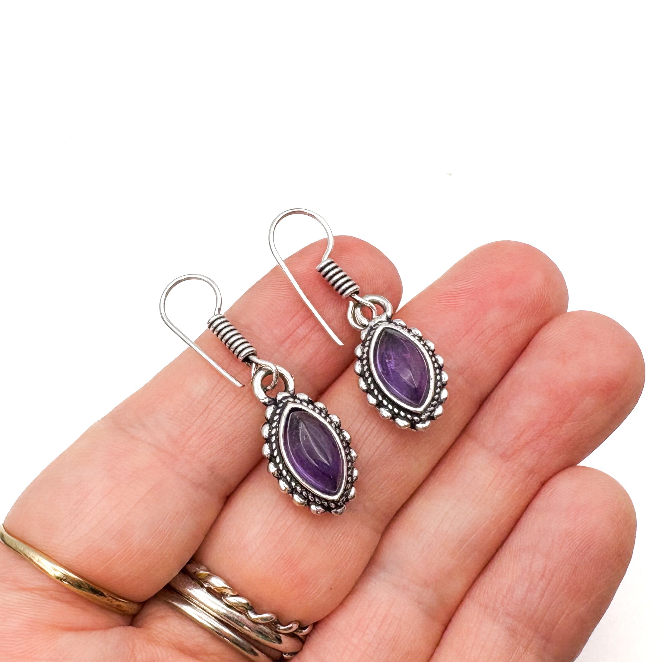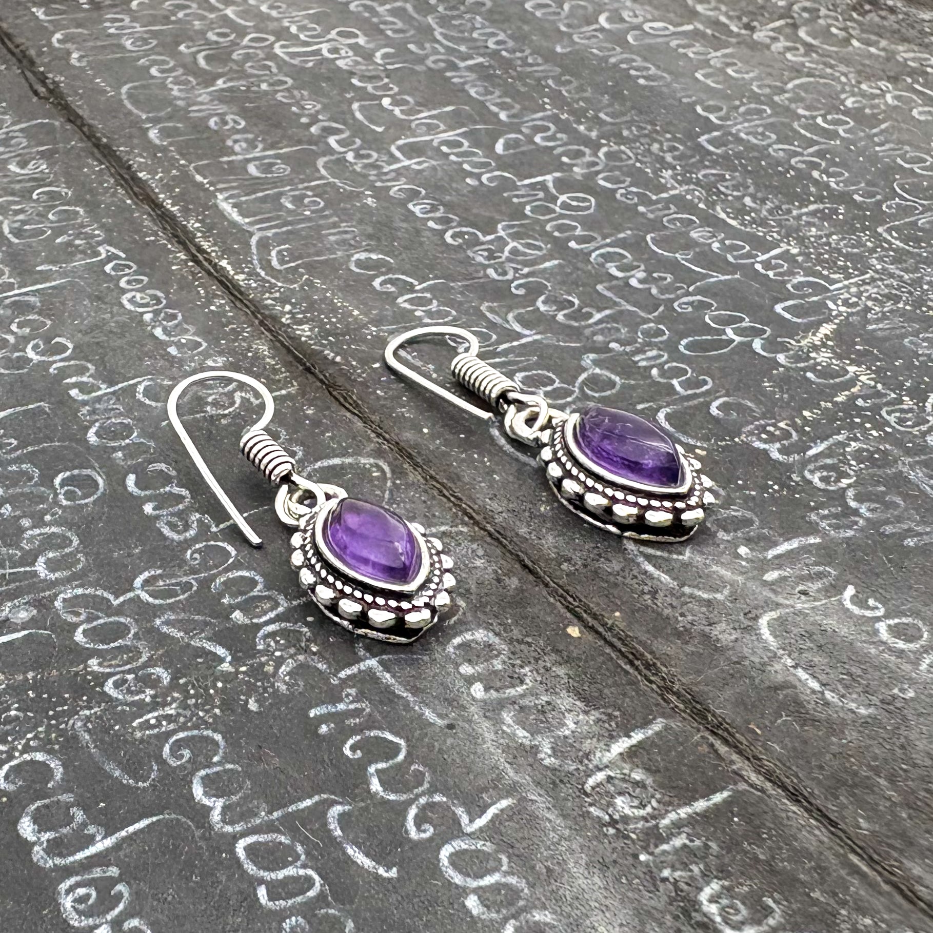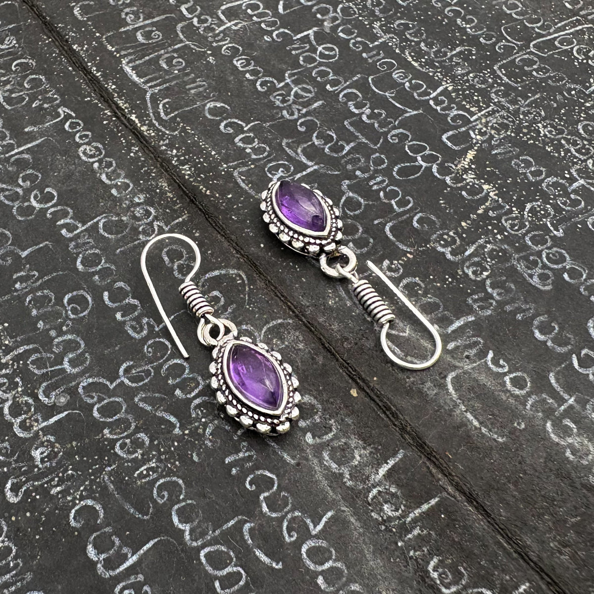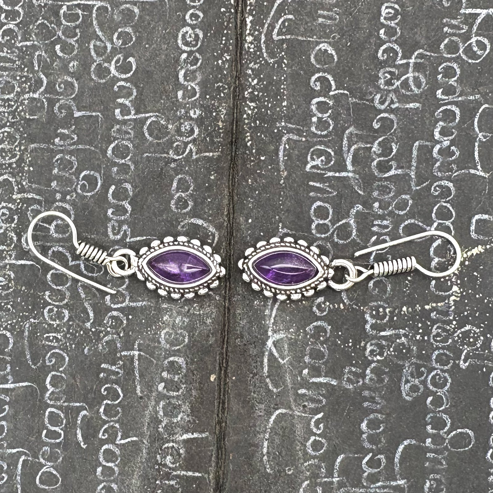 Amethyst Dotted Leaf White Brass Earrings