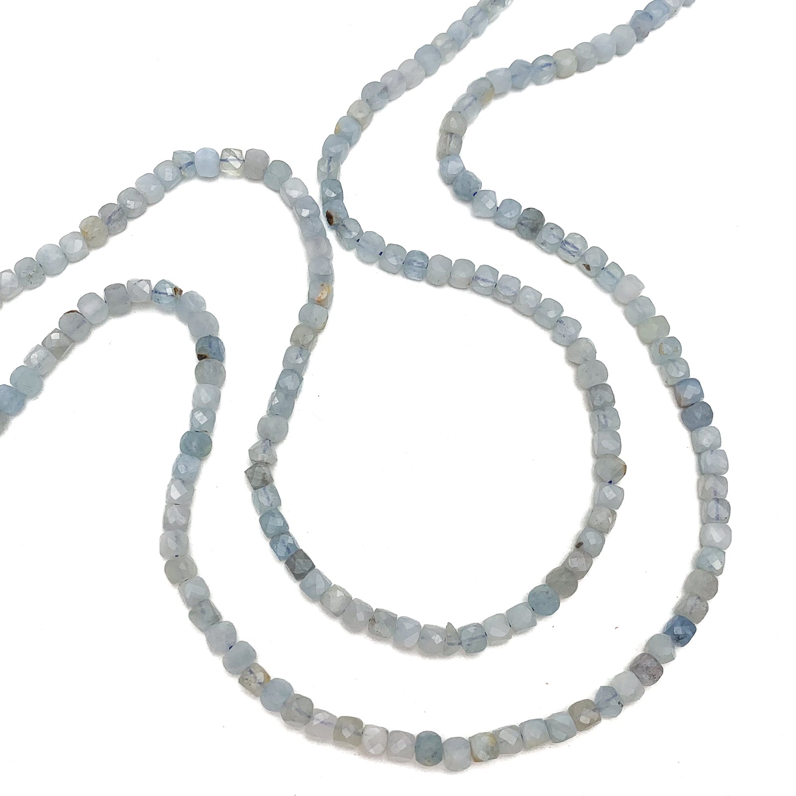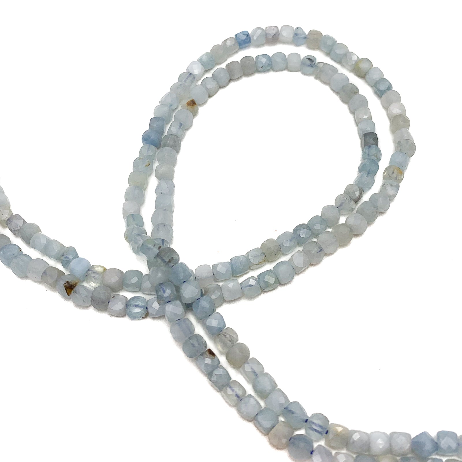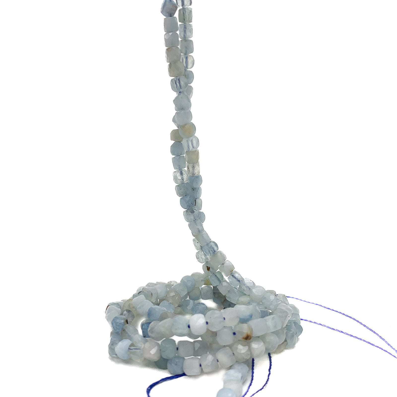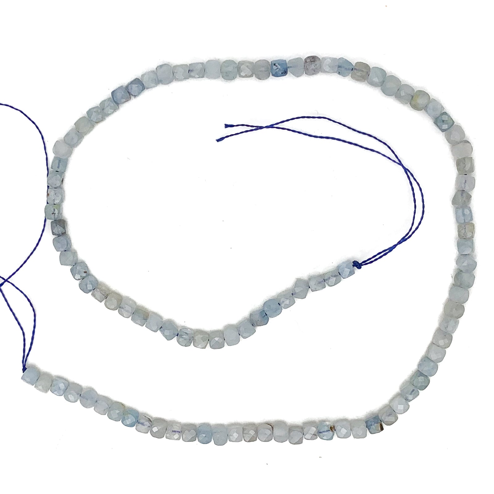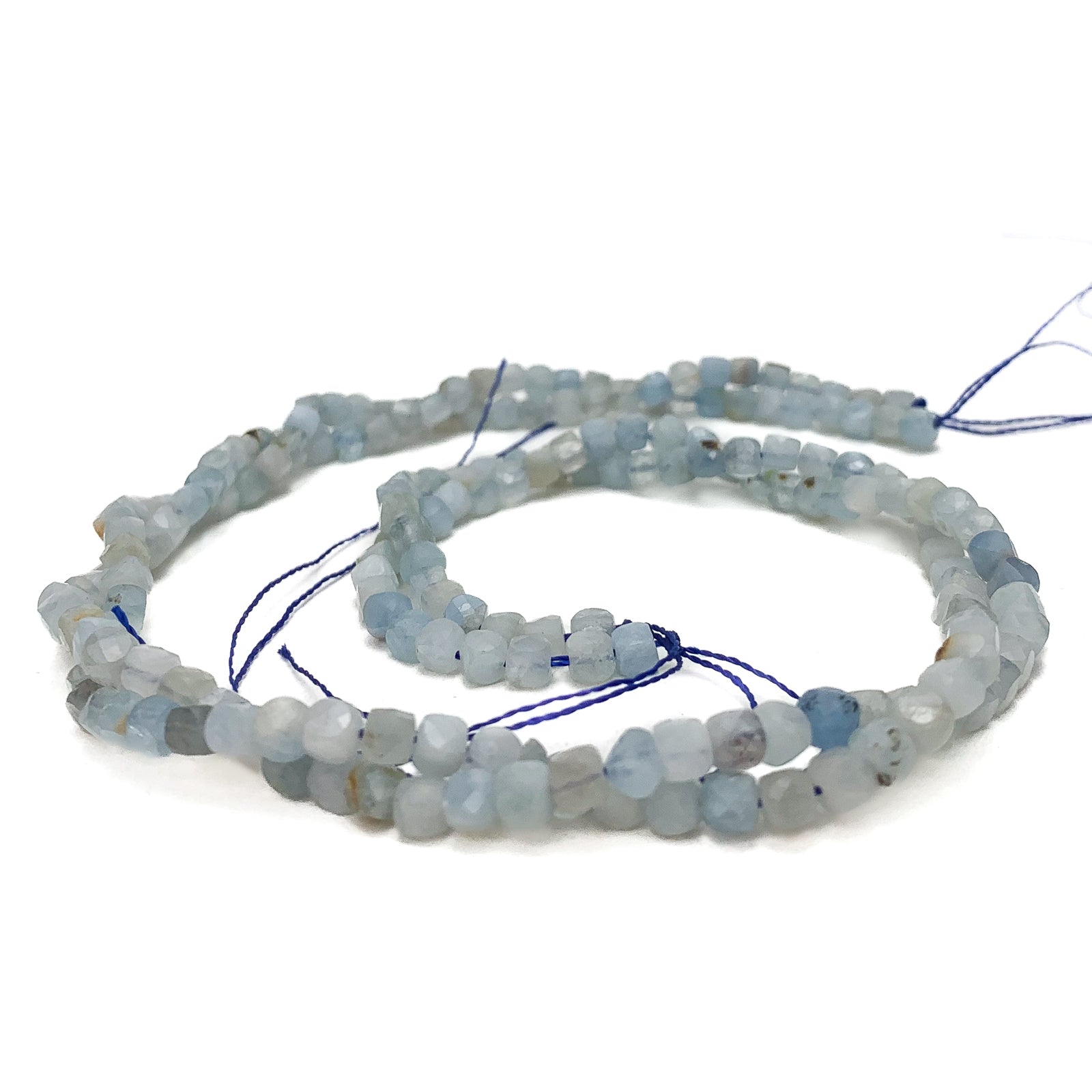 Aquamarine 4mm Faceted Cubes Bead Strand