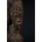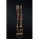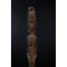 - A Baule couple sculpture, Ivory Coast, the statues standing on a rectangular base, muscular legs ending in prominent buttocks, wearing a loincloth encircling the hips, both have a slender torso with a pointed navel, the male has an emphasized pectoral muscles and nipples, the female hanging, tapering breasts, both have narrow rounded shoulders leading to fragile arms carved close to the body, the hands touching the abdomen, the toros is decorated with scarification marks of varied geometric patterns, the very long cylindrical neck supporting an elongated head, the male has an elongated goatee, both have a protruding mouth, a slender flat nose with a broad tip, large almond-shaped eyes with painted blackened pupils, the eyelids half closed, the striated high arched eyebrows connected...both sculptures capped by a striated crested coiffure.