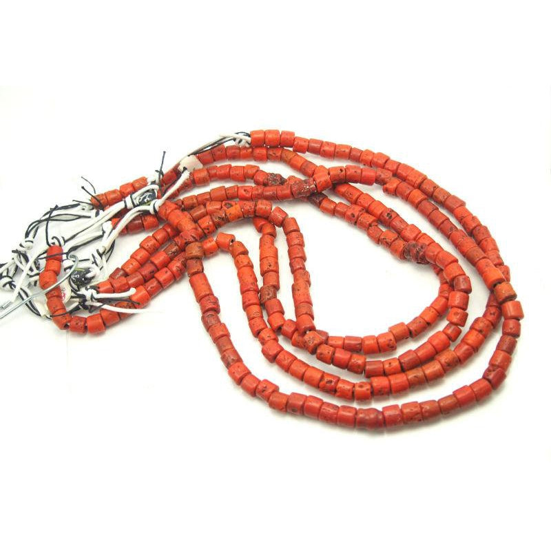 Naga "Coral" Heirloom Glass Long Strand Necklace from India ca 1950