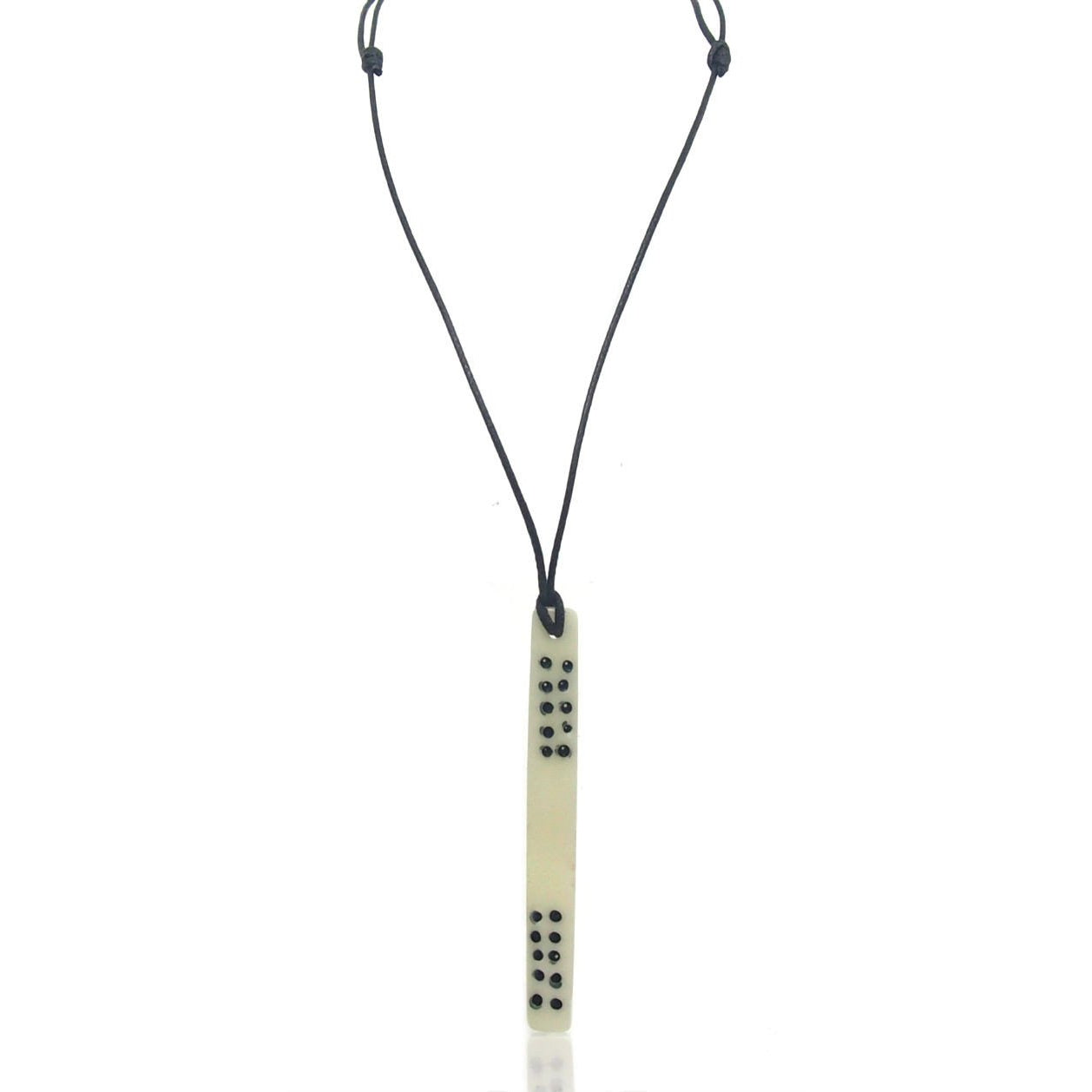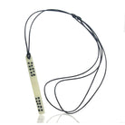 • Strung on black cotton cord