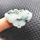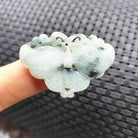 Certified Floral Green Natural Type A Jade Jadeite Carved Butterfly Pendant