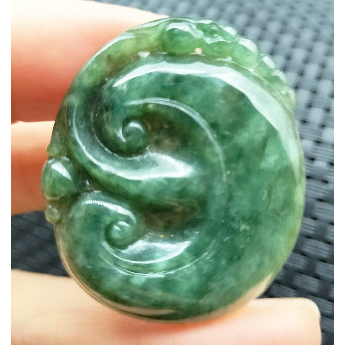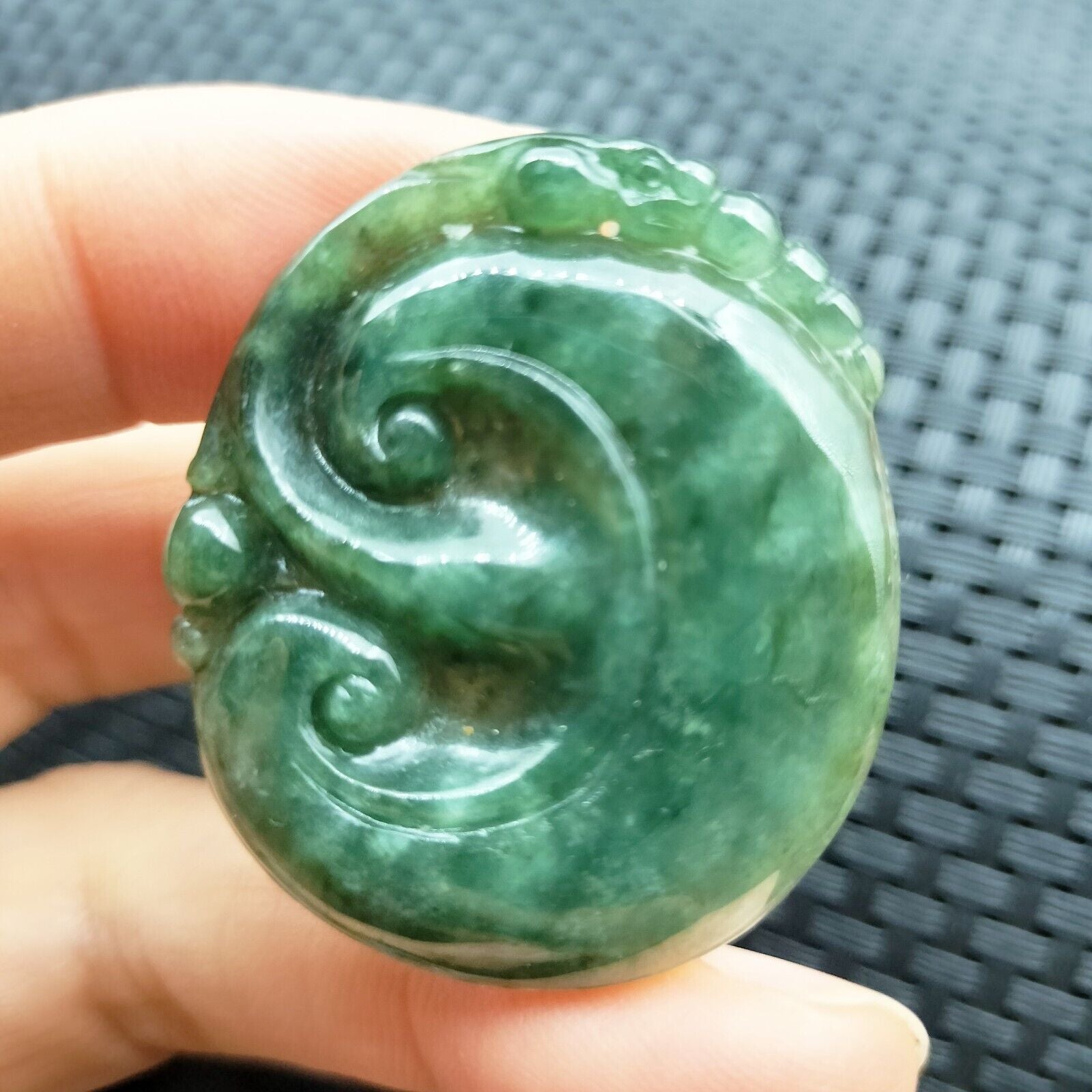 Certified Oily Green Natural Type A Jadeite Carved Dragon Pi Xiu Ruyi Pendant