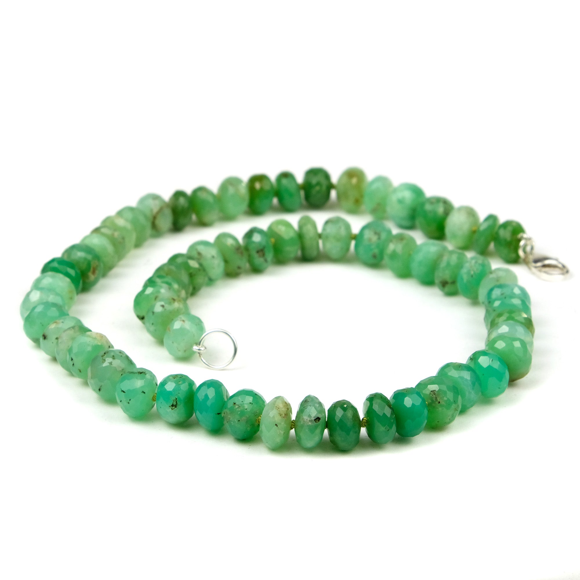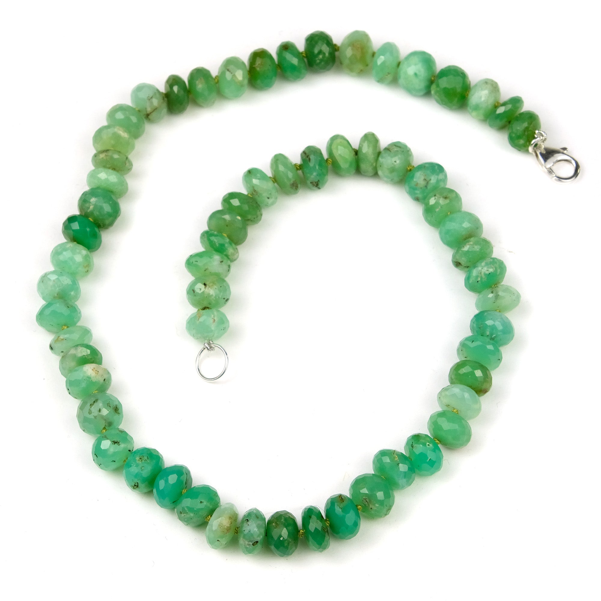 Chrysoprase Knotted Necklace with Sterling Silver Trigger Clasp
