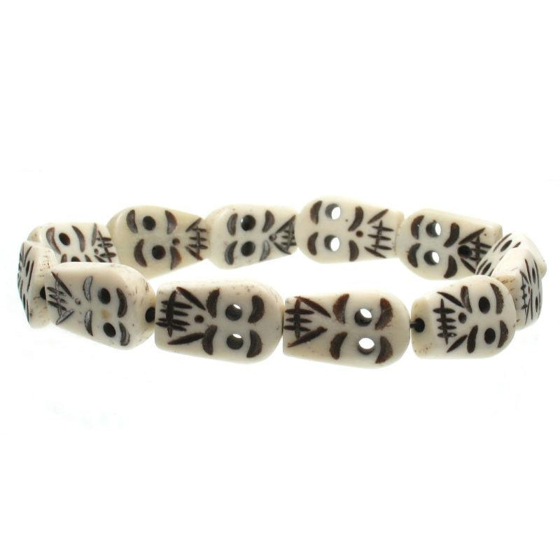 Cow Bone Hand Carved Skull Bead Stretch Bracelet