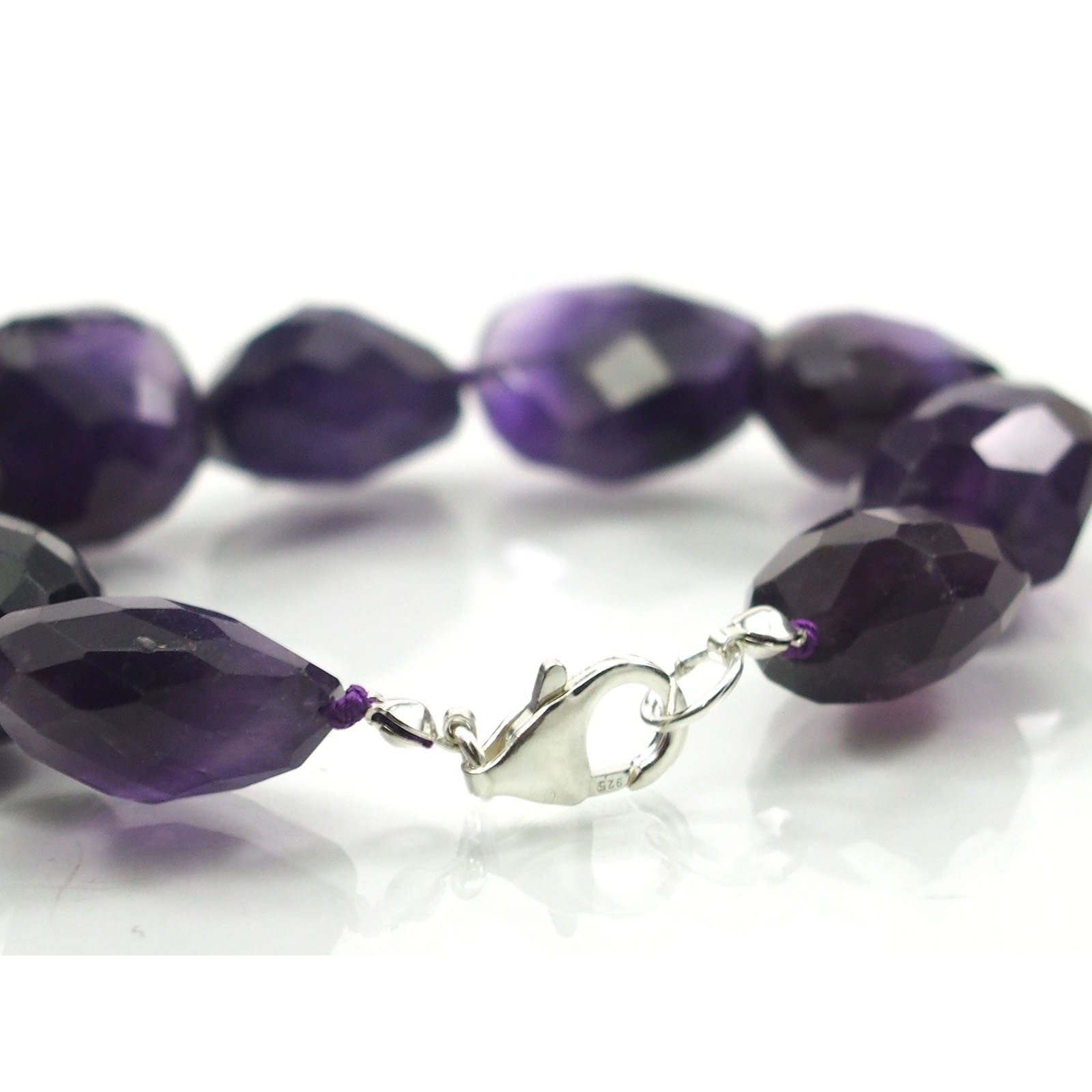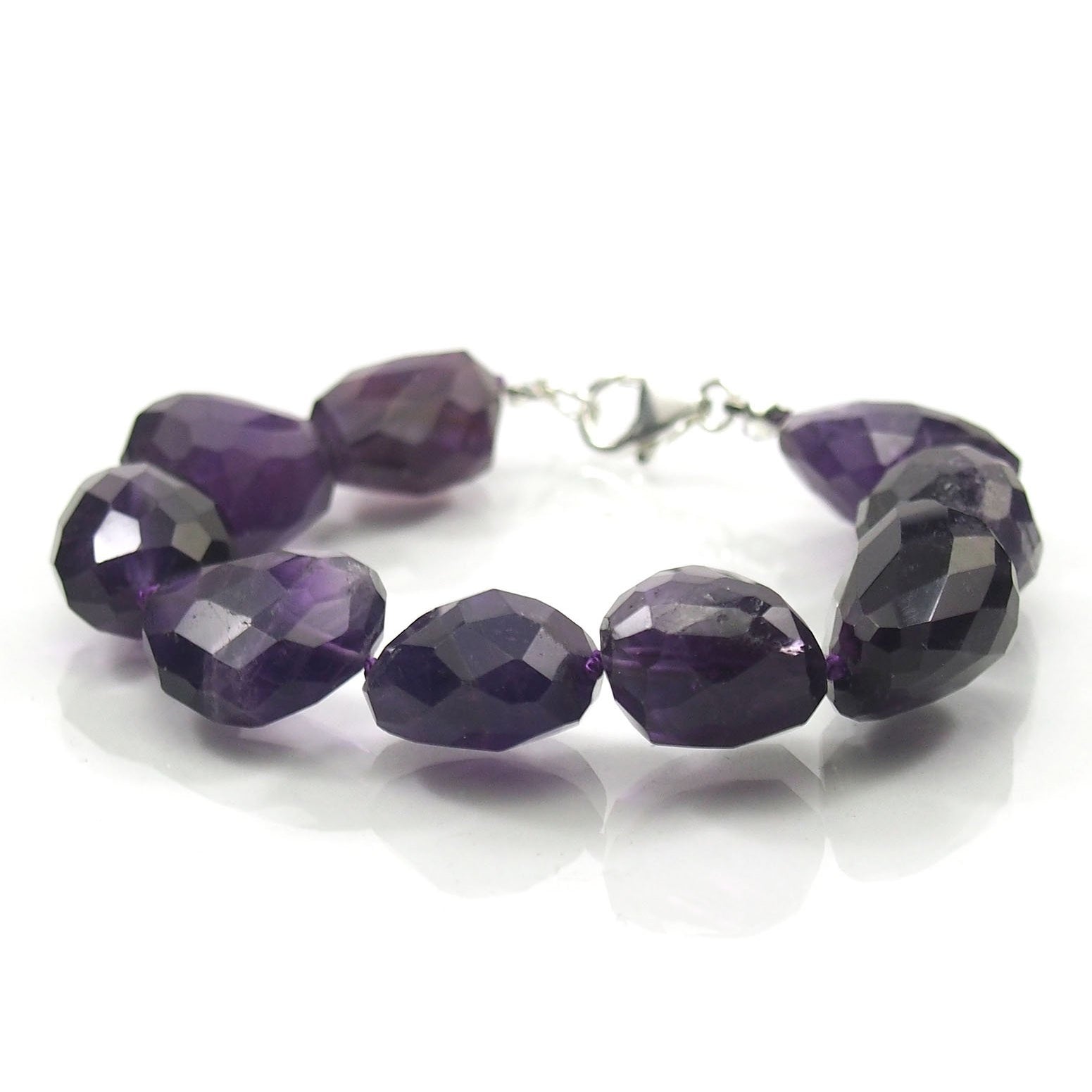 Faceted Amethyst Nugget Bracelet with Sterling Silver Trigger Clasp 15-17mm