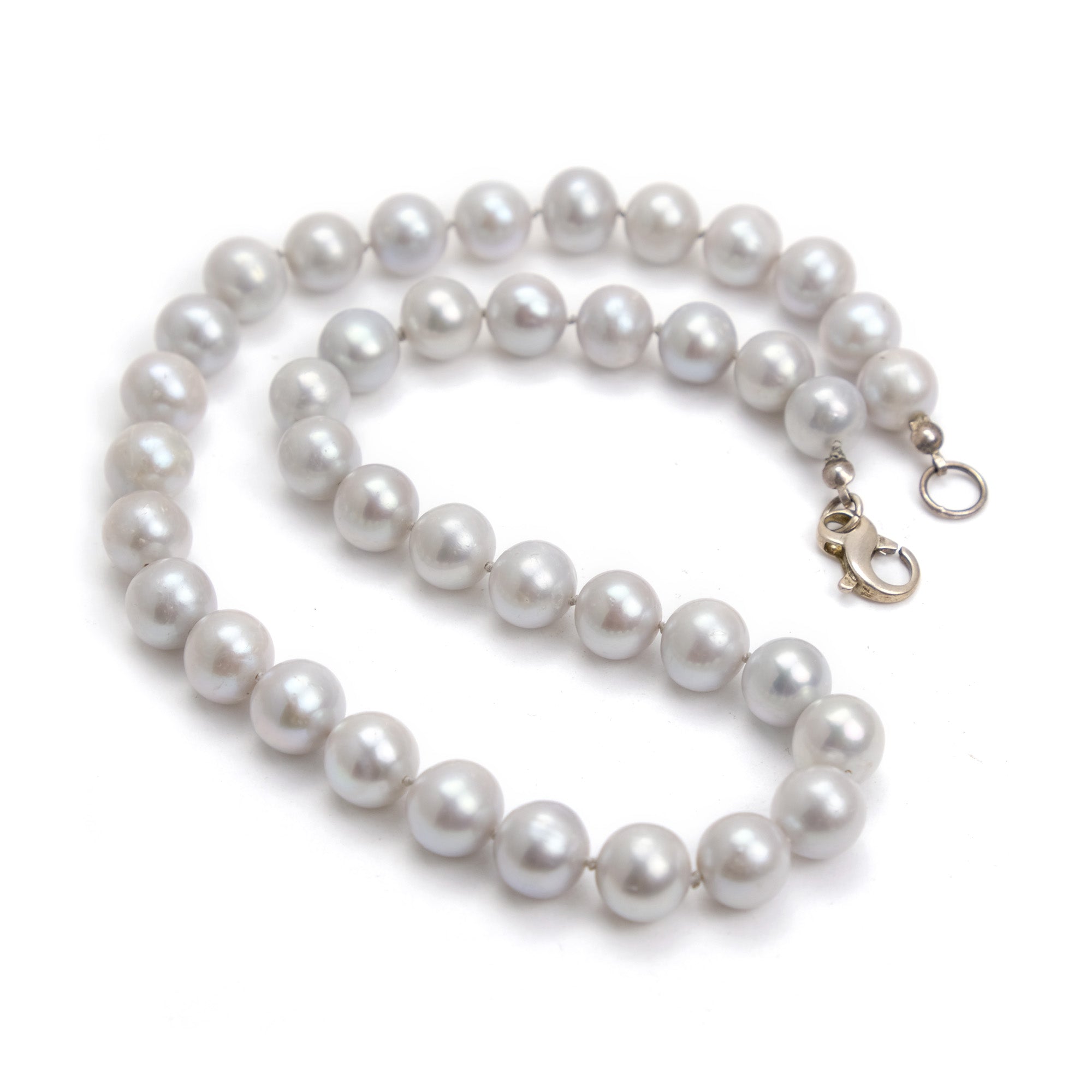 Fresh Water Pearl Knotted Necklace with Sterling Silver Fancy Lobster Clasp