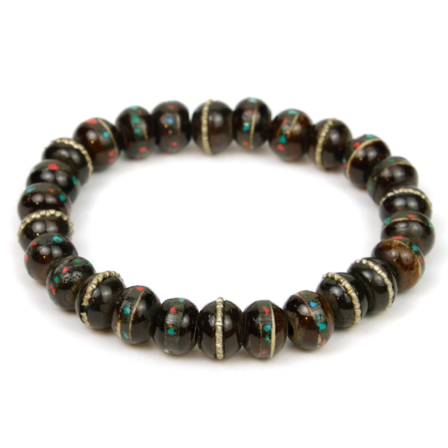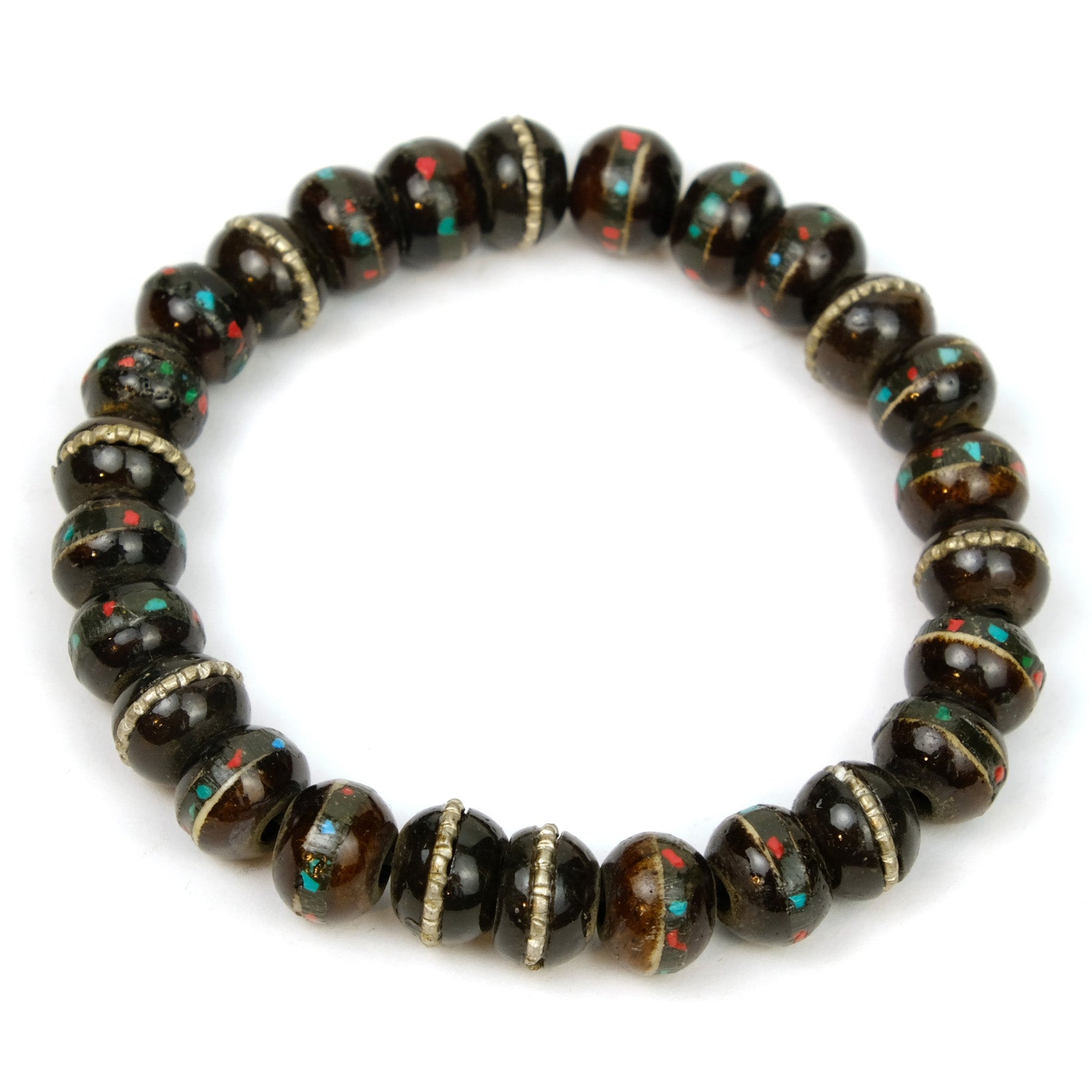 Inlaid Yak Bone Stretch Bracelet 10mm Black