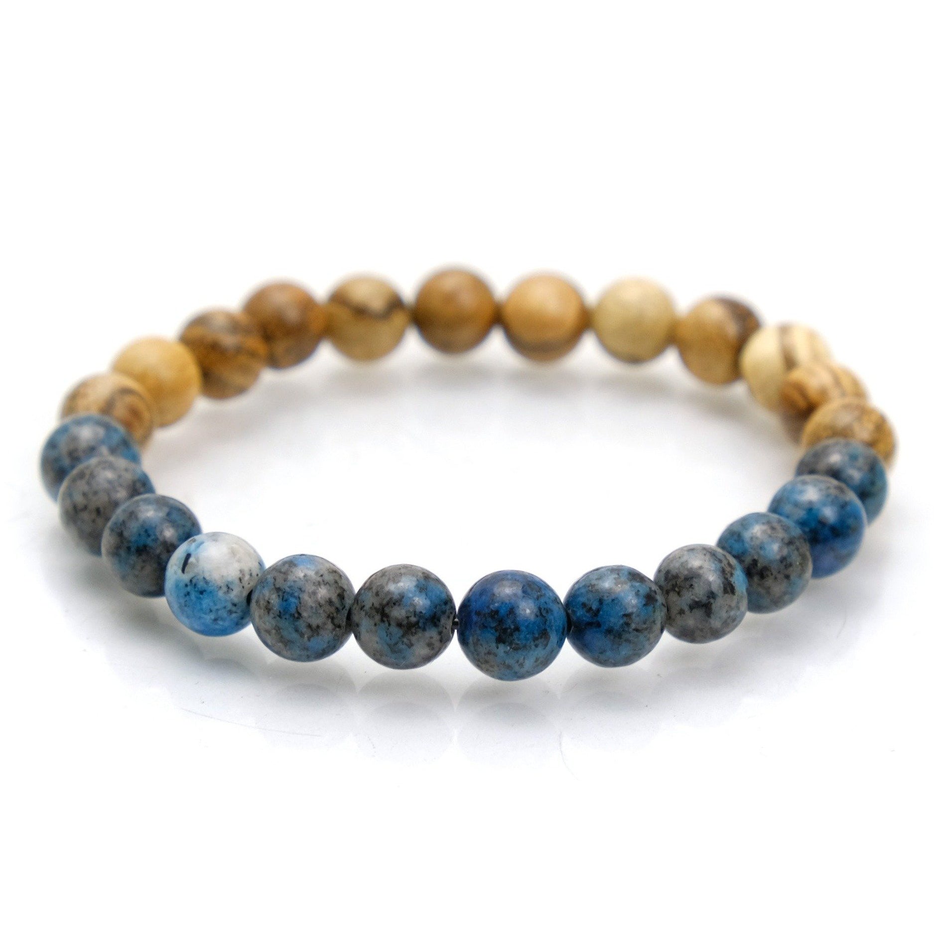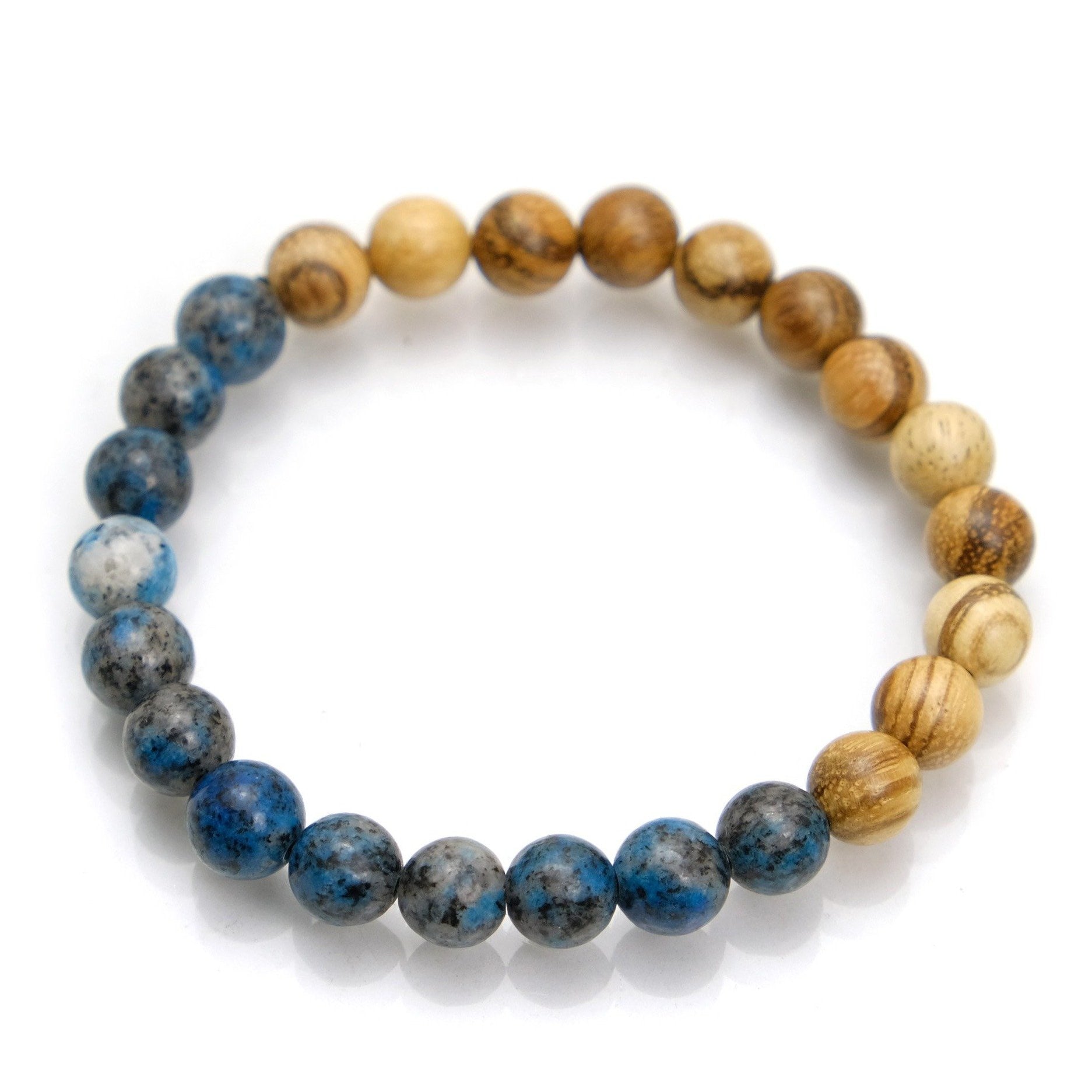 K2 Granite with Azurite + Banded Sandalwood Stretch Bracelet #1