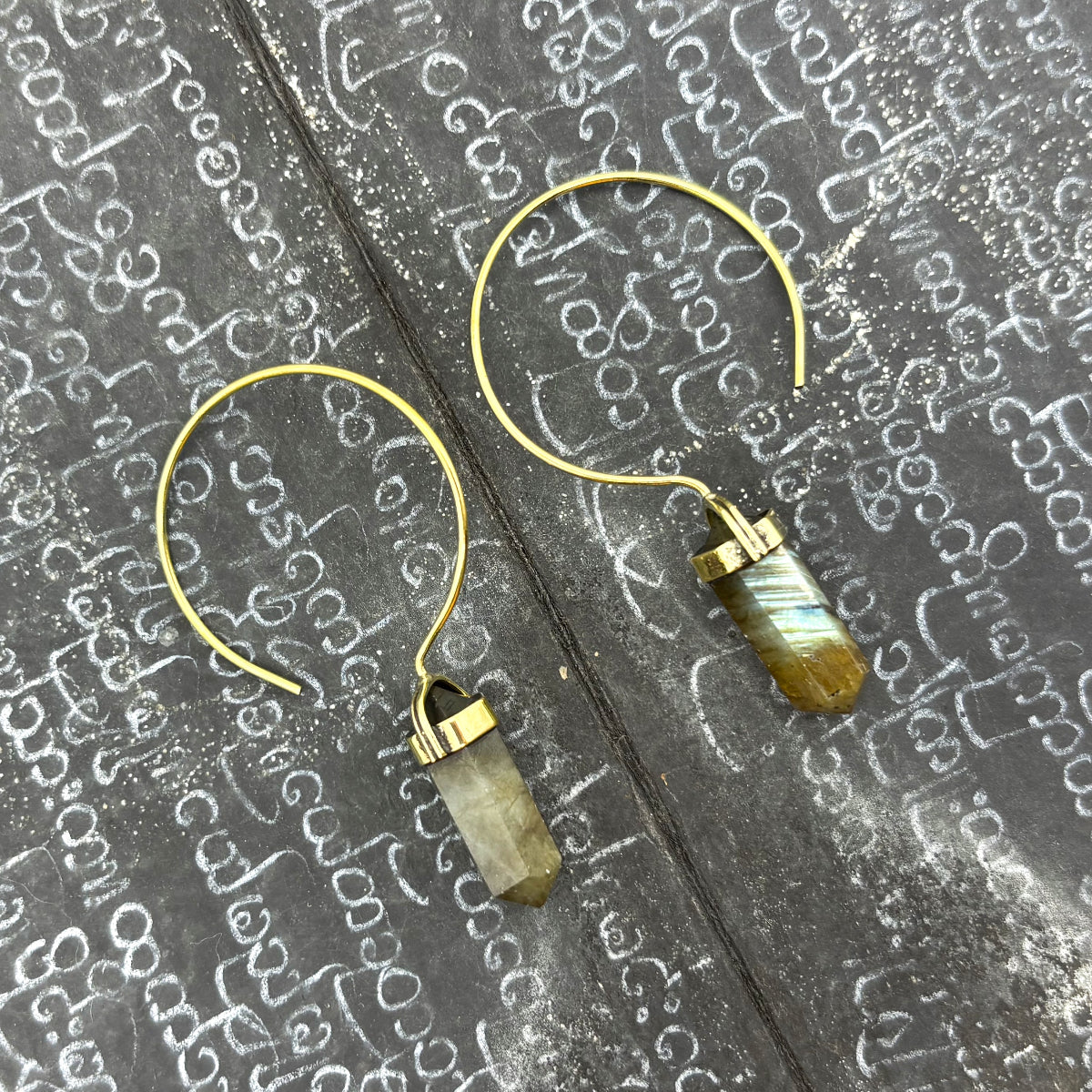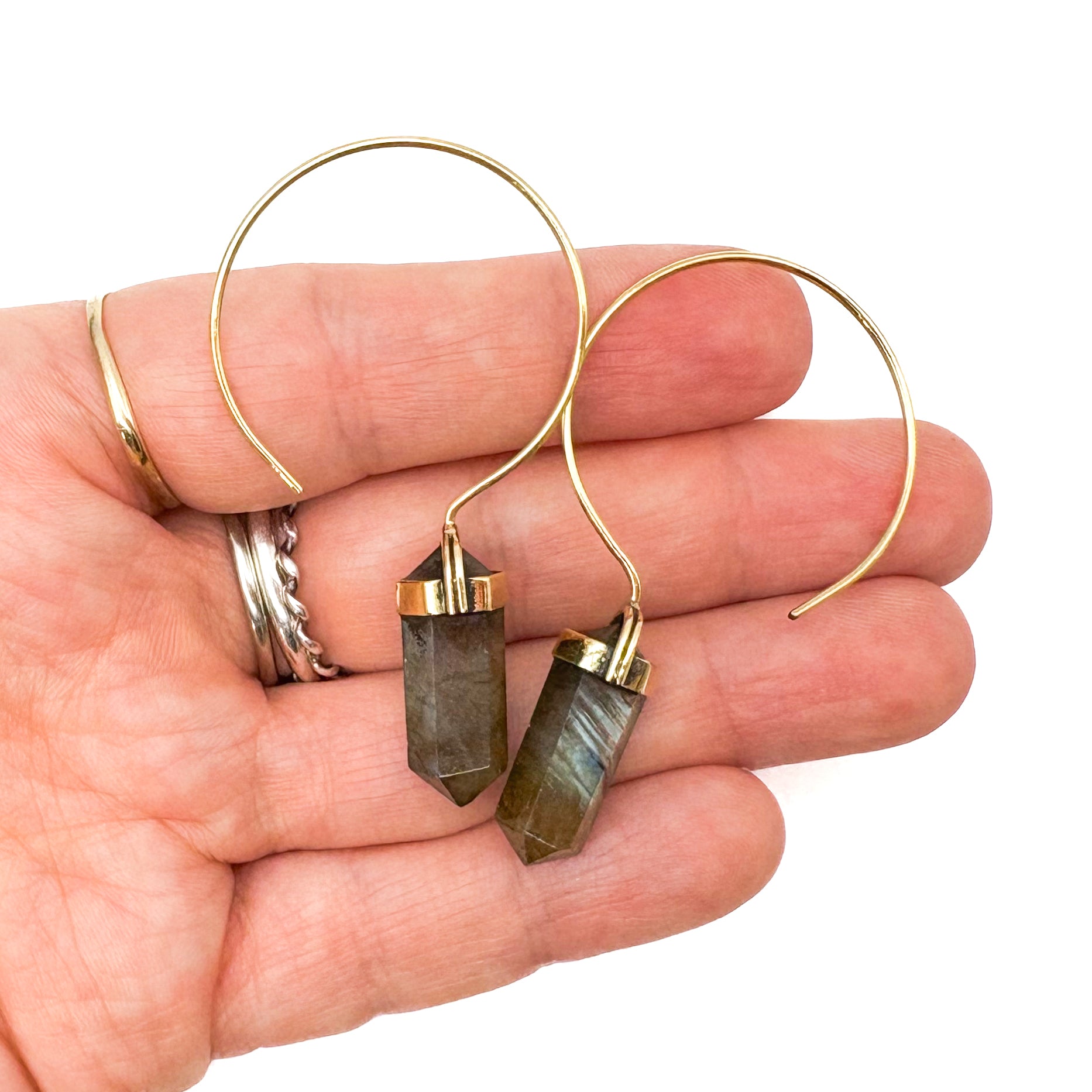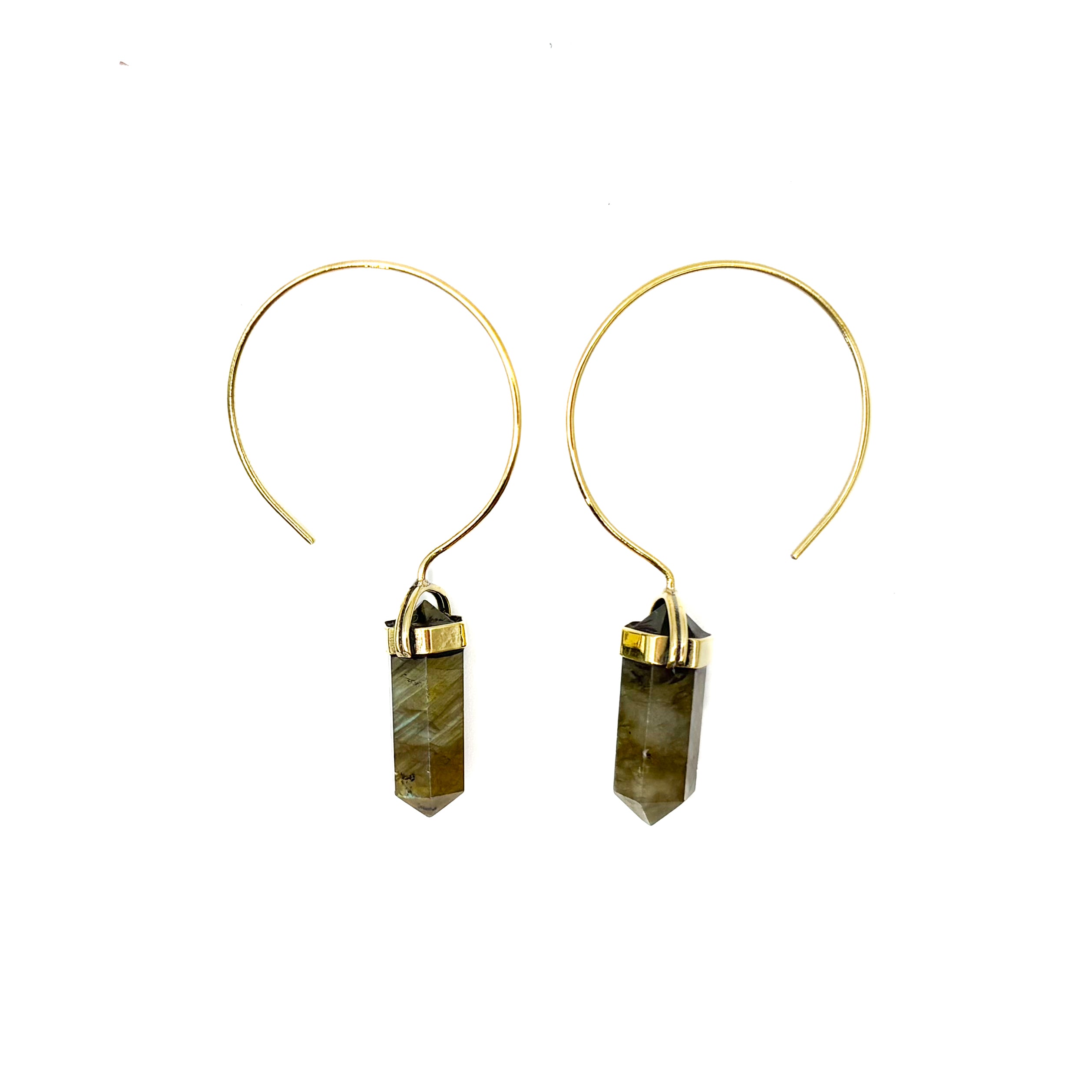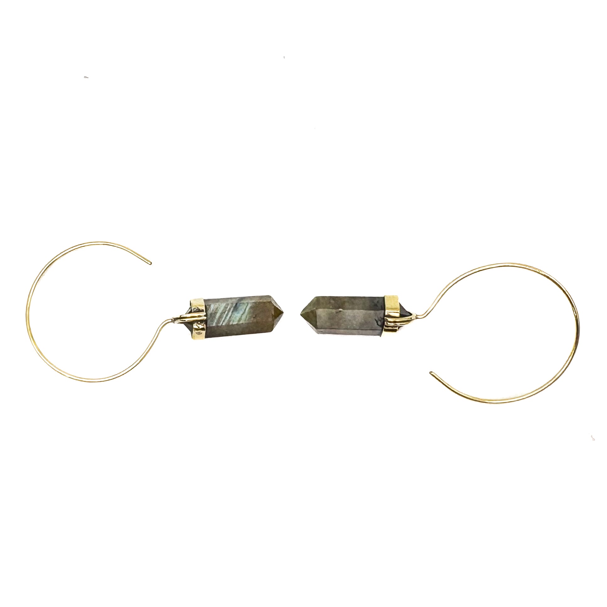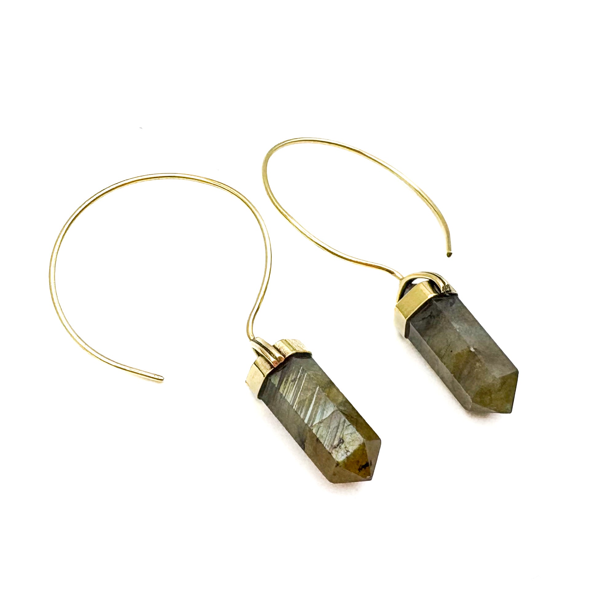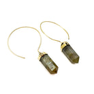 Labradorite Crystal Point Brass Hoop Earrings