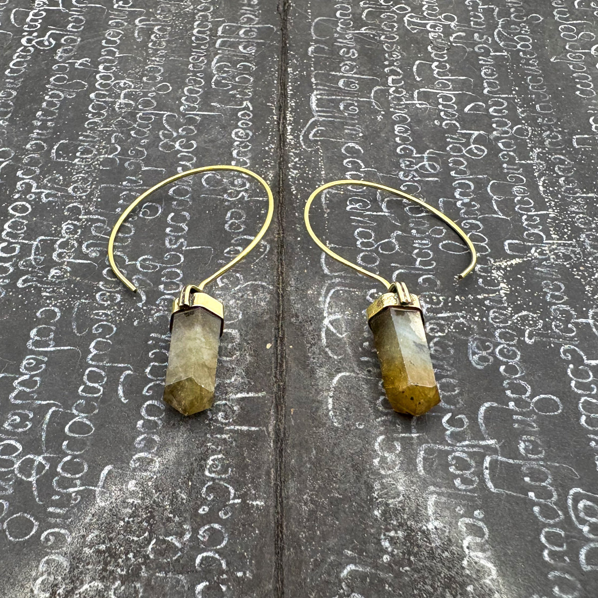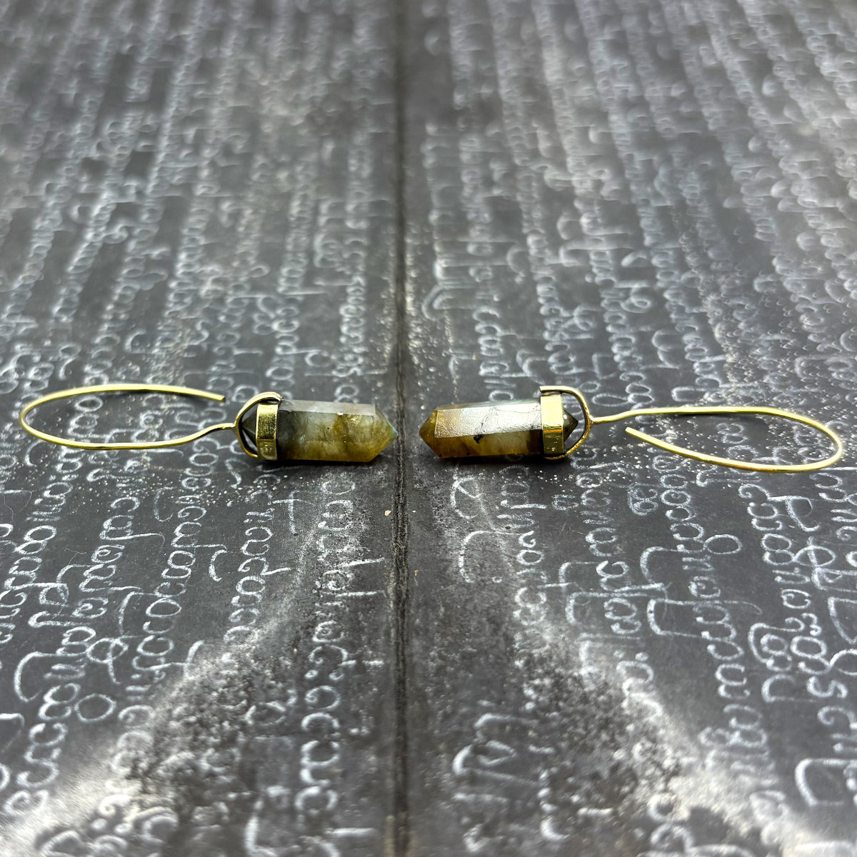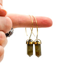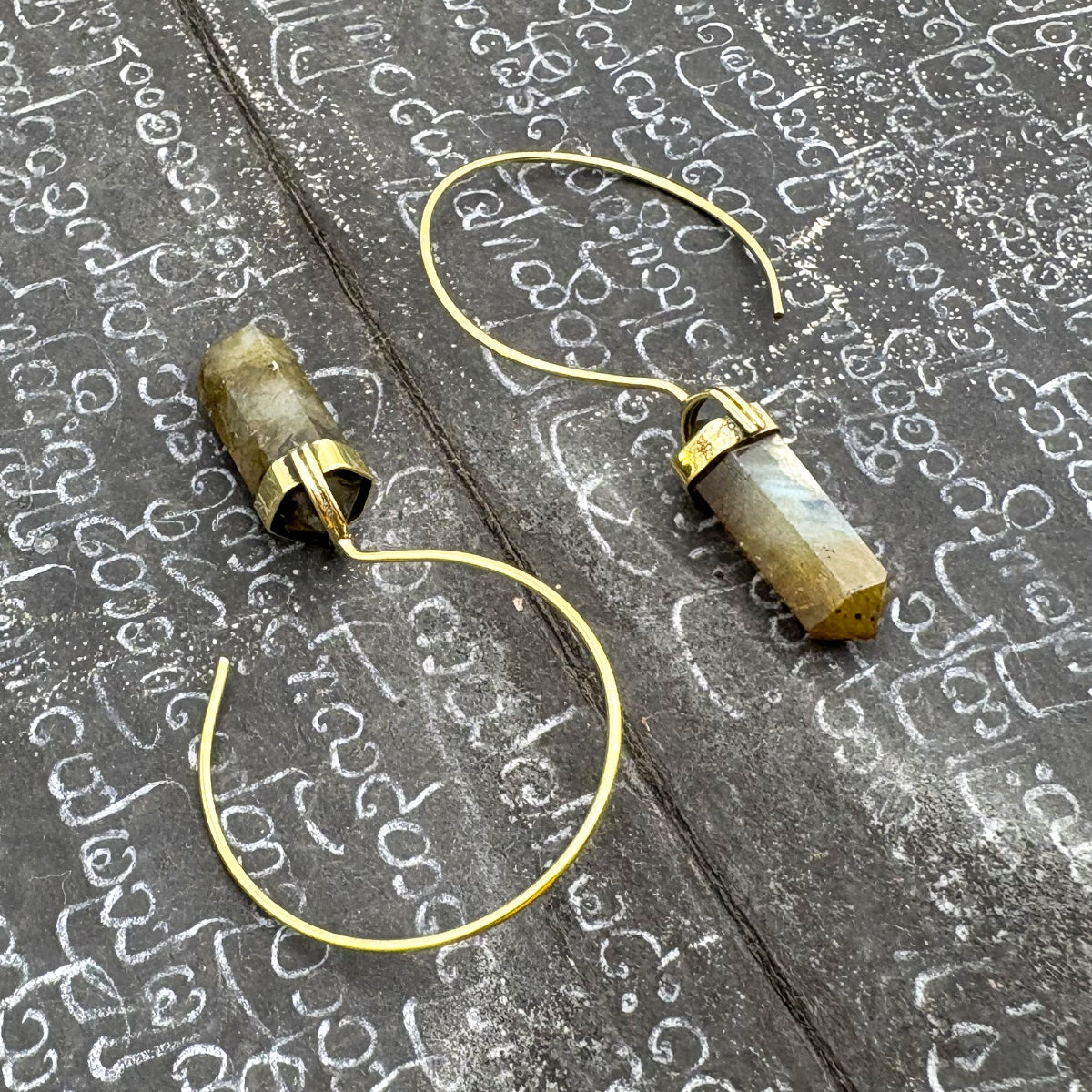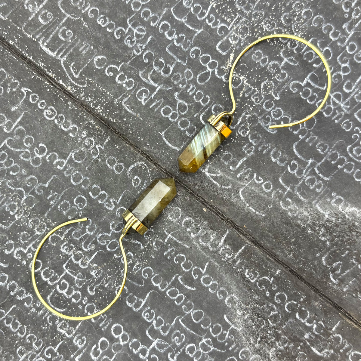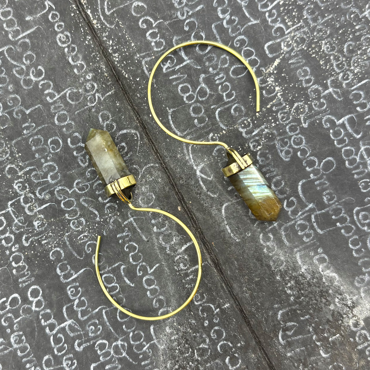 Labradorite Crystal Point Brass Hoop Earrings