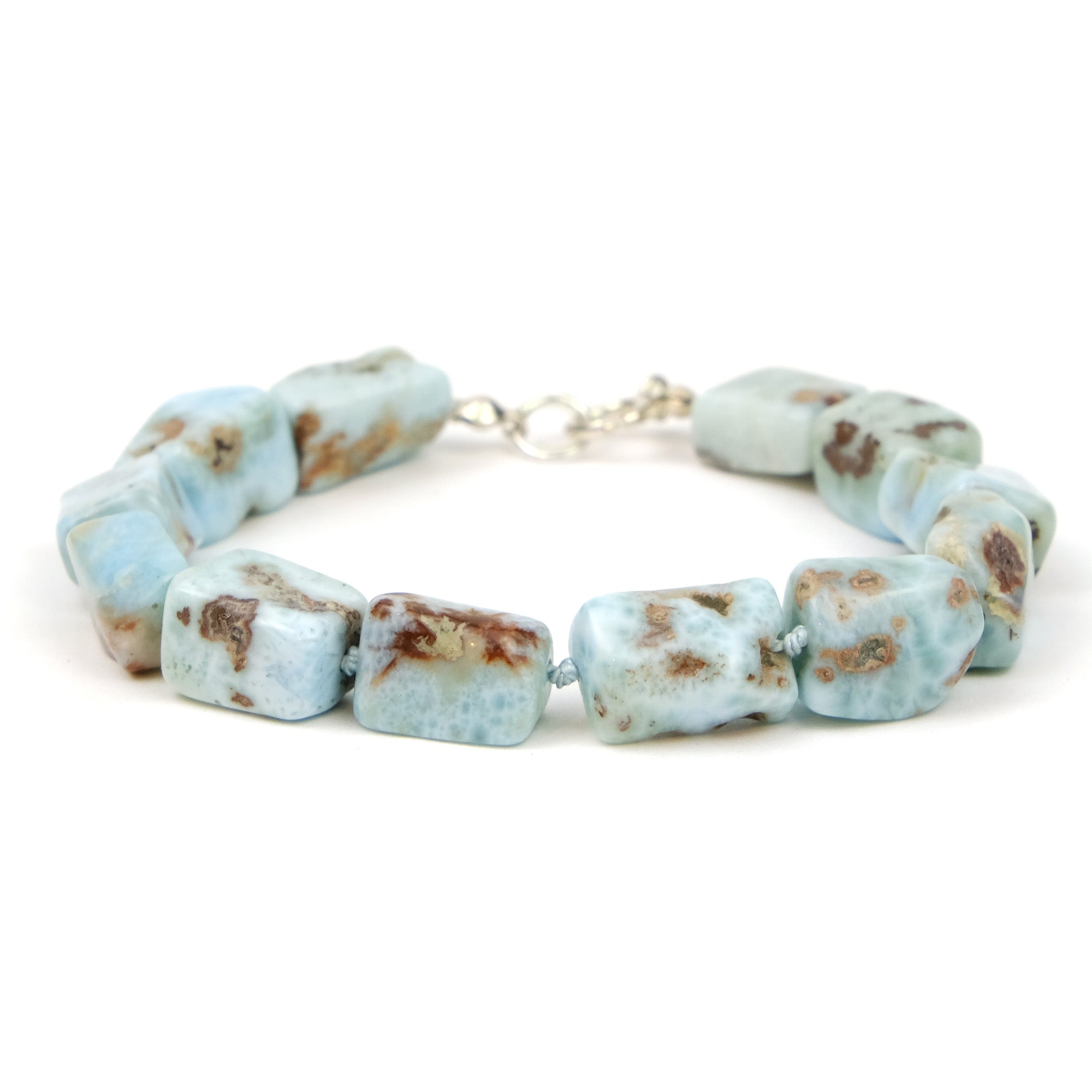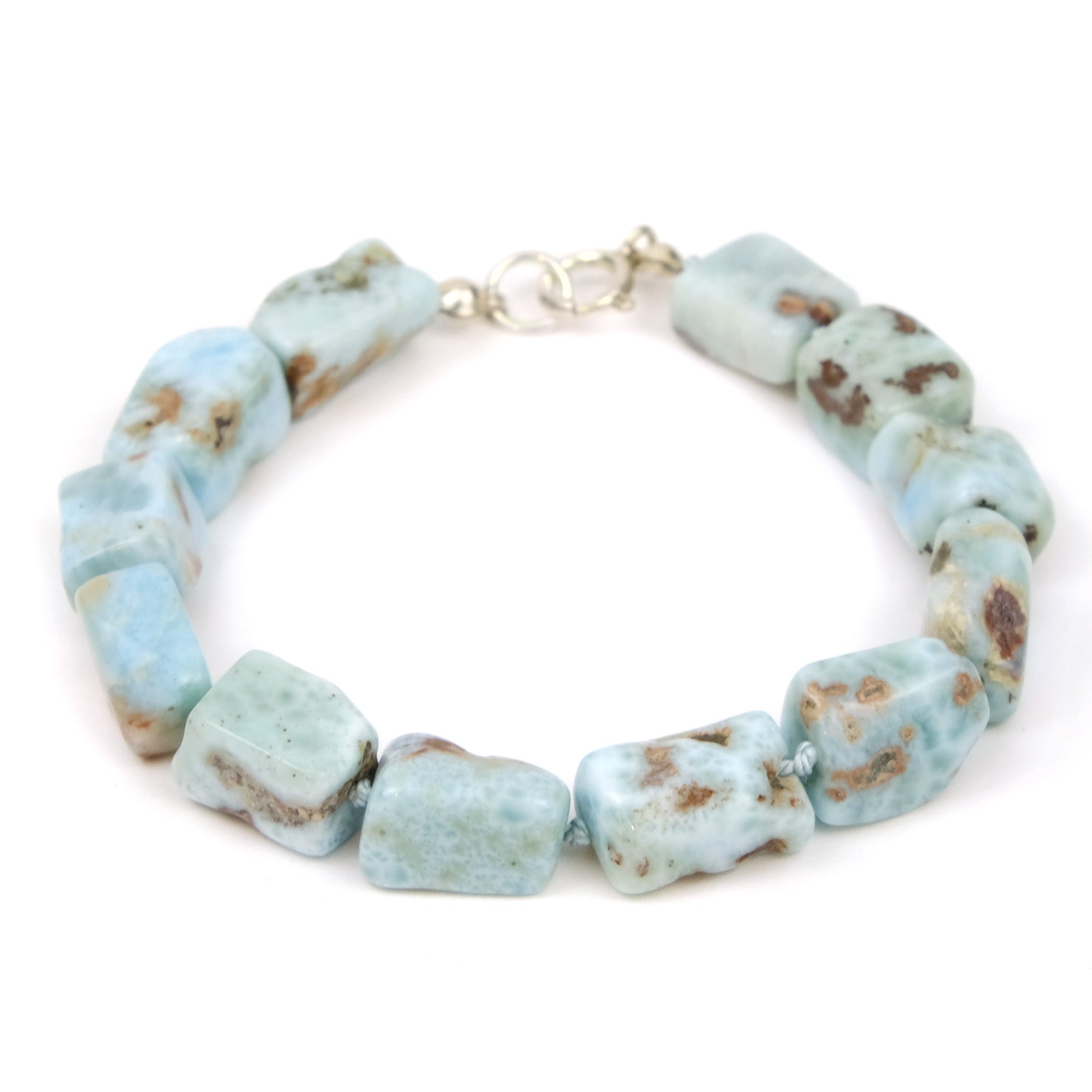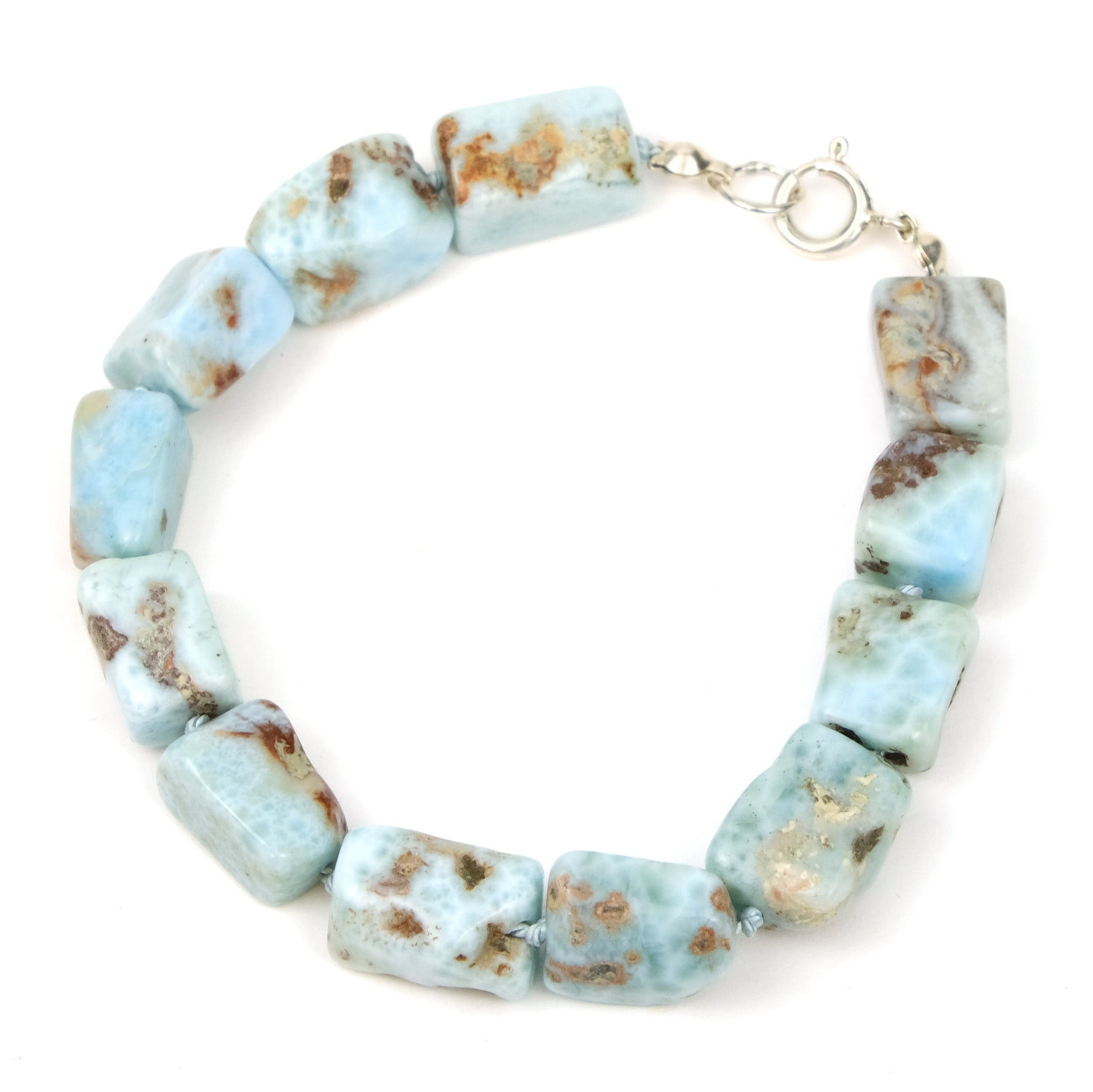 Larimar Knotted Bracelet with Sterling Silver Spring Clasp