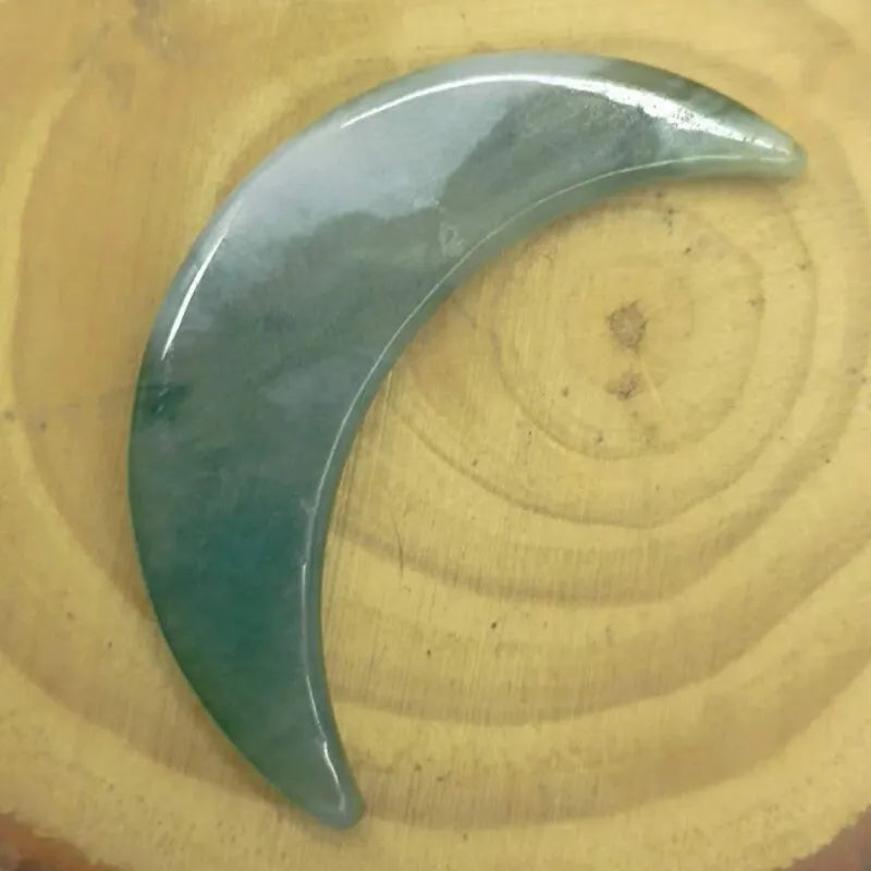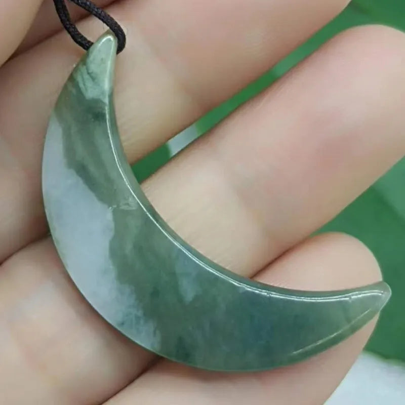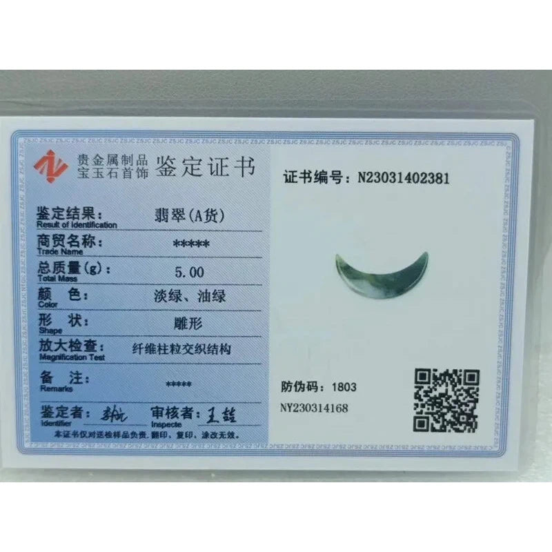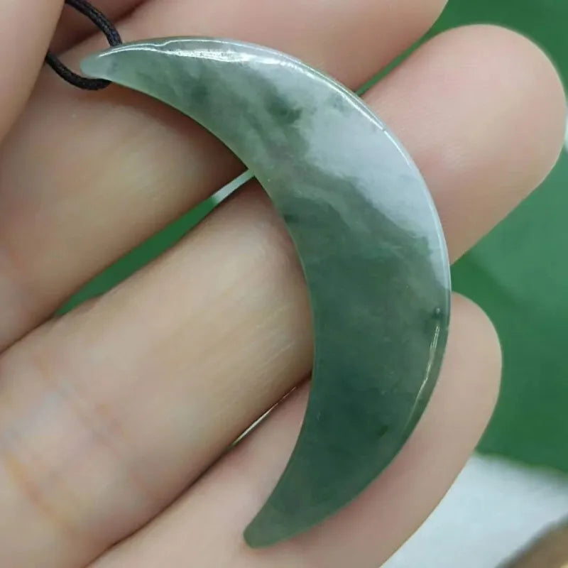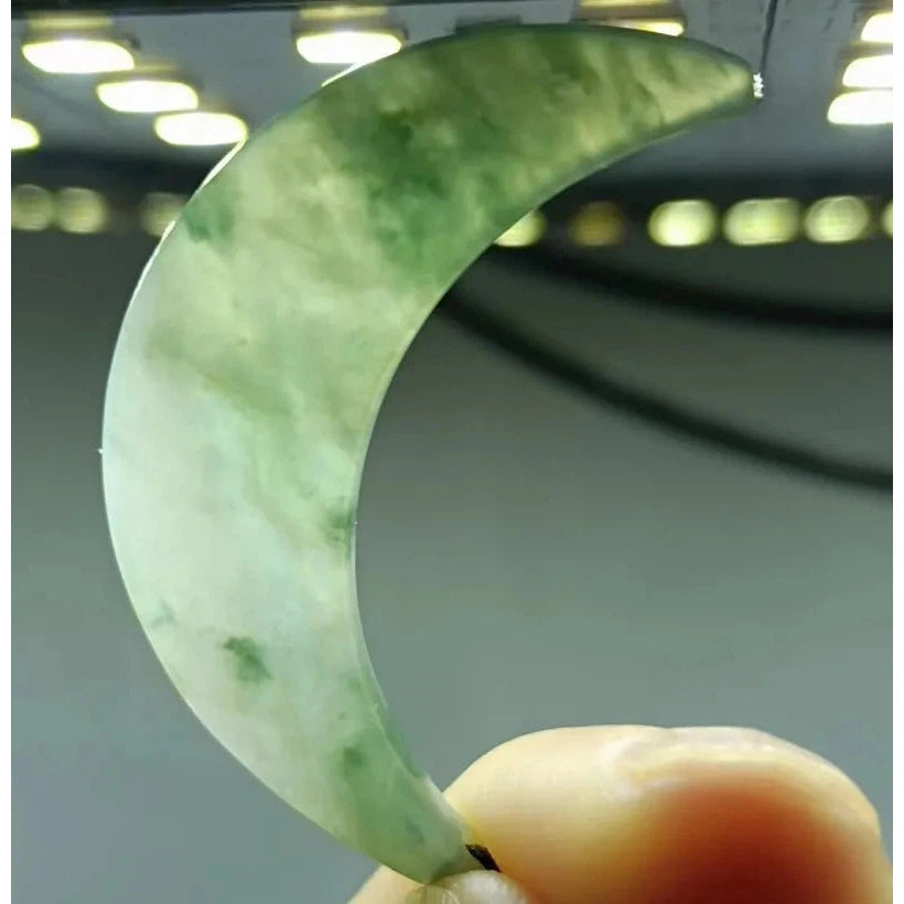 Light Green Oil Green Natural Certified A Jade Jadeite Chinoiserie Crescent Moon Pendant