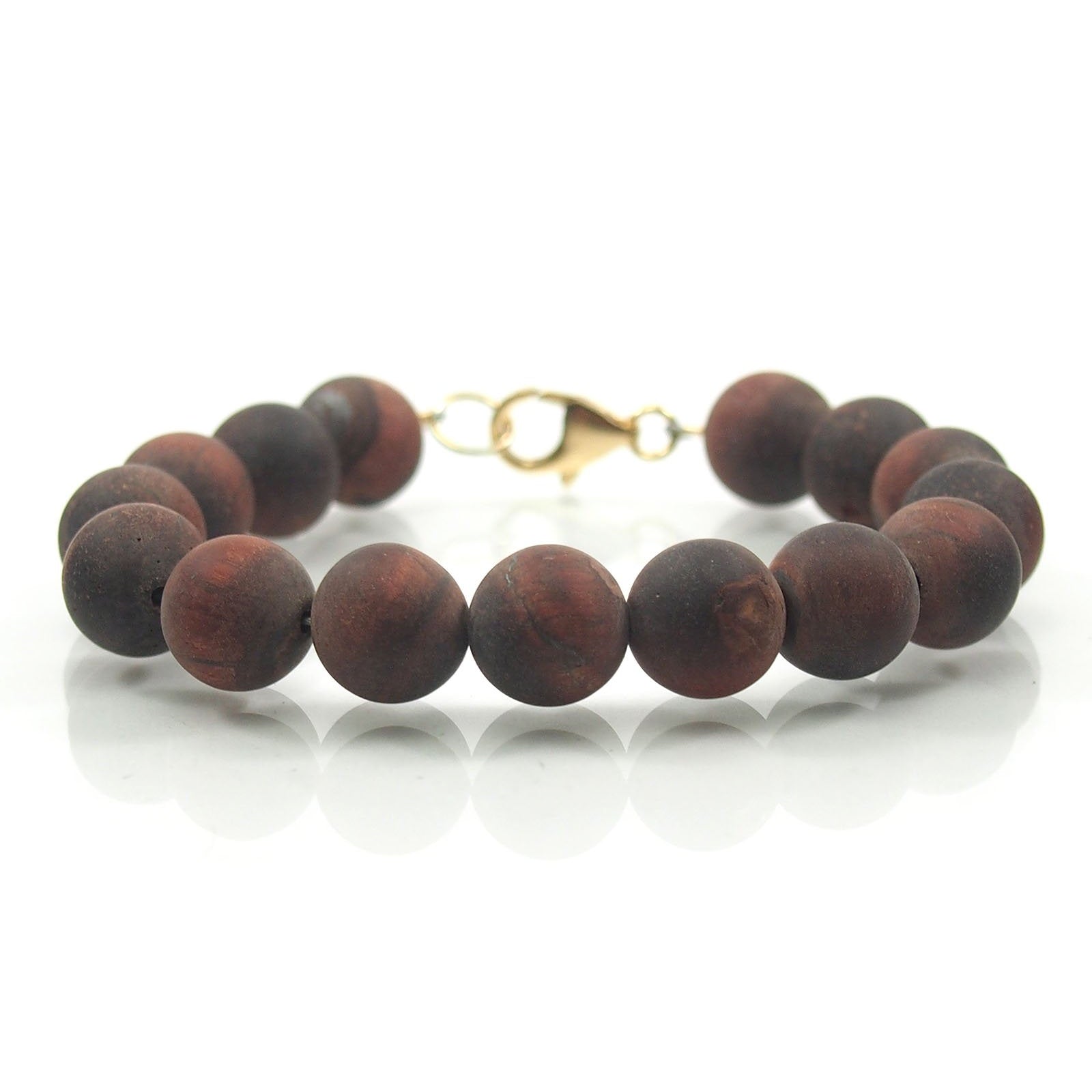 Matte Red Tiger's Eye 10mm Smooth Round Bracelet with Gold Filled Trigger Clasp