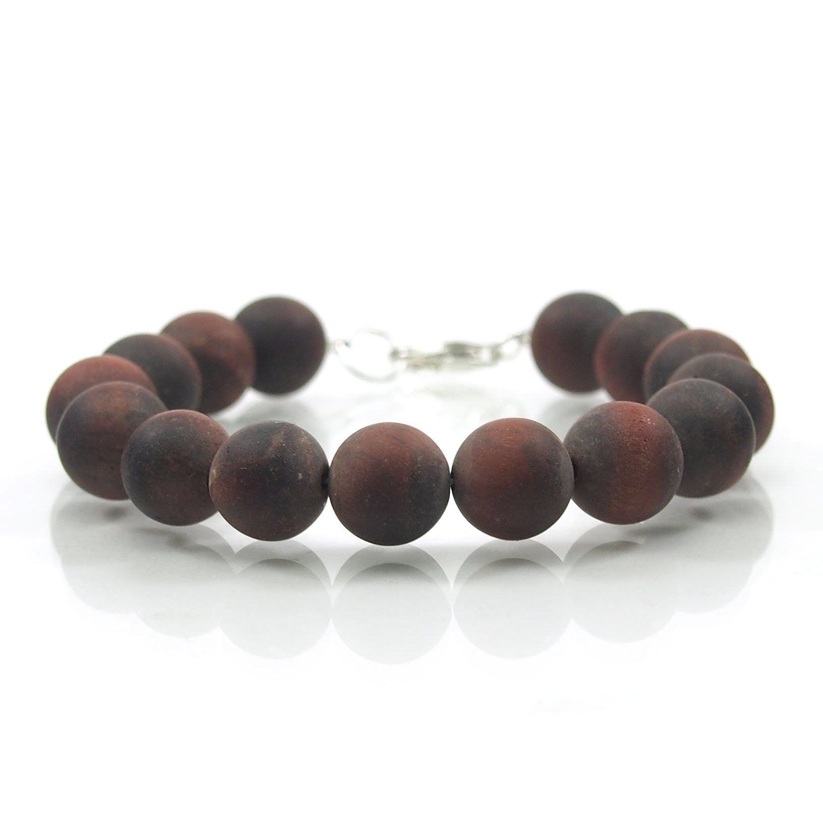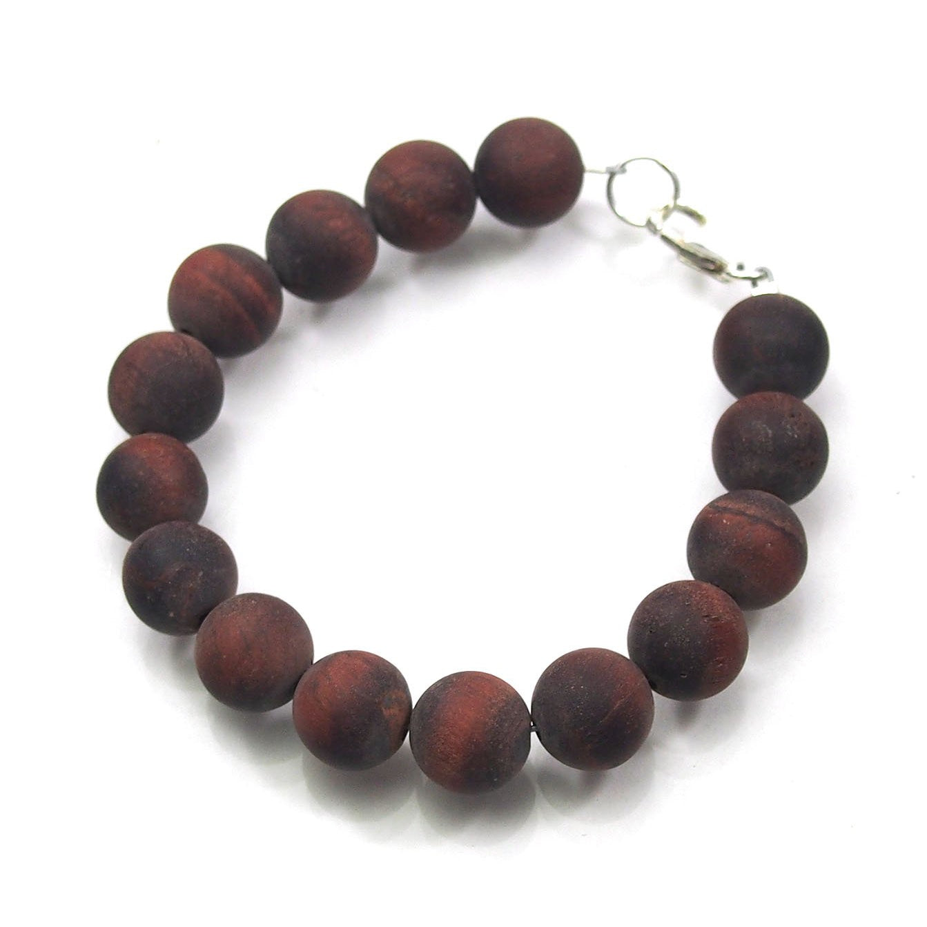 Matte Red Tiger's Eye 10mm Smooth Round Bracelet with Sterling Silver Trigger Clasp
