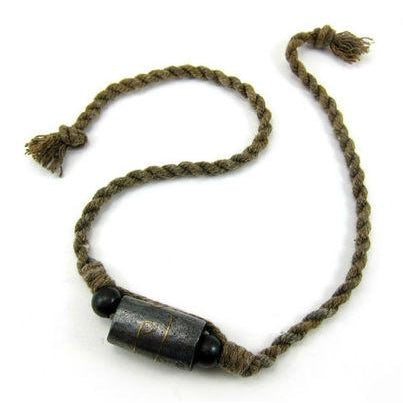 Prayer Bead "Takrut" in Iron with Inlaid Brass Inscription